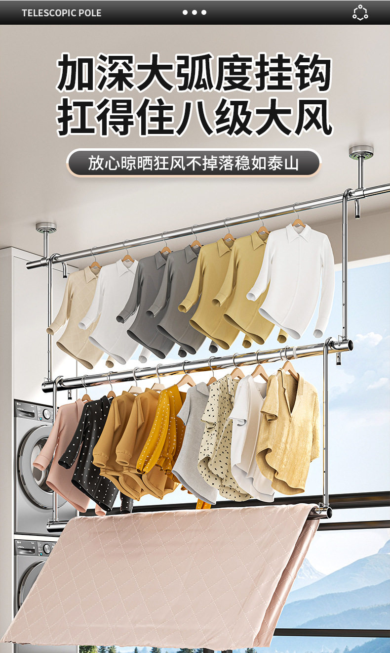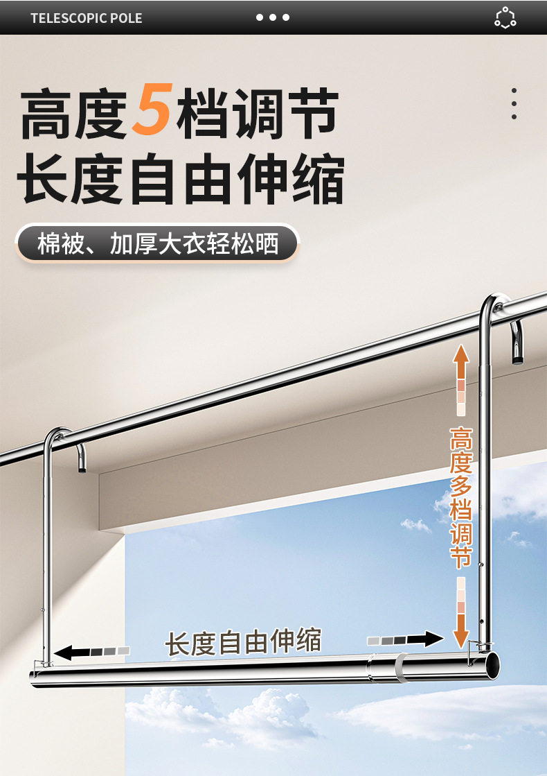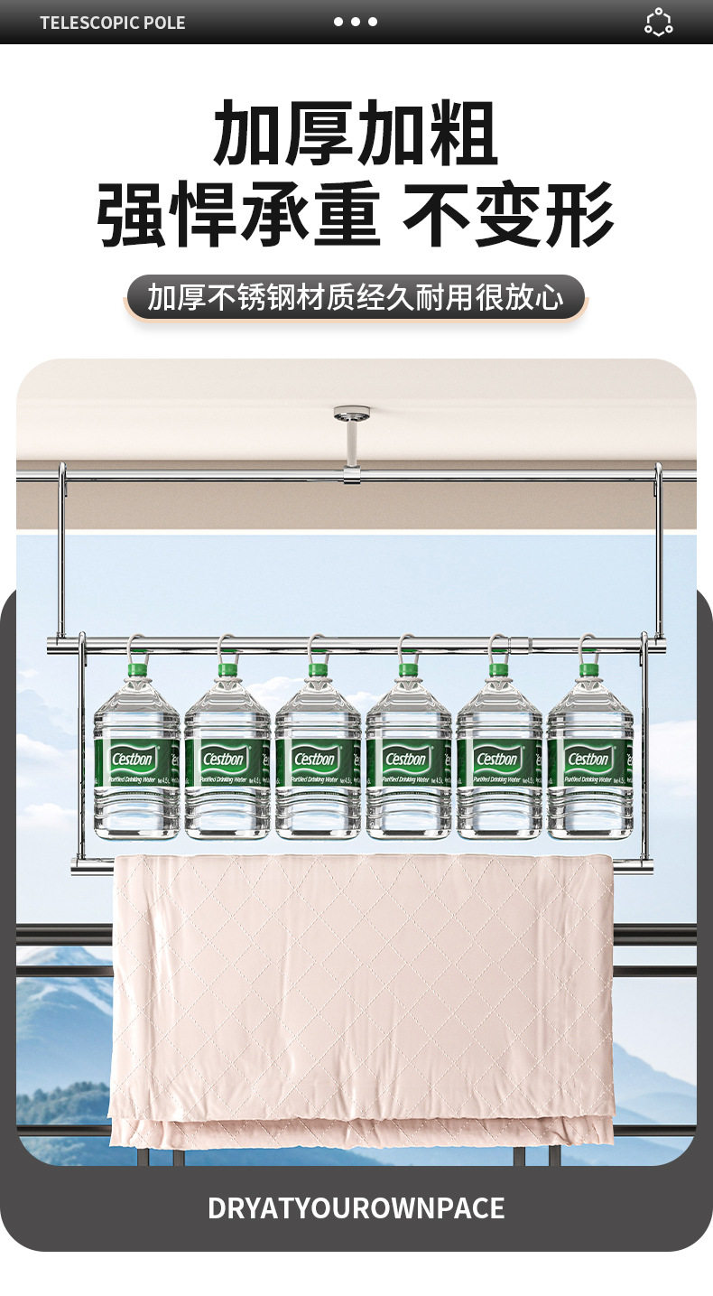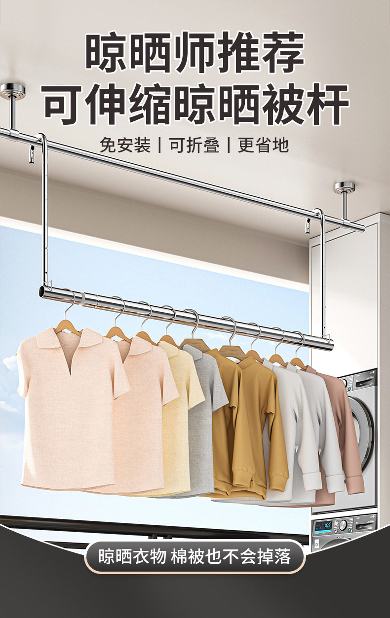 Retractable Clothes Drying Rack for Home Balcony, Adjustable Height Clothes Hanger, Stainless Steel, No-Drill Quilt Drying Tool