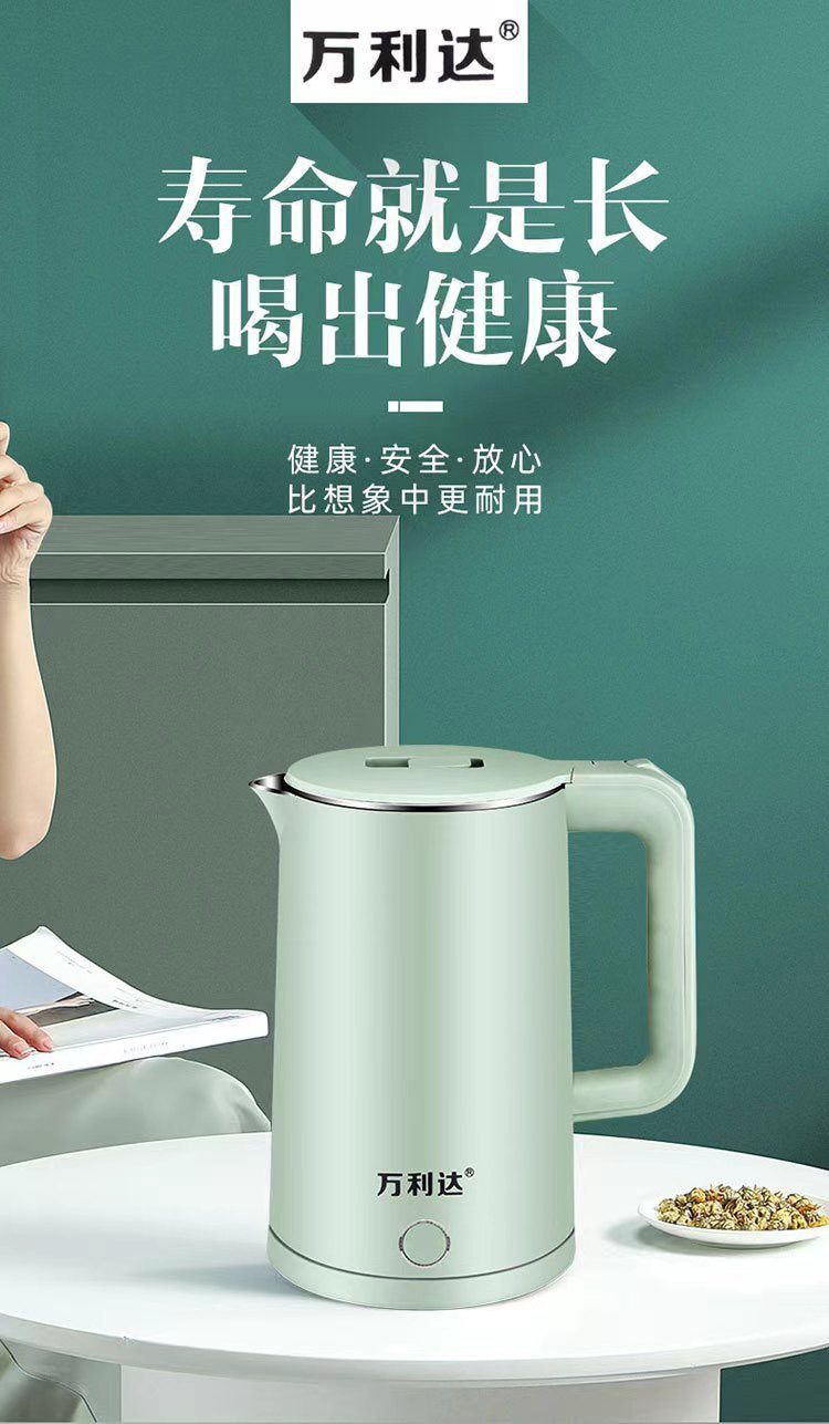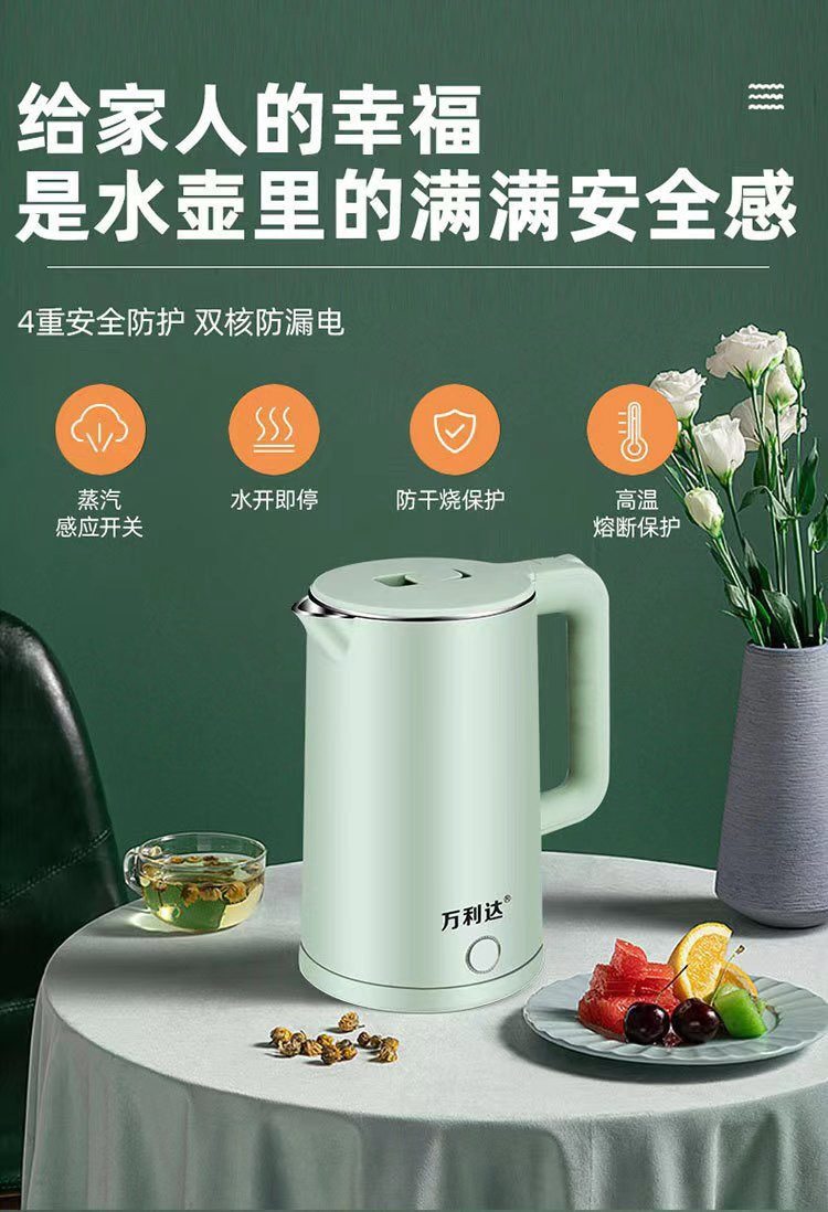 Wanlida Water Kettle Food Grade Stainless Steel Electric Water Kettle Hotel Integrated Double-Layer Water Kettle Automatic Power Off Gift