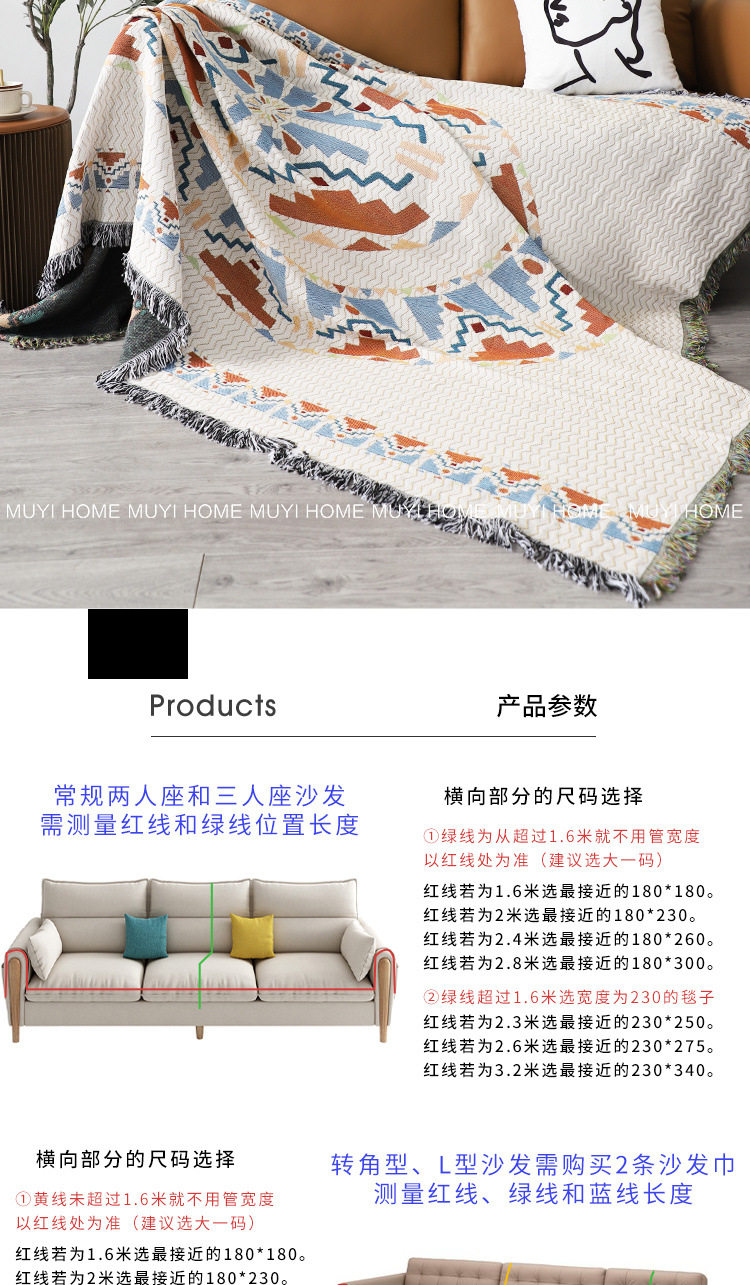 Bohemian Blanket Cover Sofa Towel Cotton and Linen Fabric Sofa Cover Sofa Protective Cover Dust Blanket Cover Towel Cover