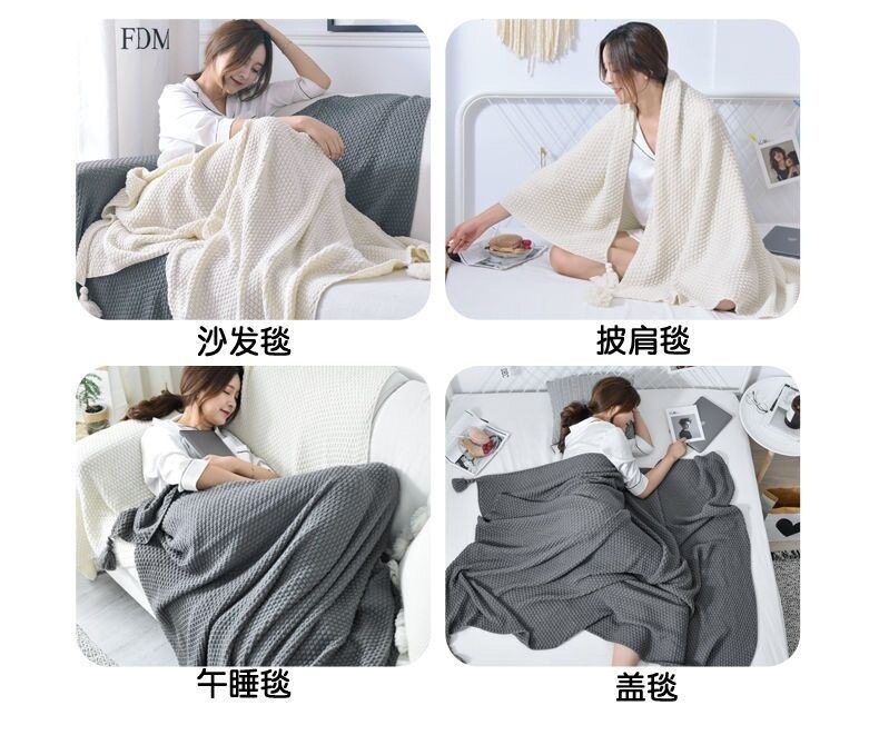 Ins Scandinavian Style Sofa Blanket Office Nap Blanket Tassel Knitted Ball Wool Casual Air Conditioning Small Blanket