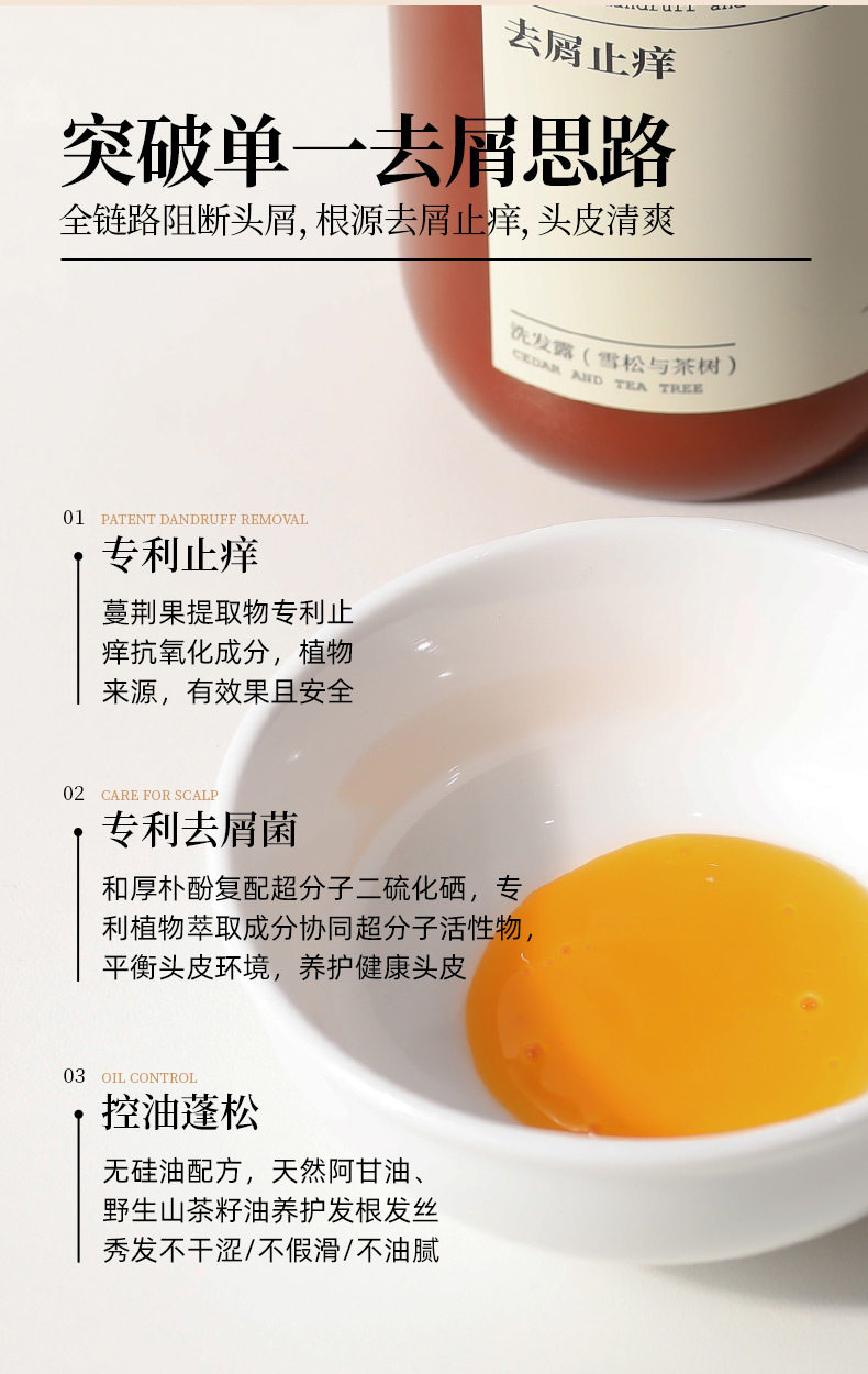 | Product name | Zhiyufang anti-dandruff and anti-itch essential oil shampoo (cedar and tea tree) |