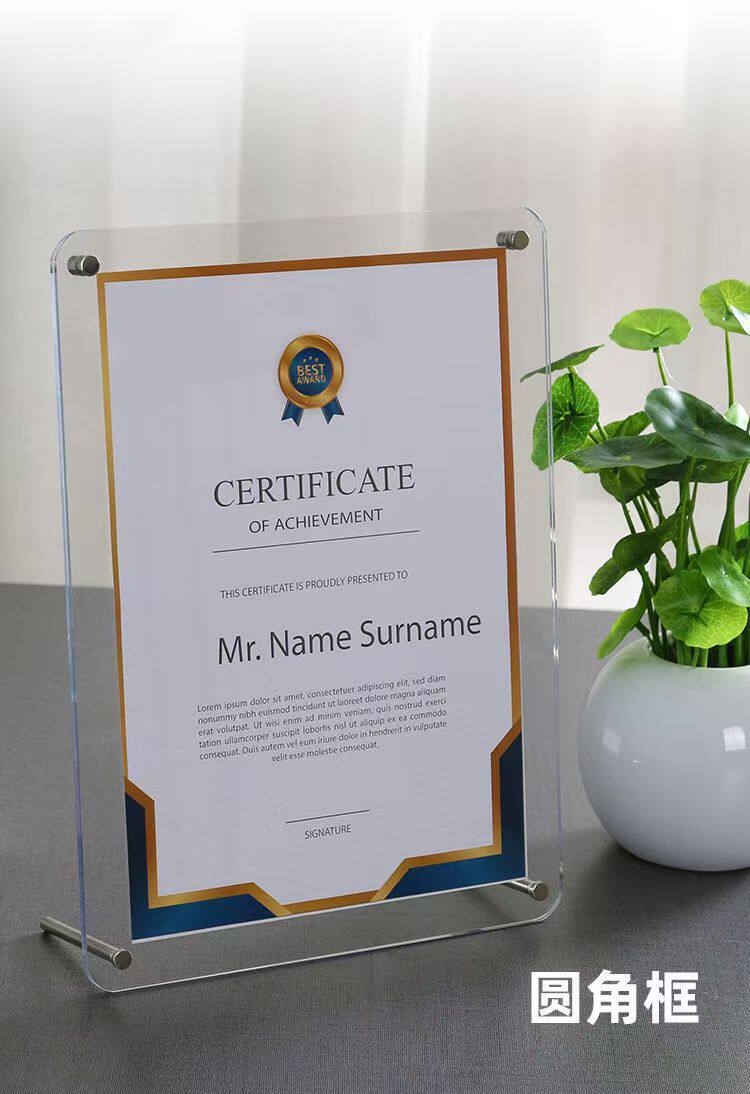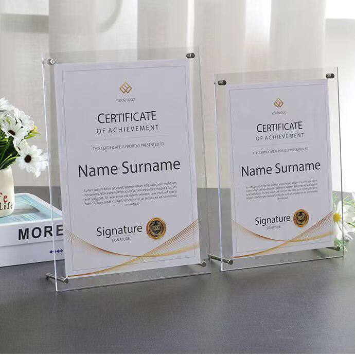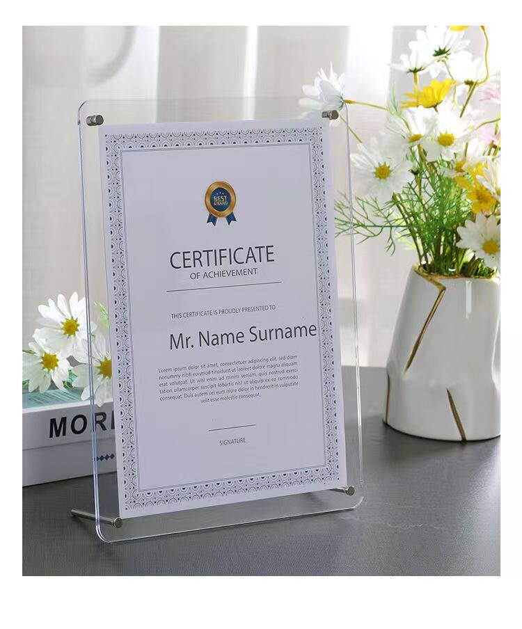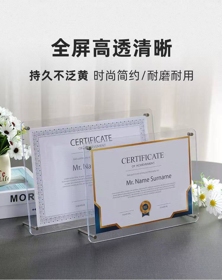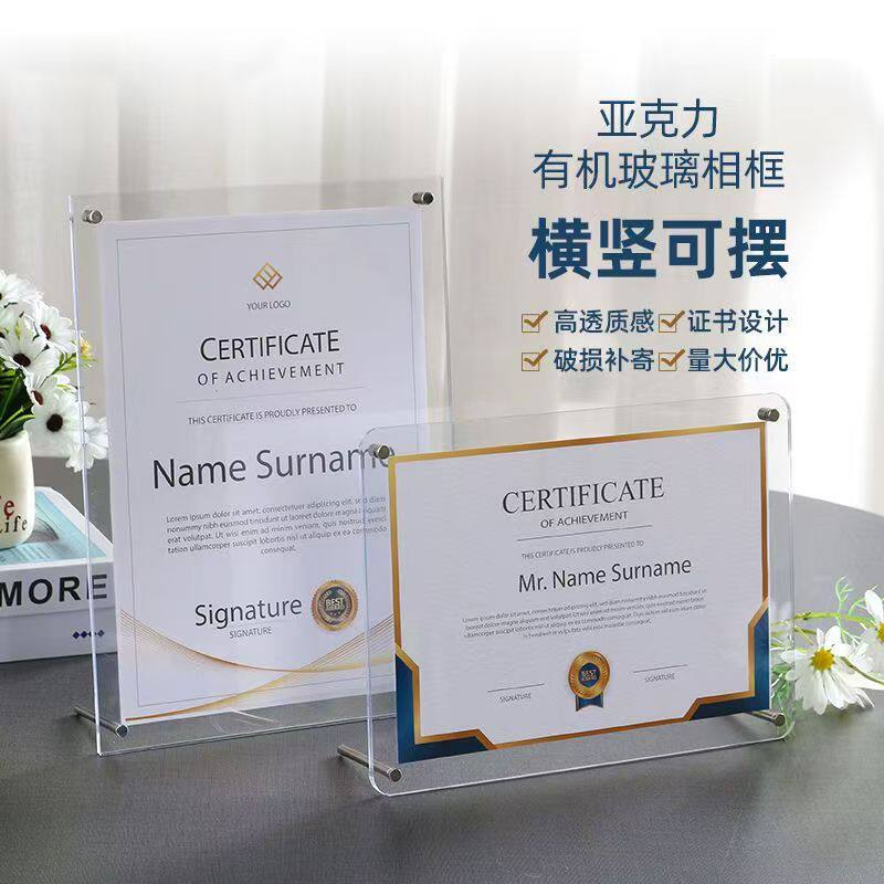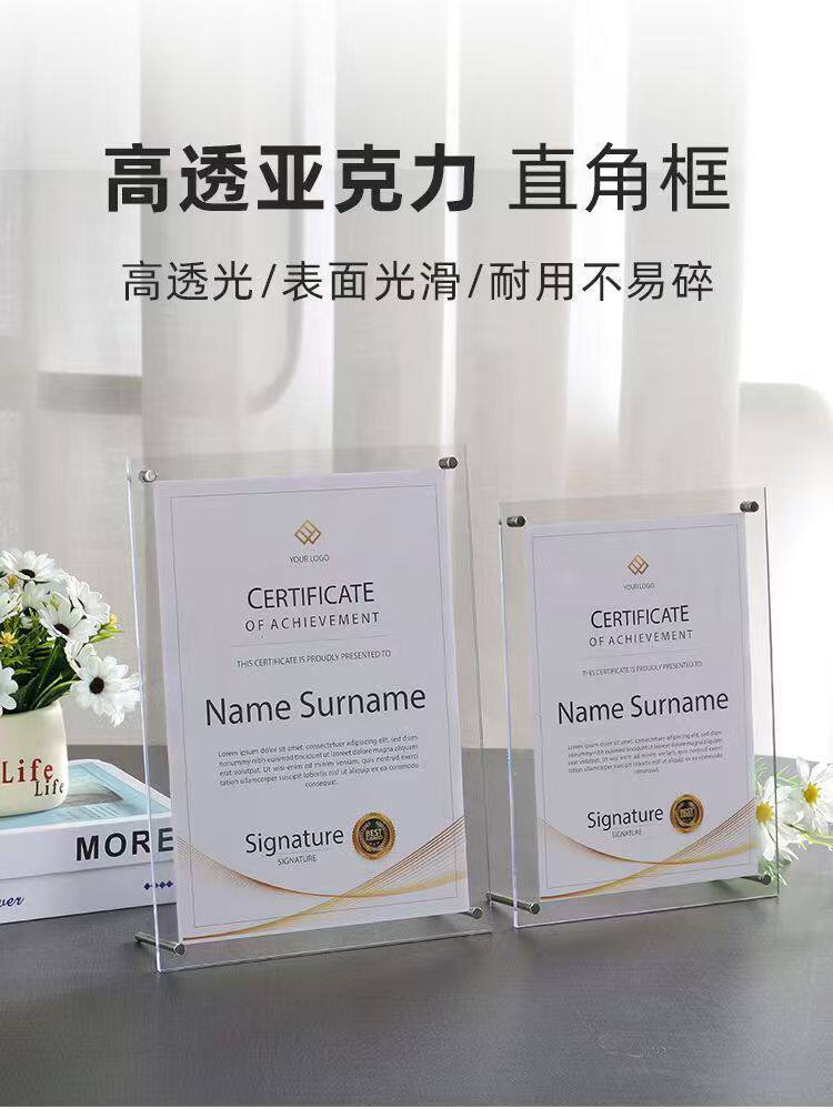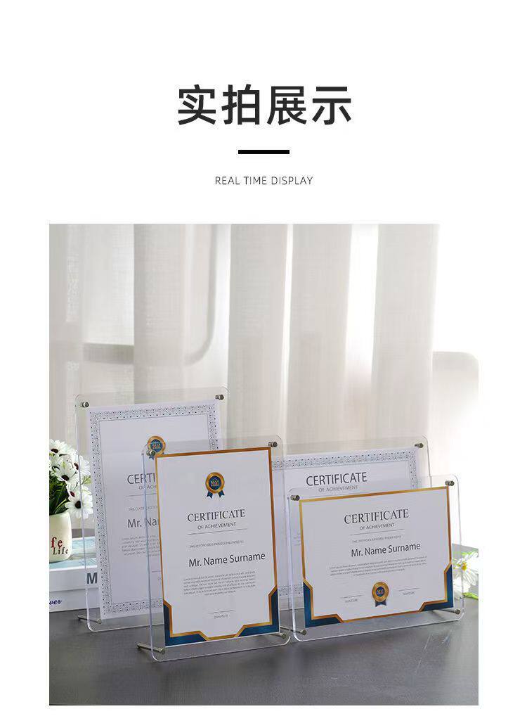 Acrylic Photo Frame Table A4 Certificate of Honor Certificate Frame Business License Frame 6inch 7inch Acrylic Authorization Plate