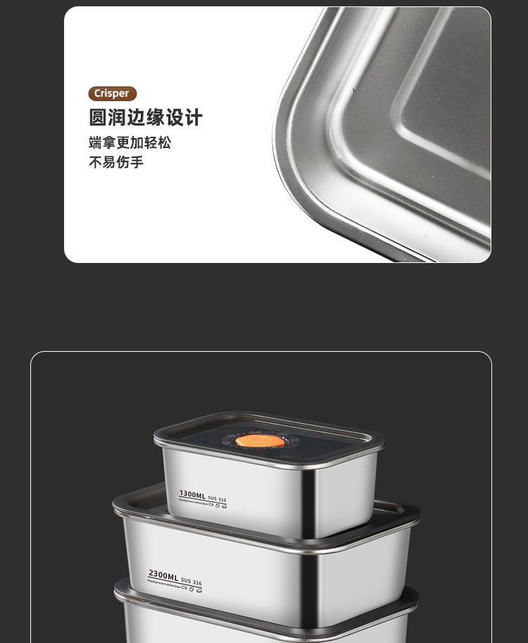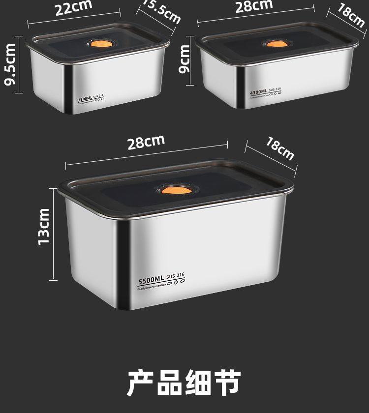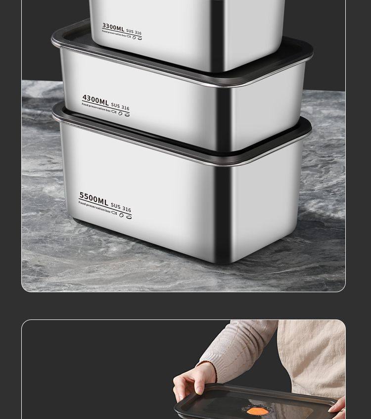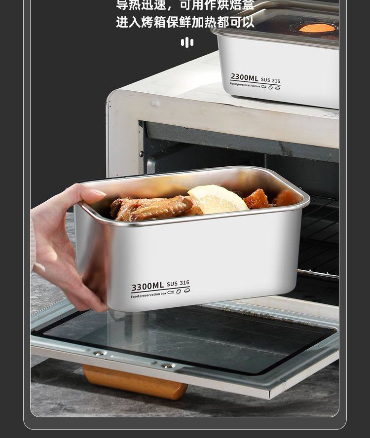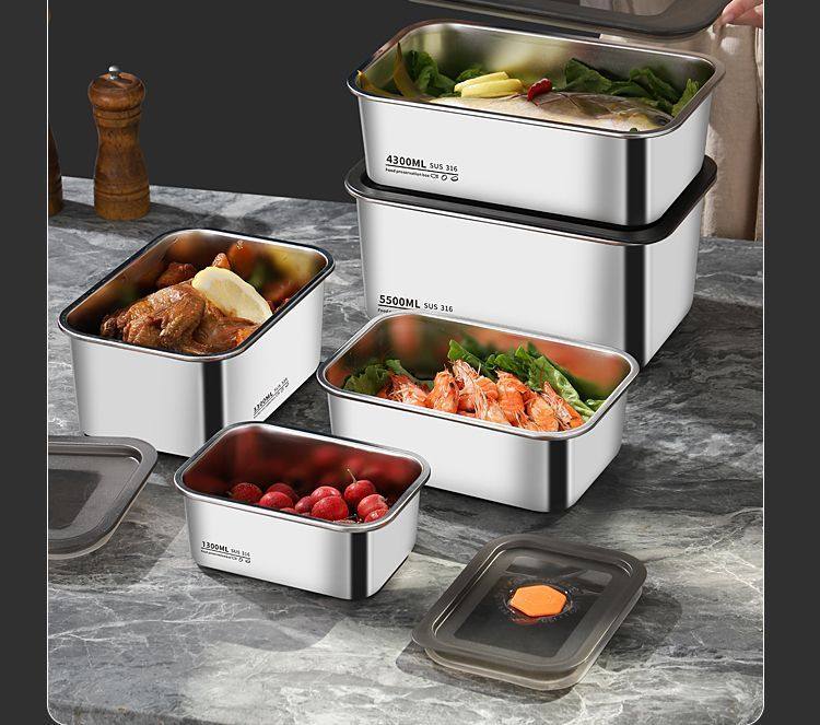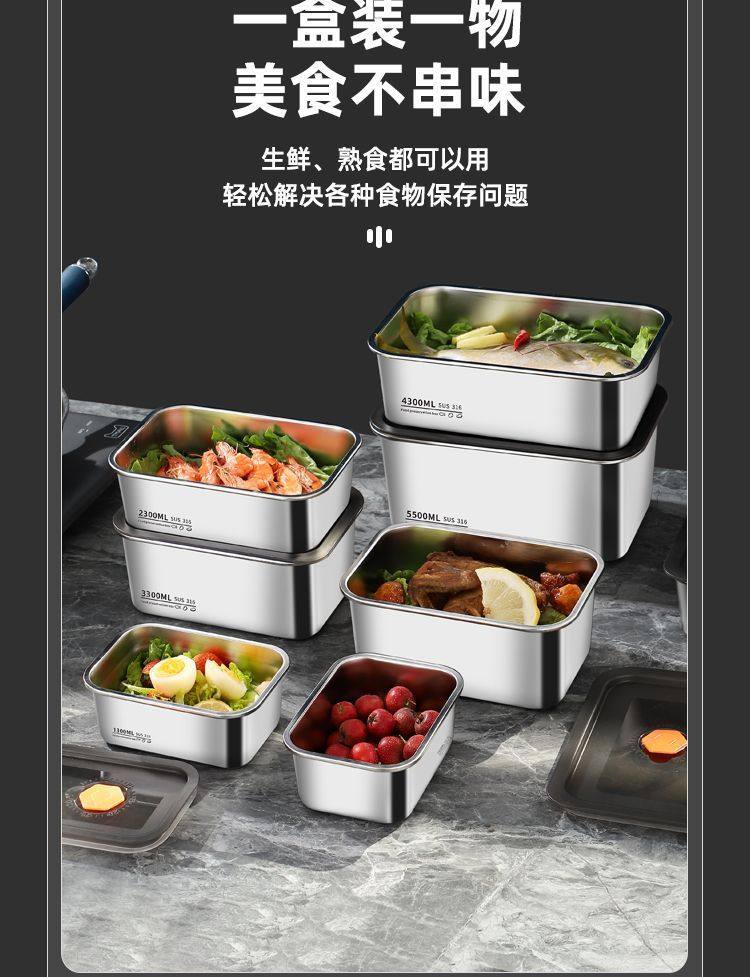 Oaqwge Large Capacity 316 Stainless Steel Crisper with Lid Lunch Box Refrigerator Storage Box Oven Commercial Stall