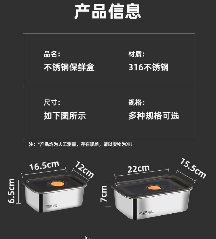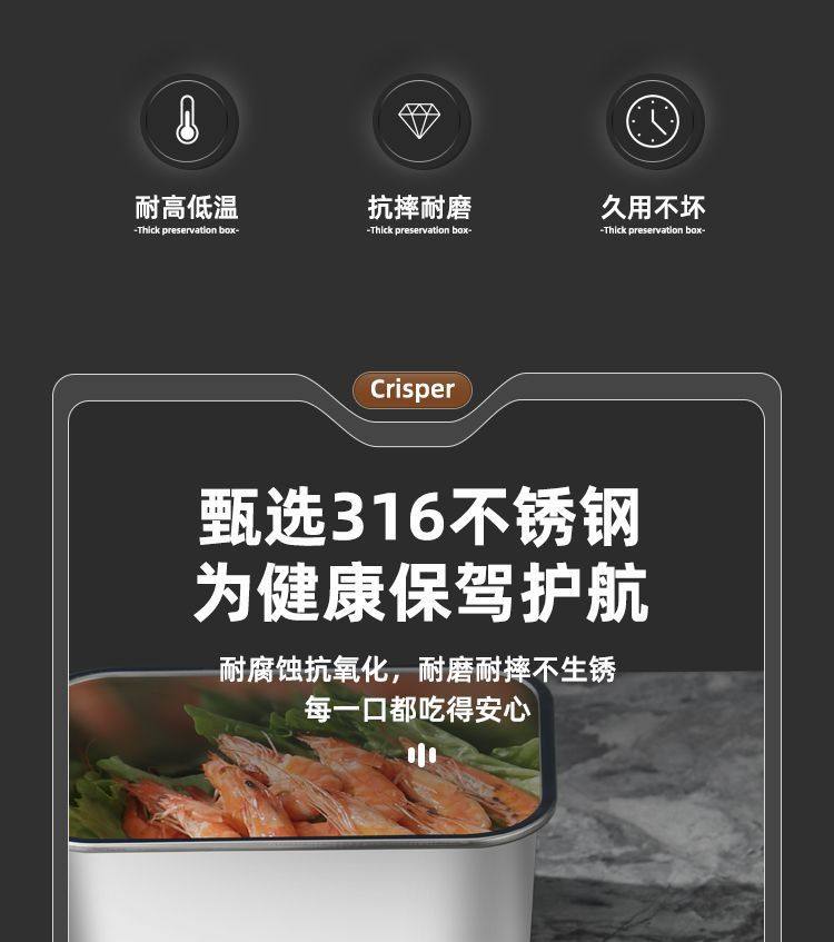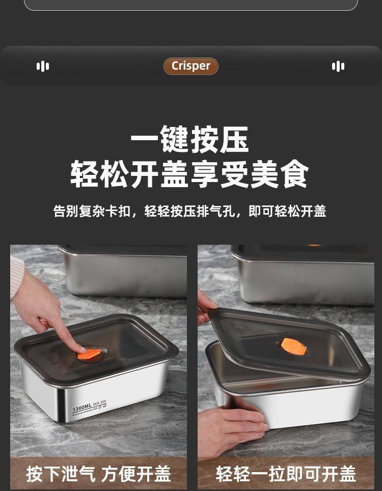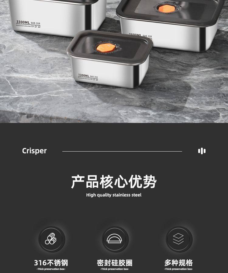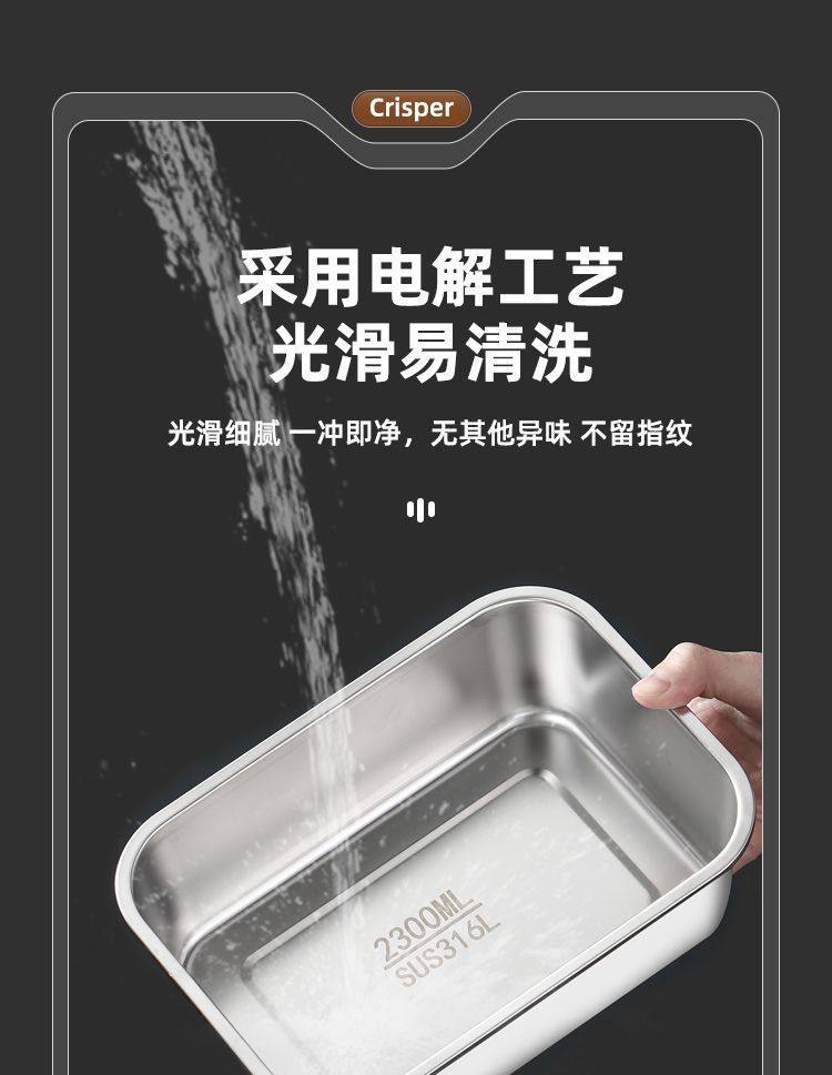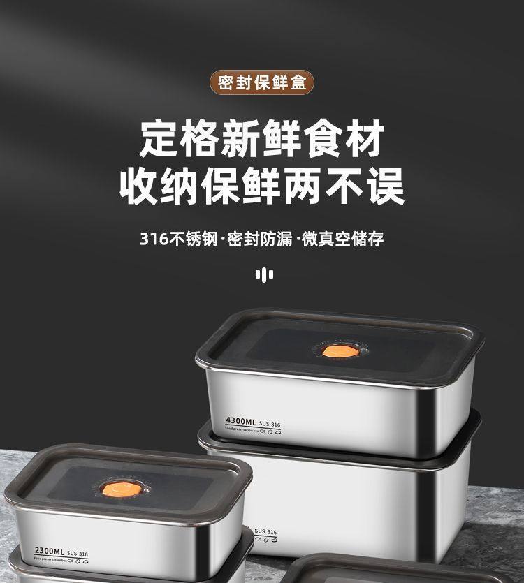 Oaqwge Large Capacity 316 Stainless Steel Crisper with Lid Lunch Box Refrigerator Storage Box Oven Commercial Stall