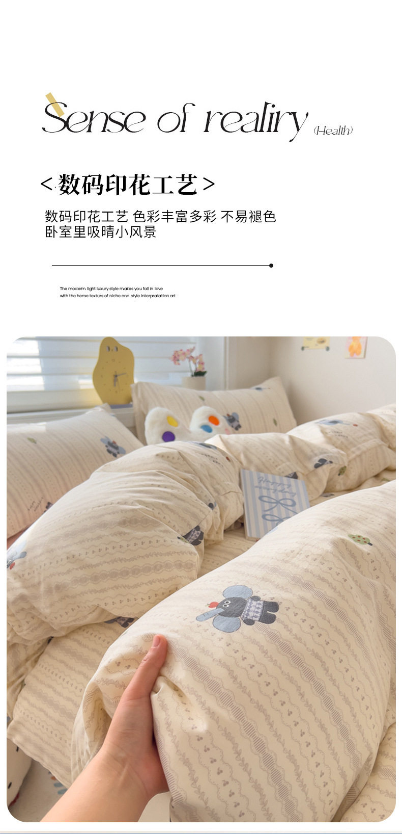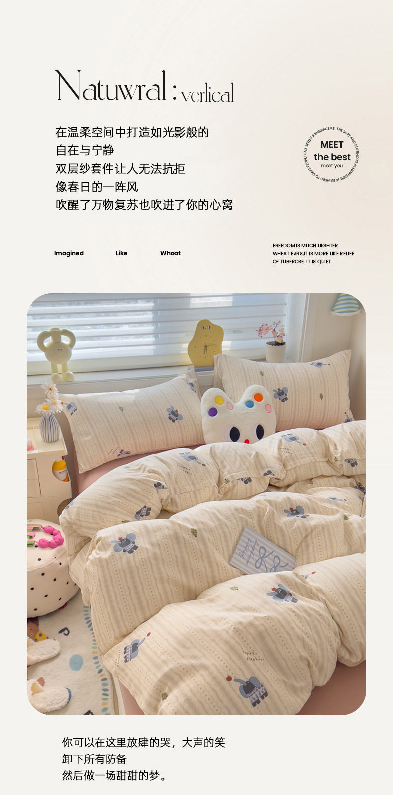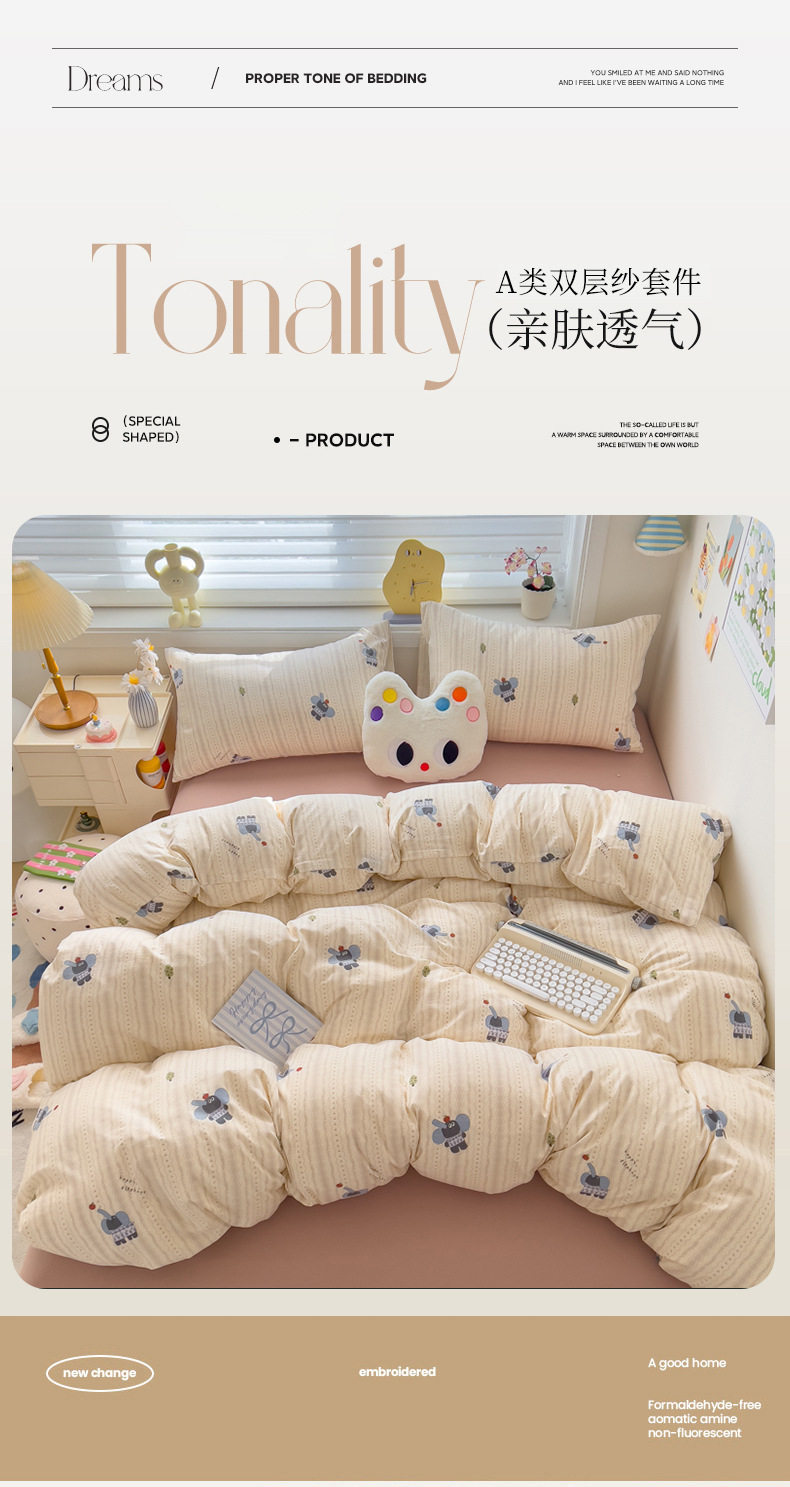Four-Piece Set of Class a Maternal and Infant Grade Double-Layer Yarn Four-Piece Set of Washed Cotton Single Quilt Cover Bed Sheetss and Fitted Bed Sheetss Dormitory Three-Piece Set Batch
