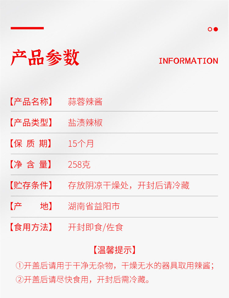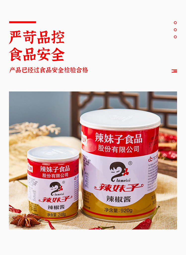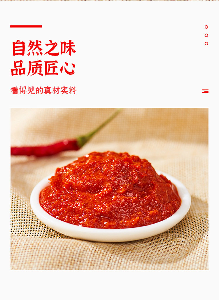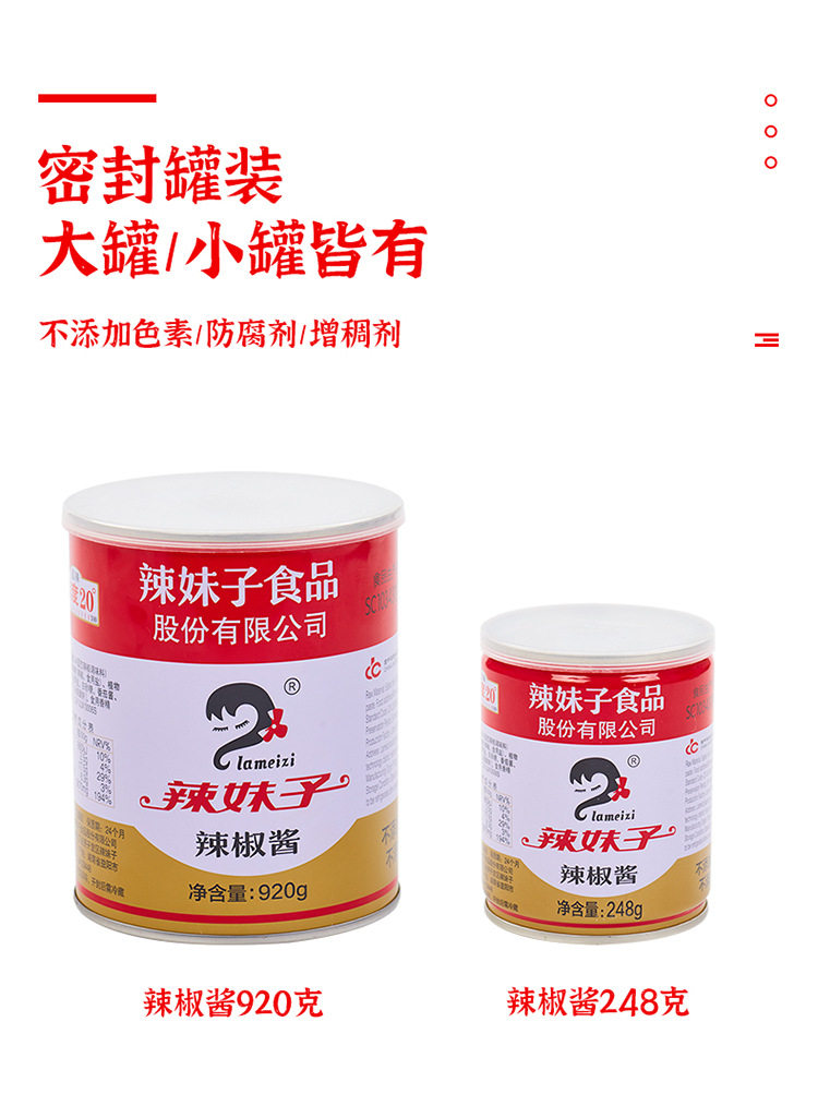| Packaging specifications | Chili sauce 248g*1 can,Chili sauce 248g*2 cans,Chili sauce 248g*3 cans,Chili sauce 248g*4 cans,Chili sauce 920g*1 can,Chili sauce 920g*2 cans,[large] chili sauce 1.5kg*1 can,[large] chili sauce 1.5kg*2 cans |