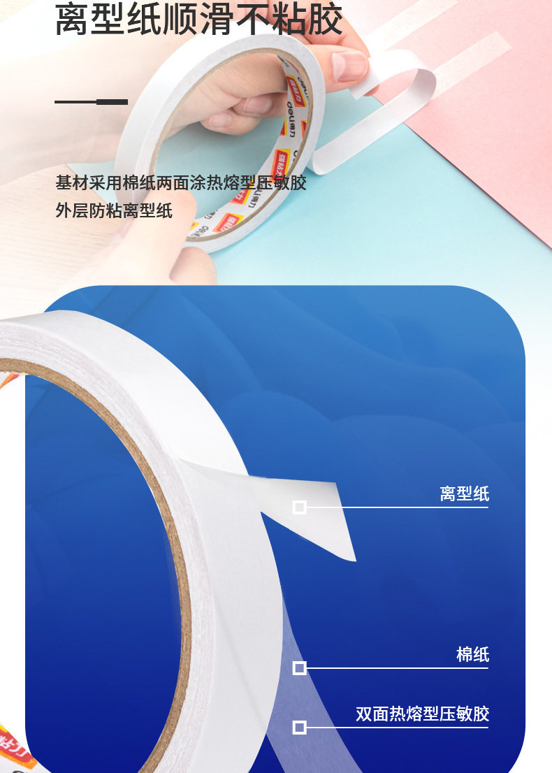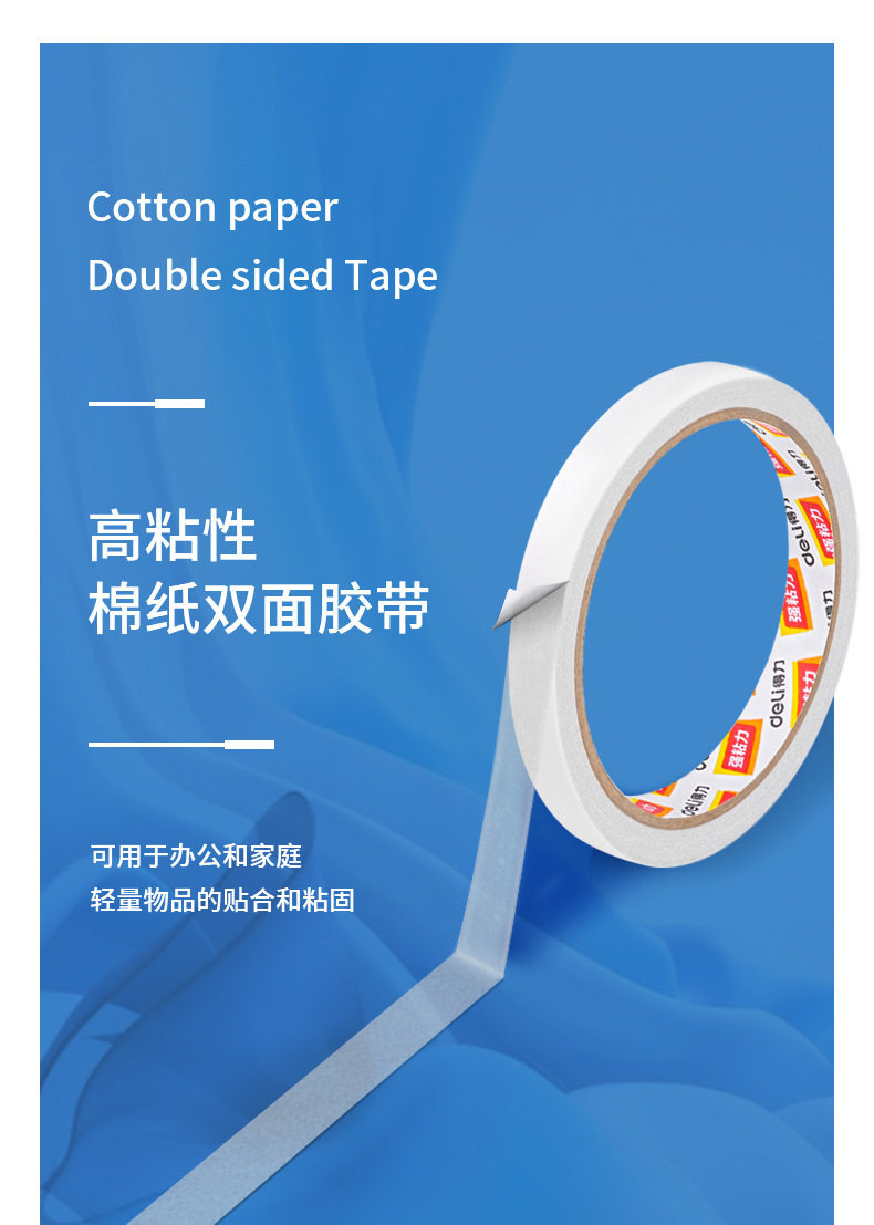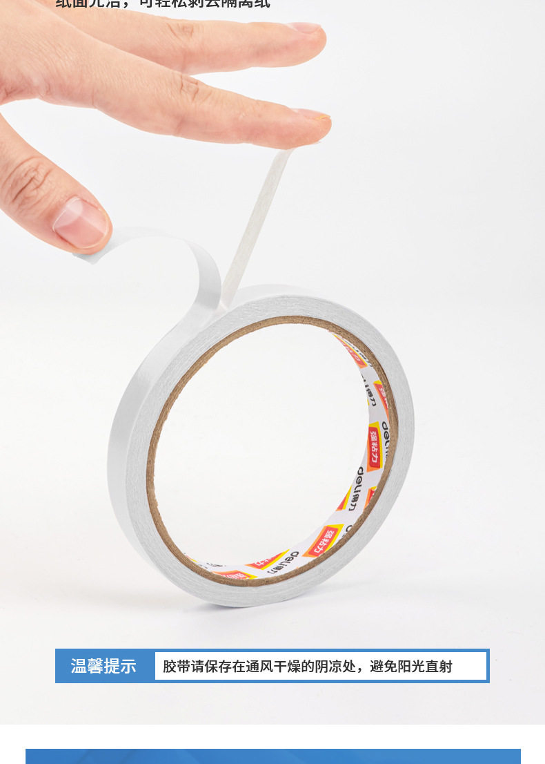 Deli Double-Sided Tape 9/12/18/24mm High Viscosity Hot Melt Cotton Paper Glue for Students' Crafts
