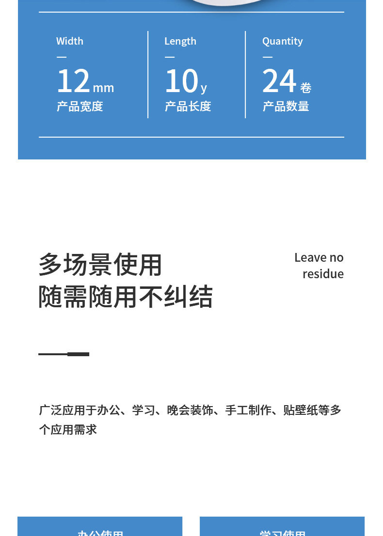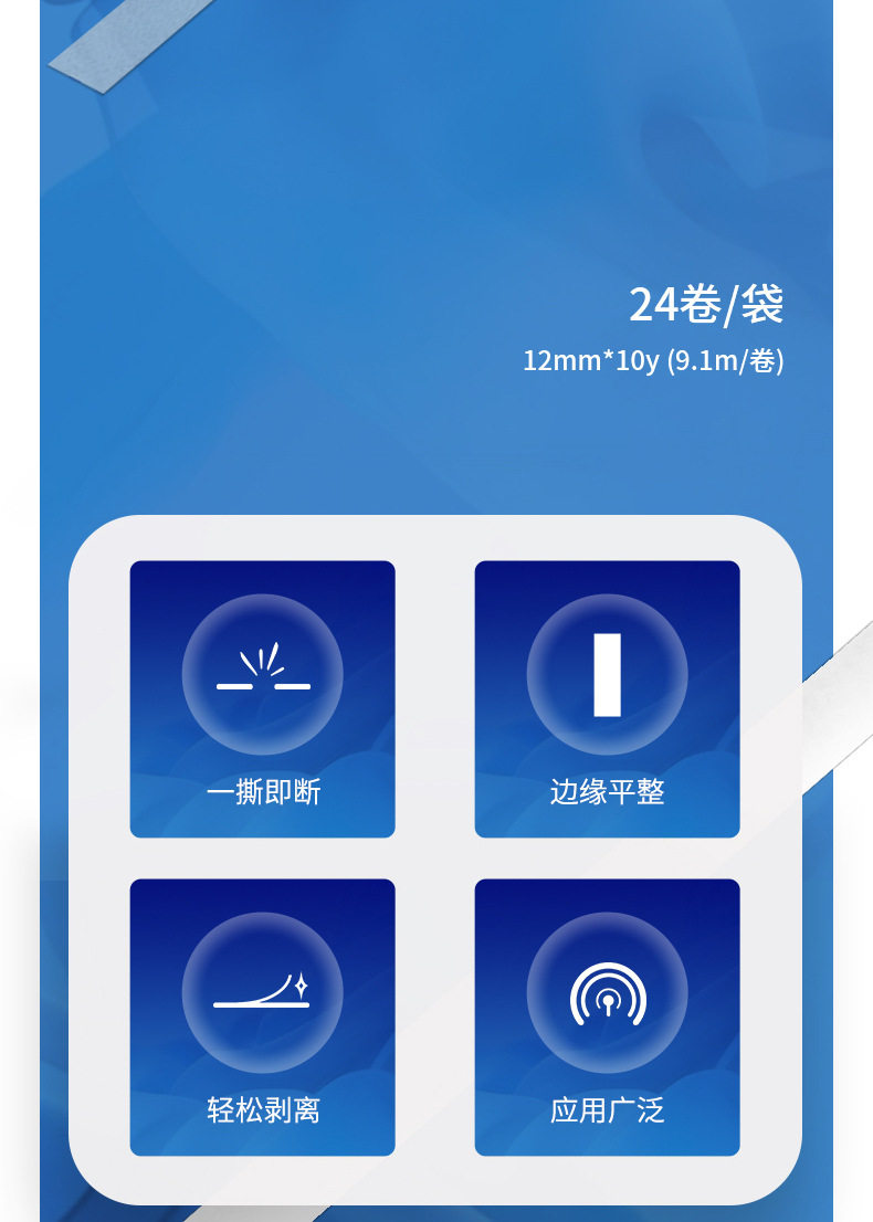| Color | 1520.2kg rolls【9mm*10y】,30405 single roll [12mm*10y],30406 single roll [18mm*10y],30407 single roll [24mm*10y] |