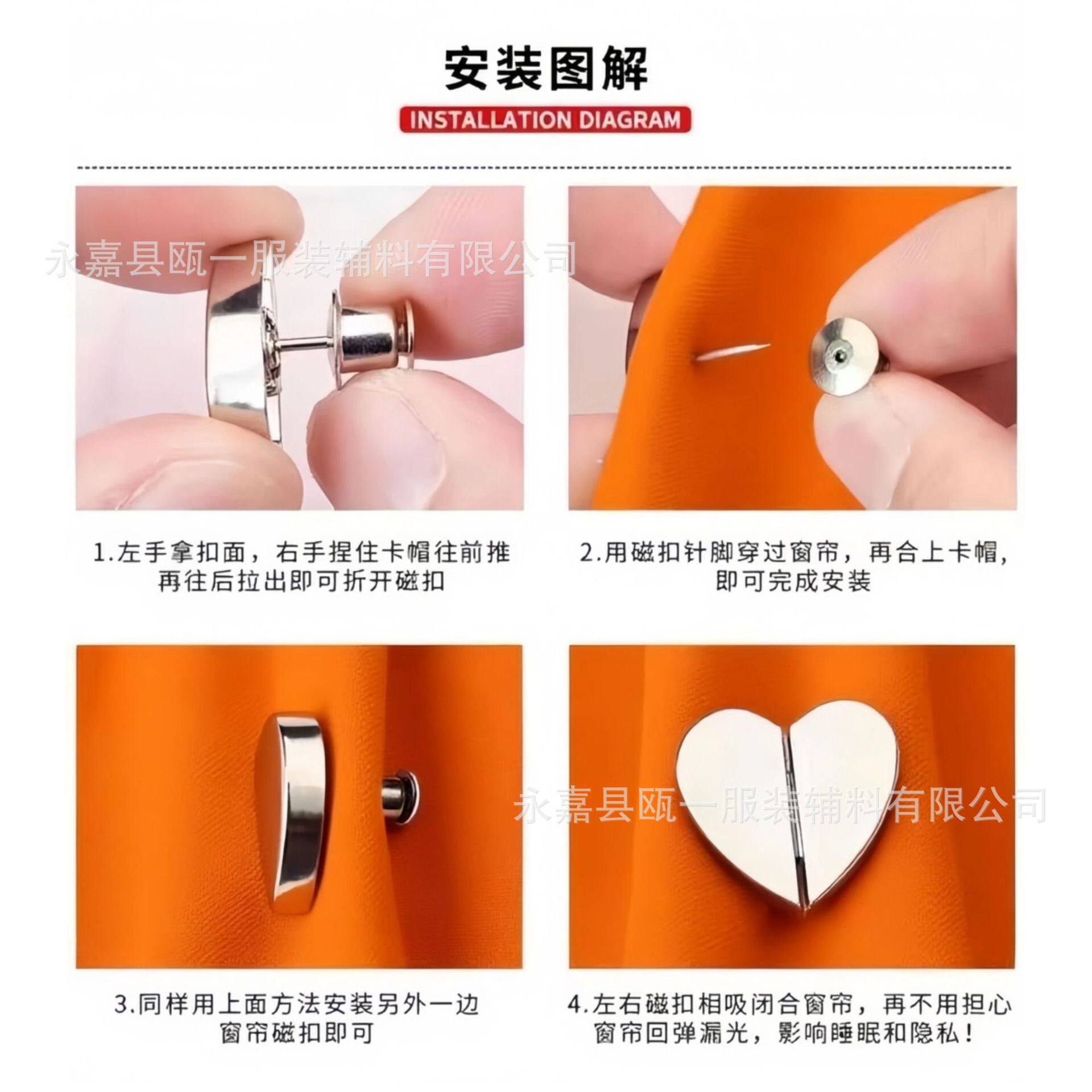 Curtain Magnetic Buckle, Nail-Free Curtain Door Curtain Closing Buckle, Curtain Anti-Light Leakage Artifact, Heart-Shaped Strong Magnet