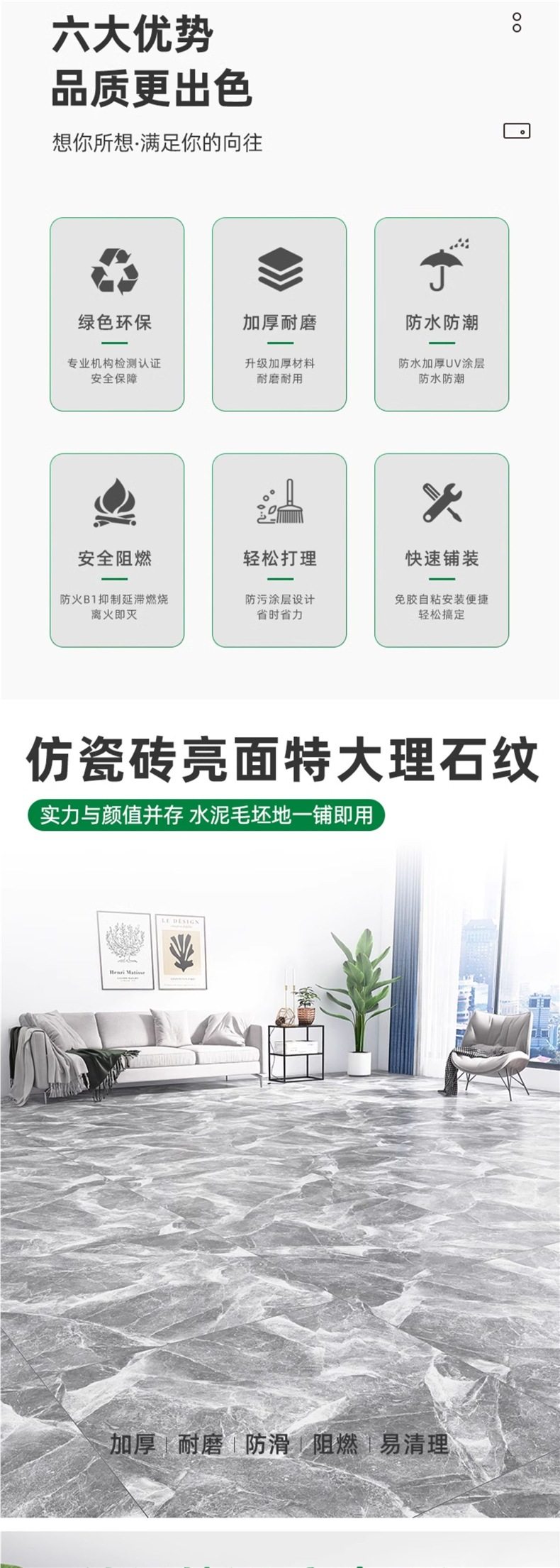 950mm Imitation Tile Floor Stickers Pvc Floor Stickers Self-Adhesive Floor Leather Cement Floor Direct Paving Stone Plastic Floor Glue