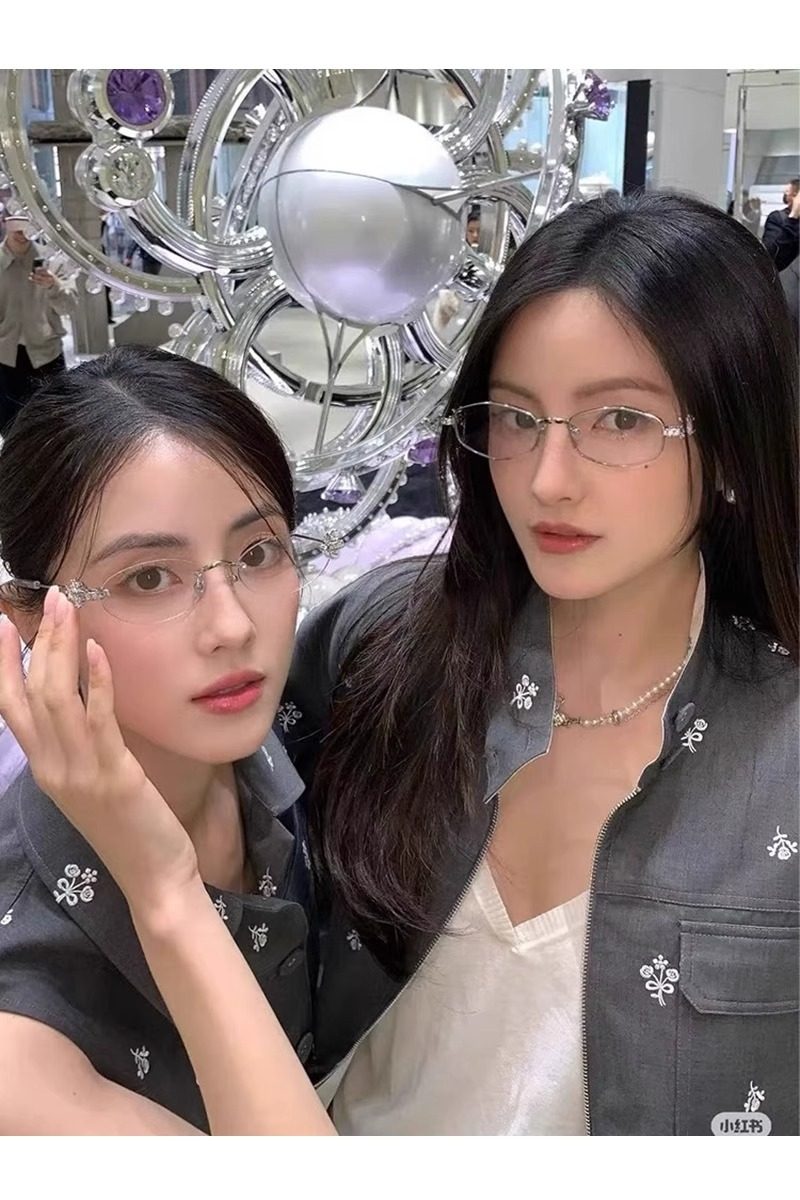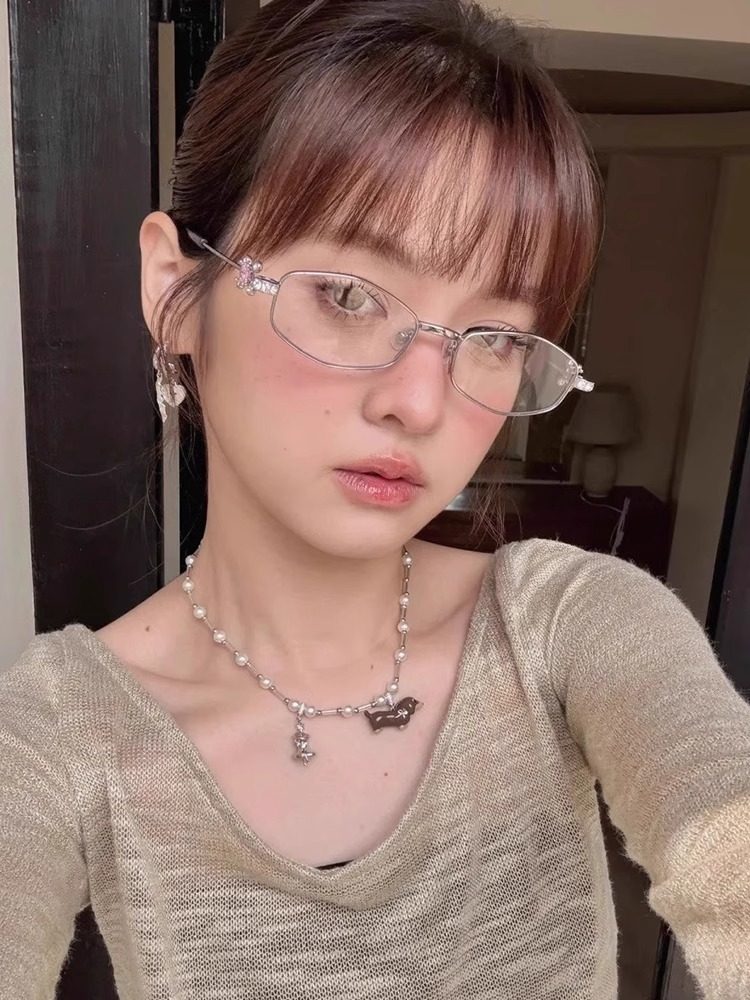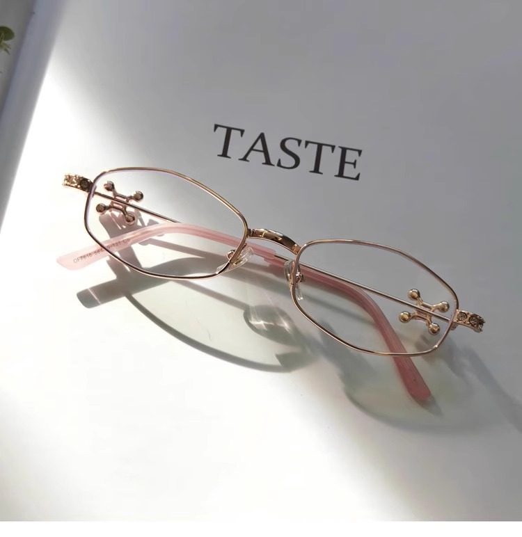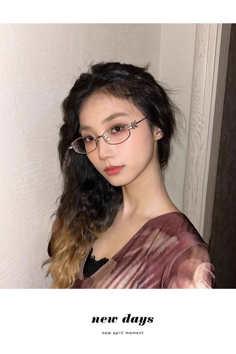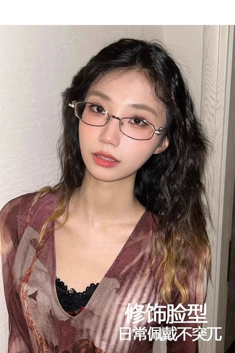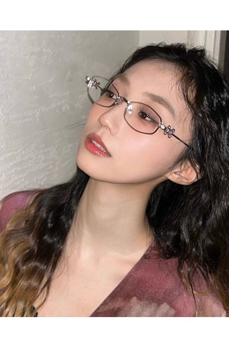 2025 New Gm Diamond-Encrusted Metal Glasses Frame for Women, High-End, Fashionable and Plain, Can Be Matched with Prescription Myopia Flat Glasses