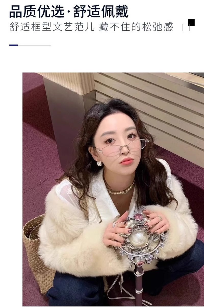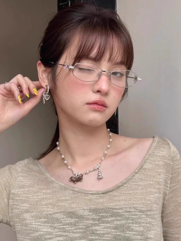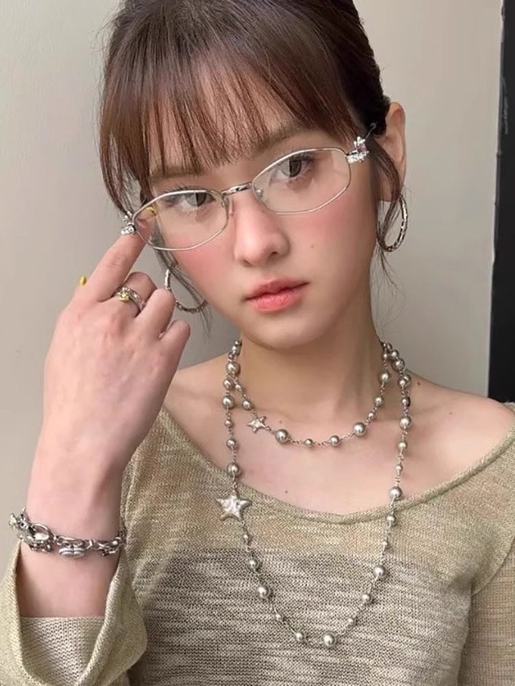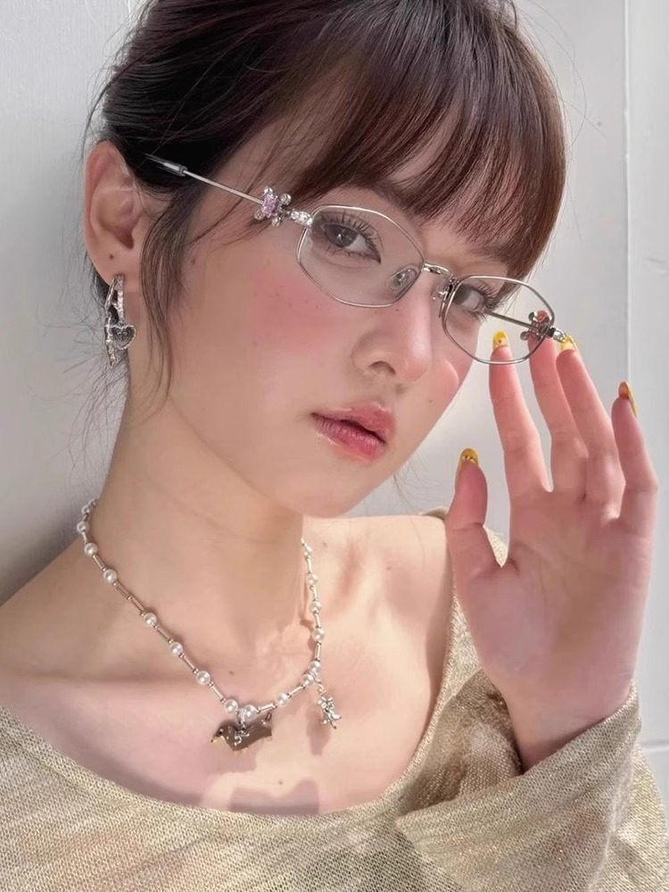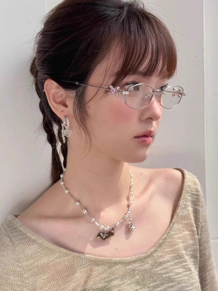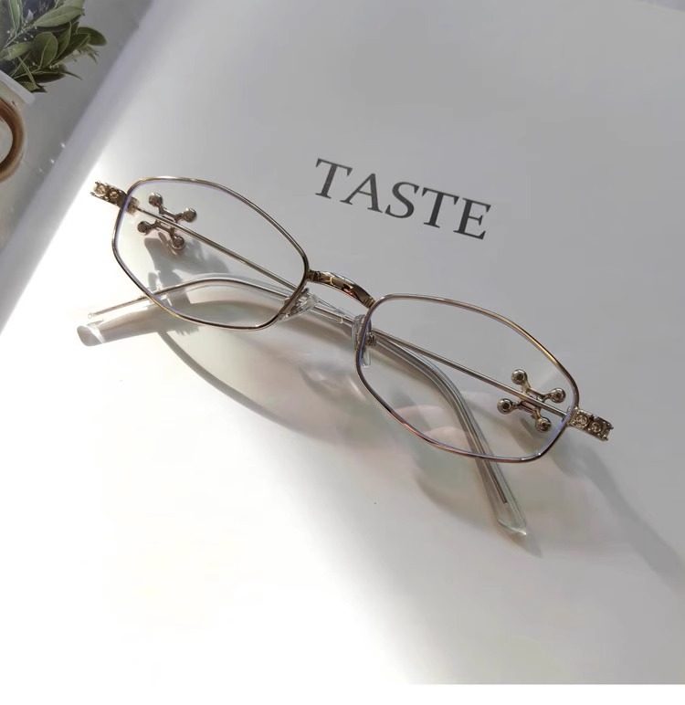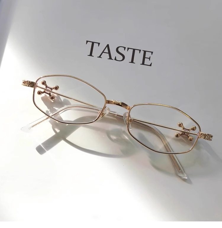 2025 New Gm Diamond-Encrusted Metal Glasses Frame for Women, High-End, Fashionable and Plain, Can Be Matched with Prescription Myopia Flat Glasses
