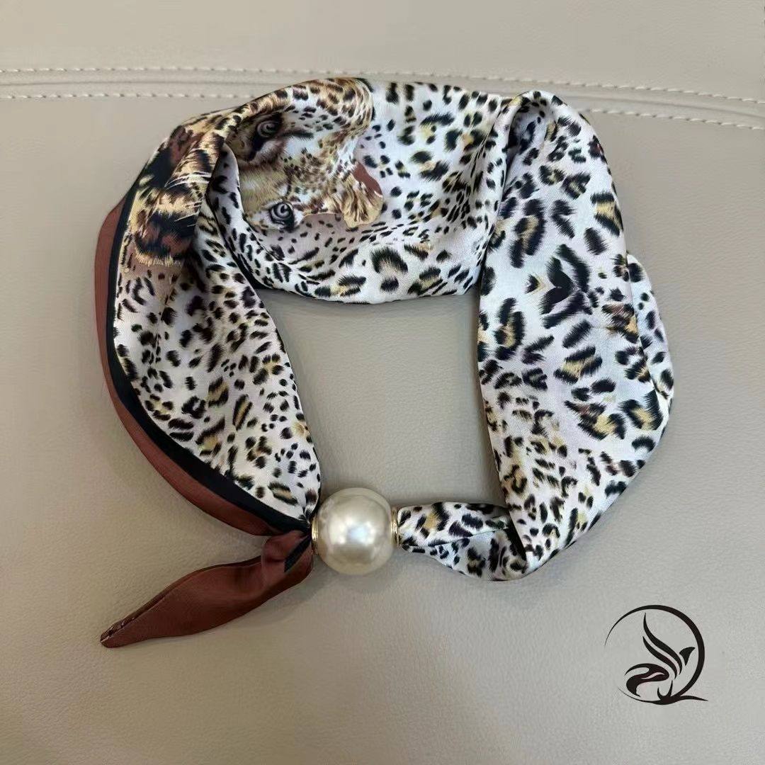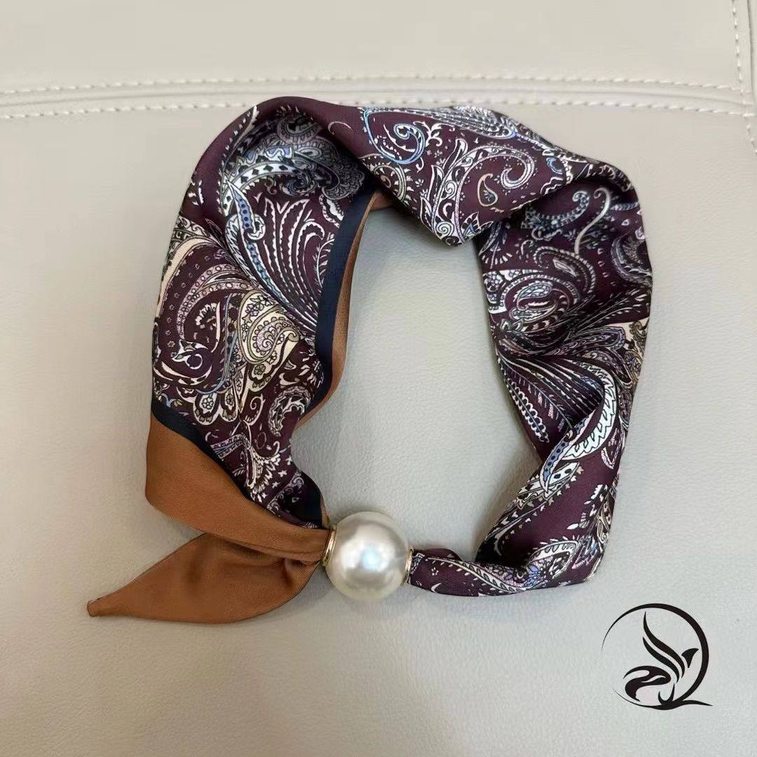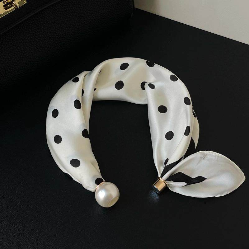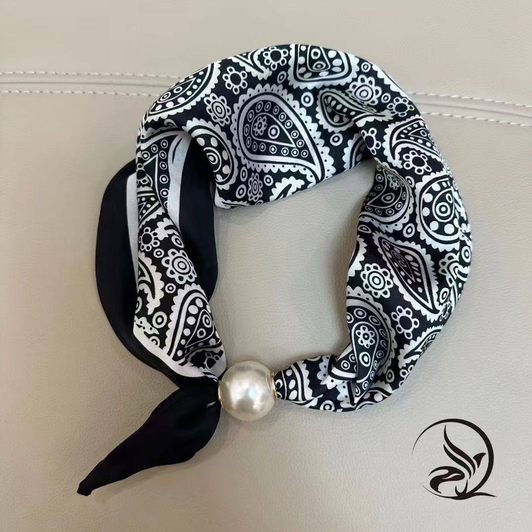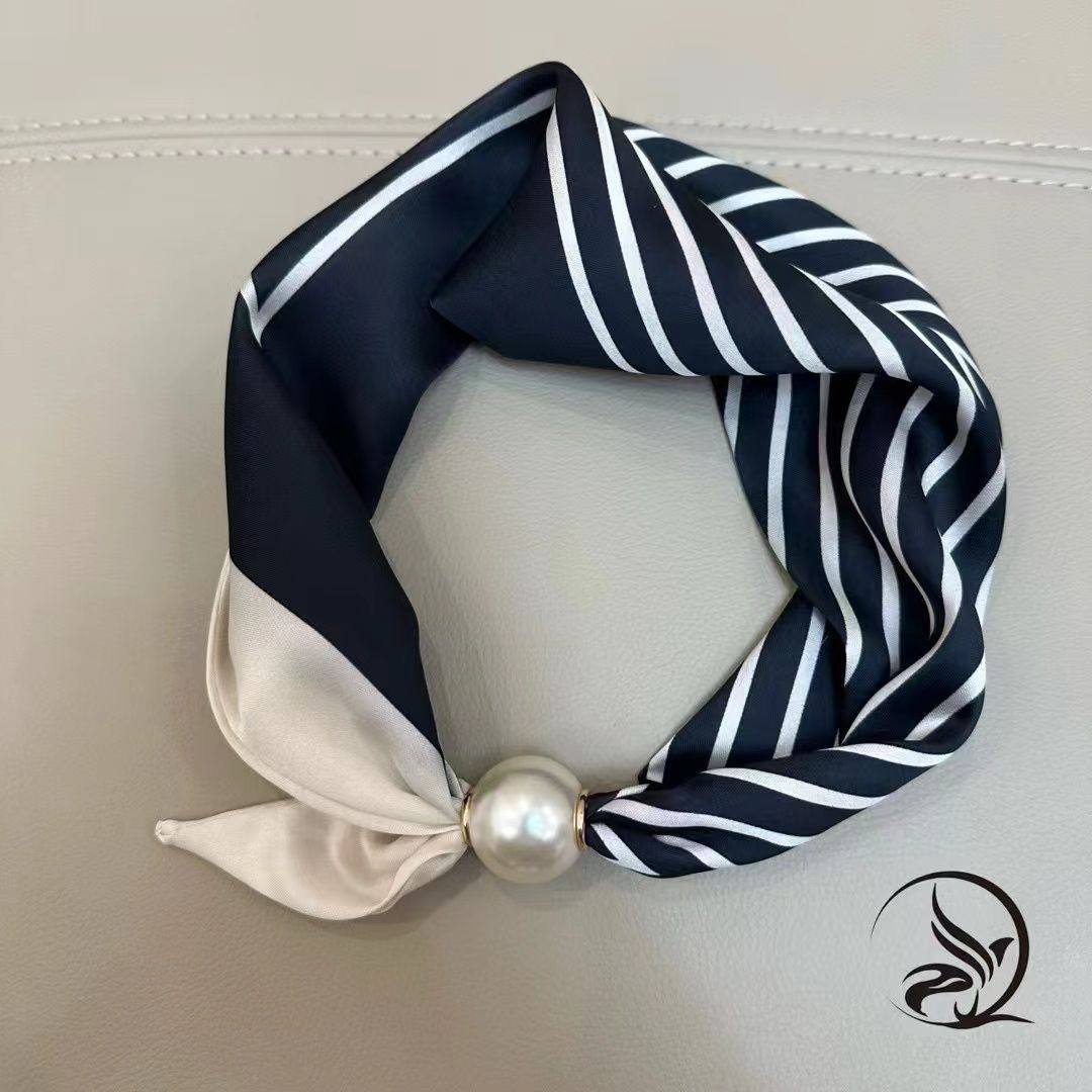New Magnetic Buckle Pearl Silk Scarf Necklace Women's Summer Thin Clavicle Chain French Retro Small Scarf Decorative Scarf