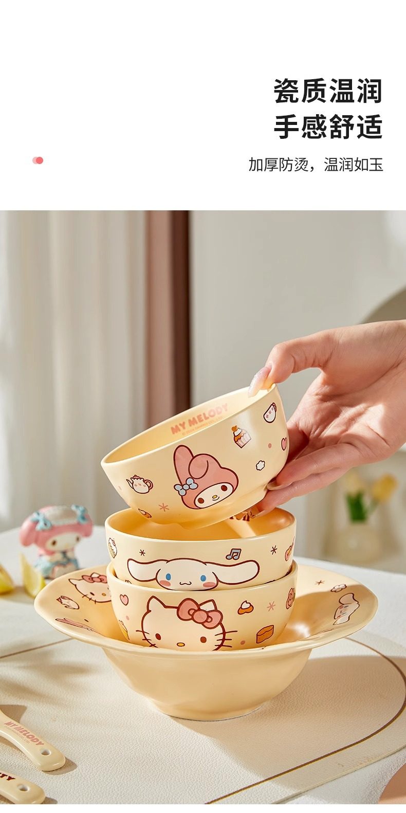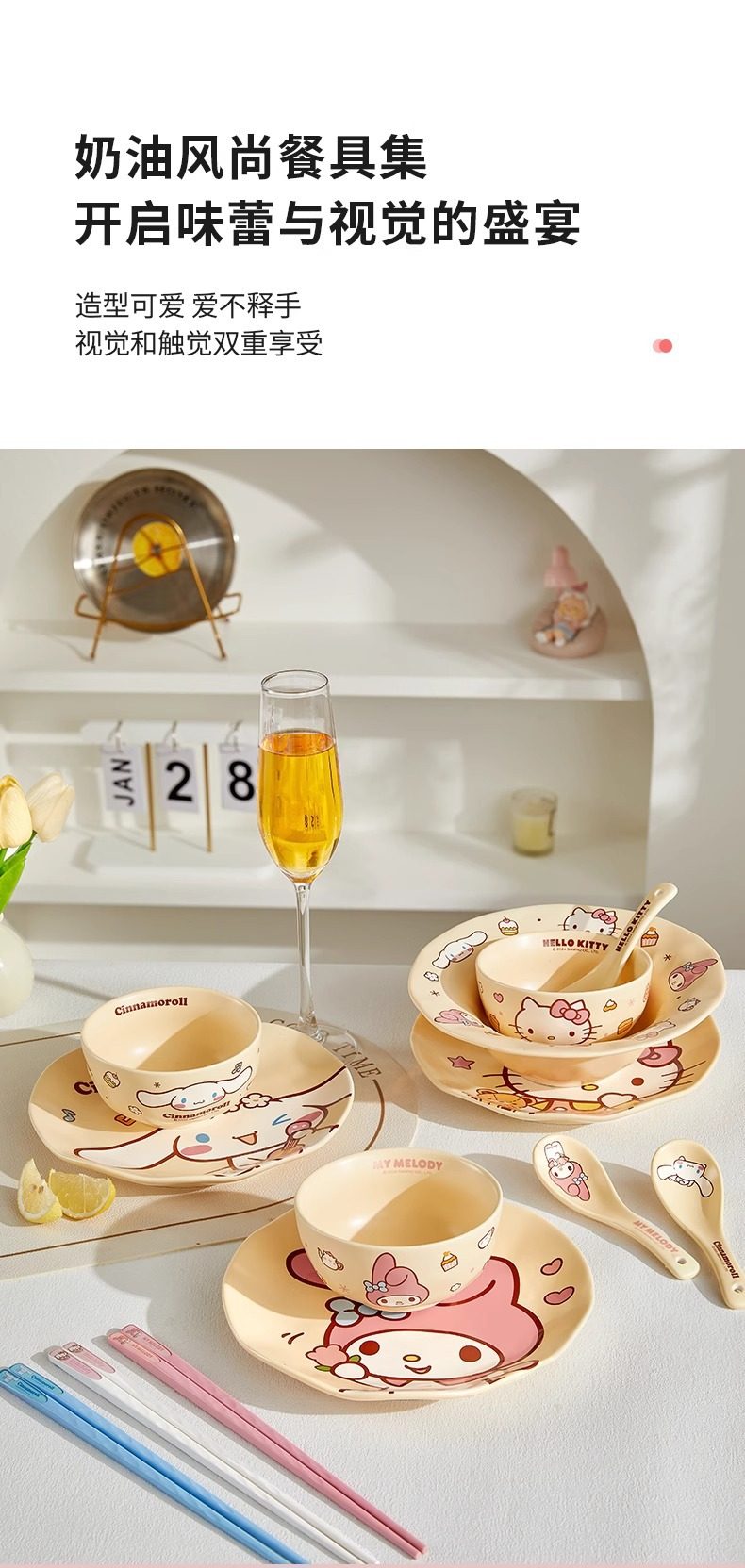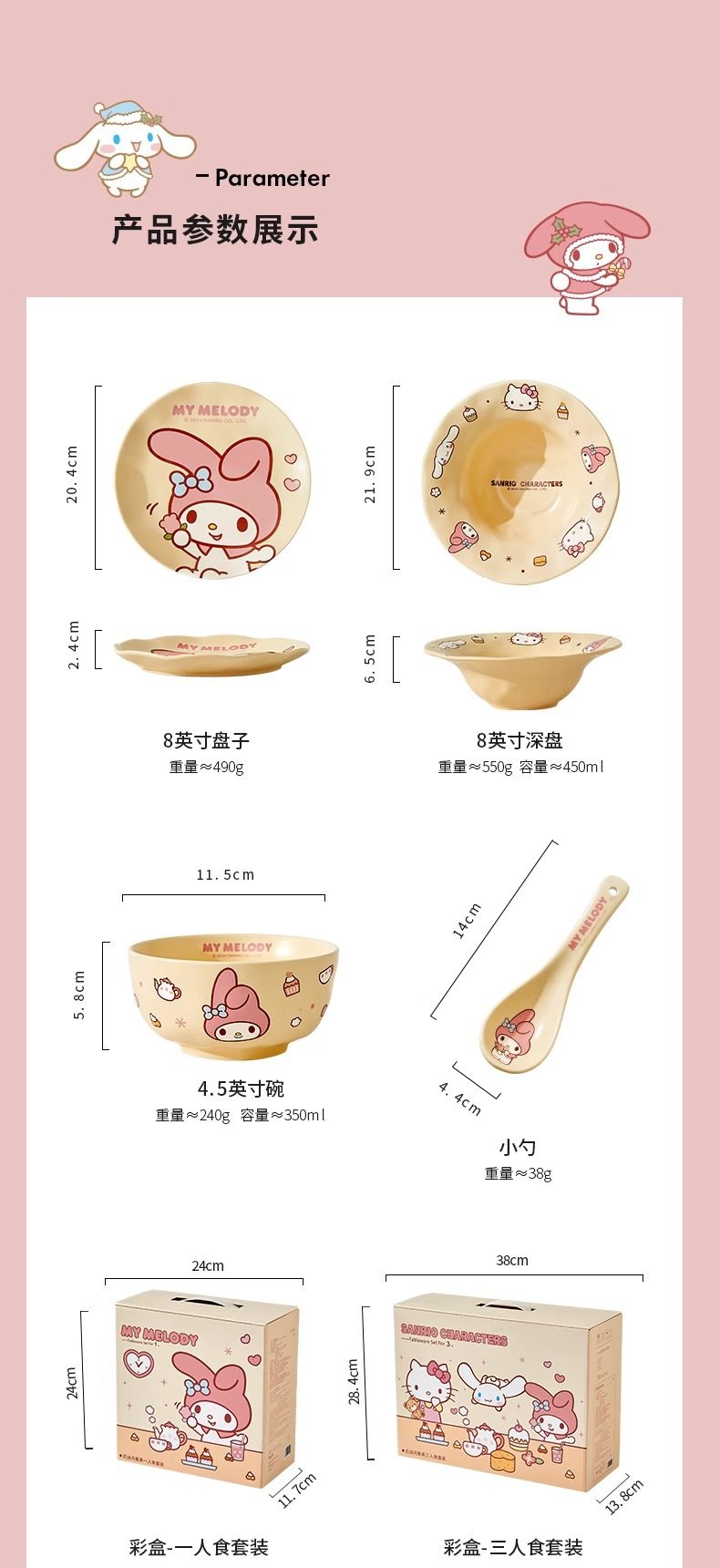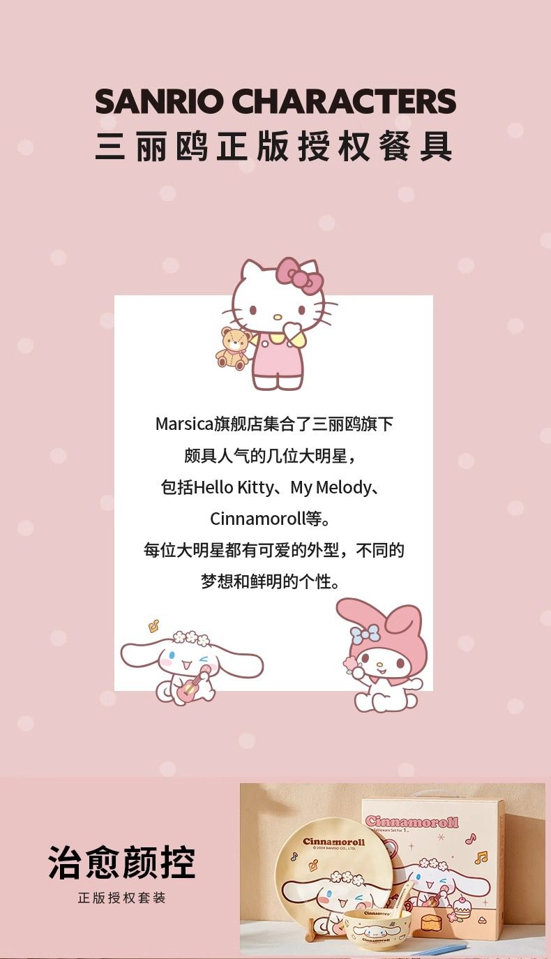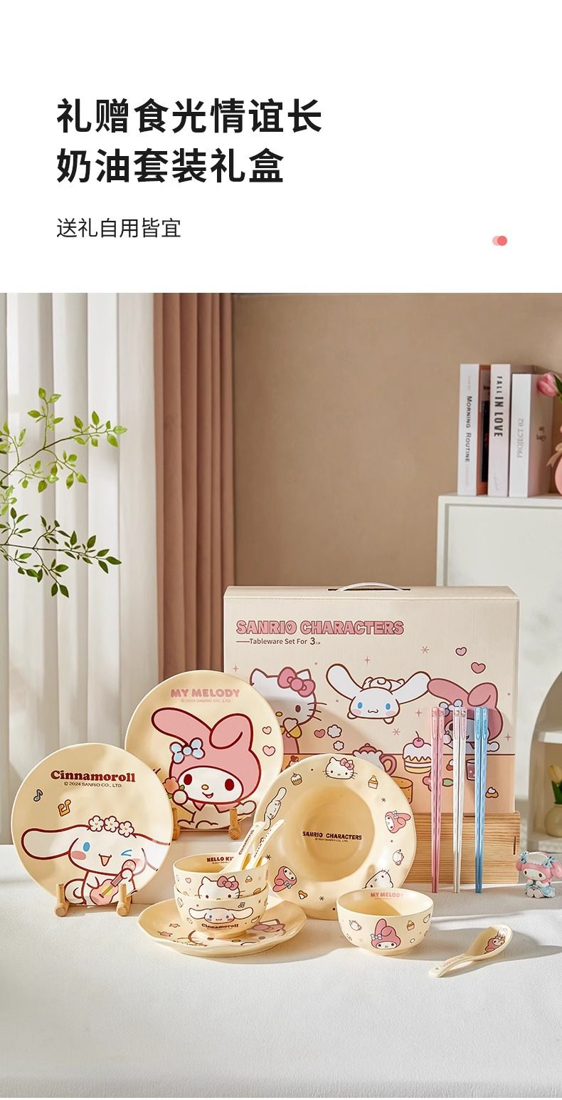 | Color | 4-piece set/one-person gift box set-my melody style,4-piece set/one-person food gift box set-hello kitty style,4-piece set/one-person food gift box set-cinnamoroll style,13-piece set/meal gift box set for three people,Cream style 4.5inch bowl-my melody style,Cream style 4.5inch bowl-cinnamoroll style,Cream style 8inch plates-my melody style,Cream style 8inch plate-hello kitty style,Cream style 8inch plate-cinnamoroll style,Cream style 8inch deep plate-combination style,Cream style spoon-my melody style,Cream style spoon-hello kitty style,Cream style spoon-cinnamoroll style,Cream style 4.5inch bowl-hello kitty style |