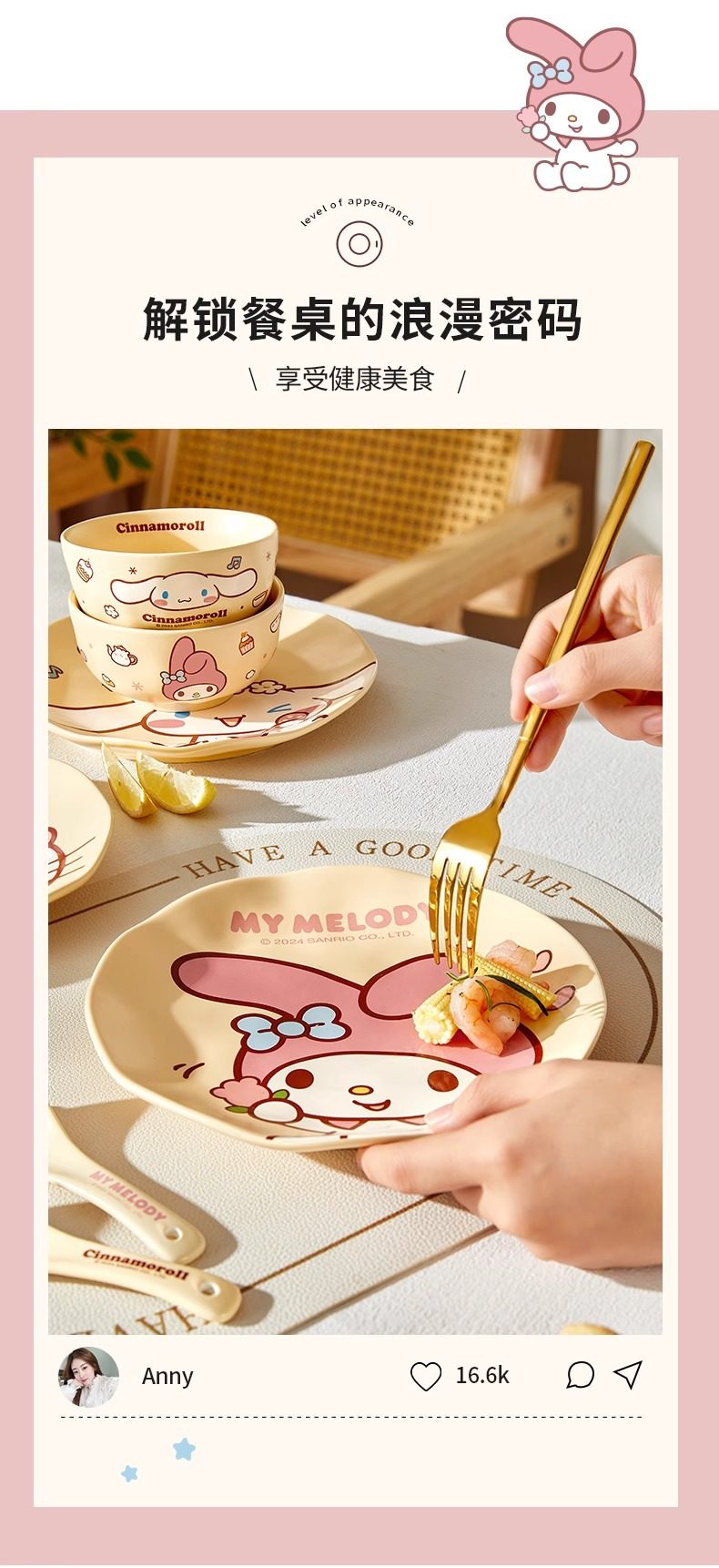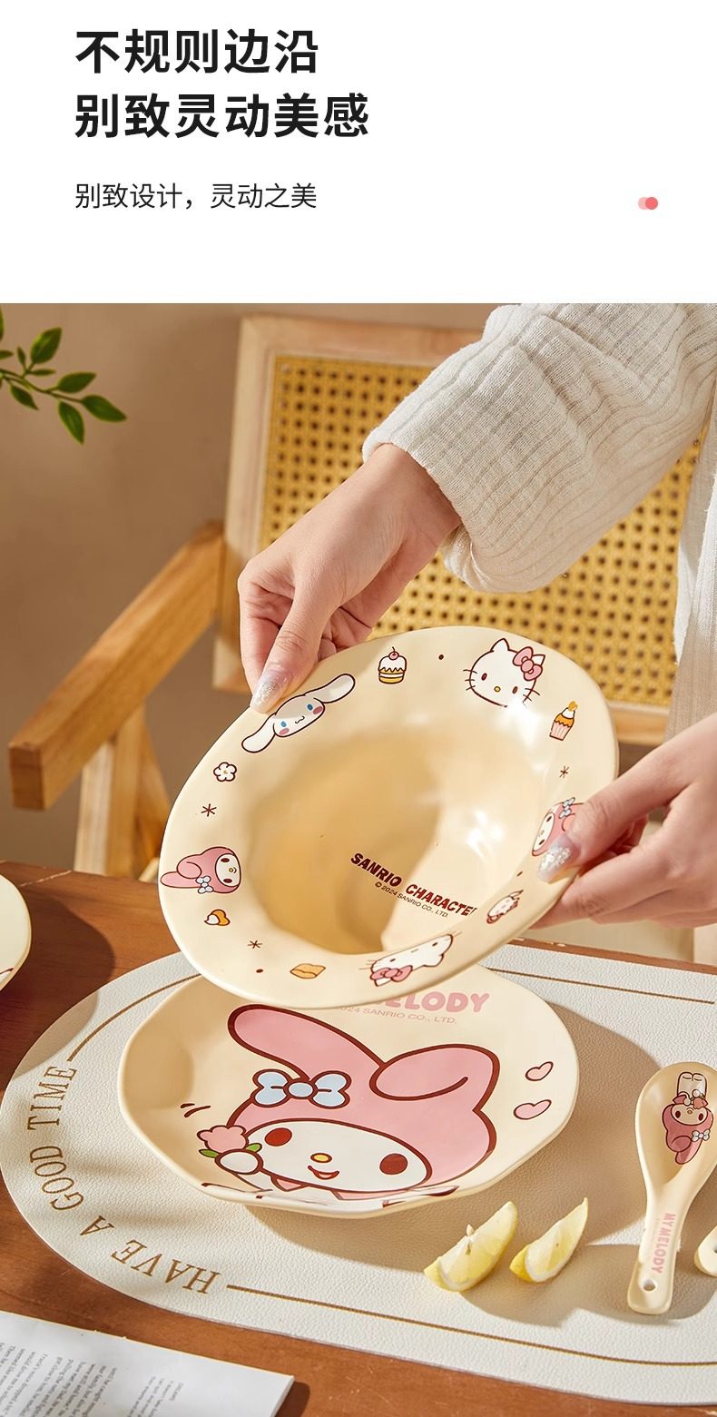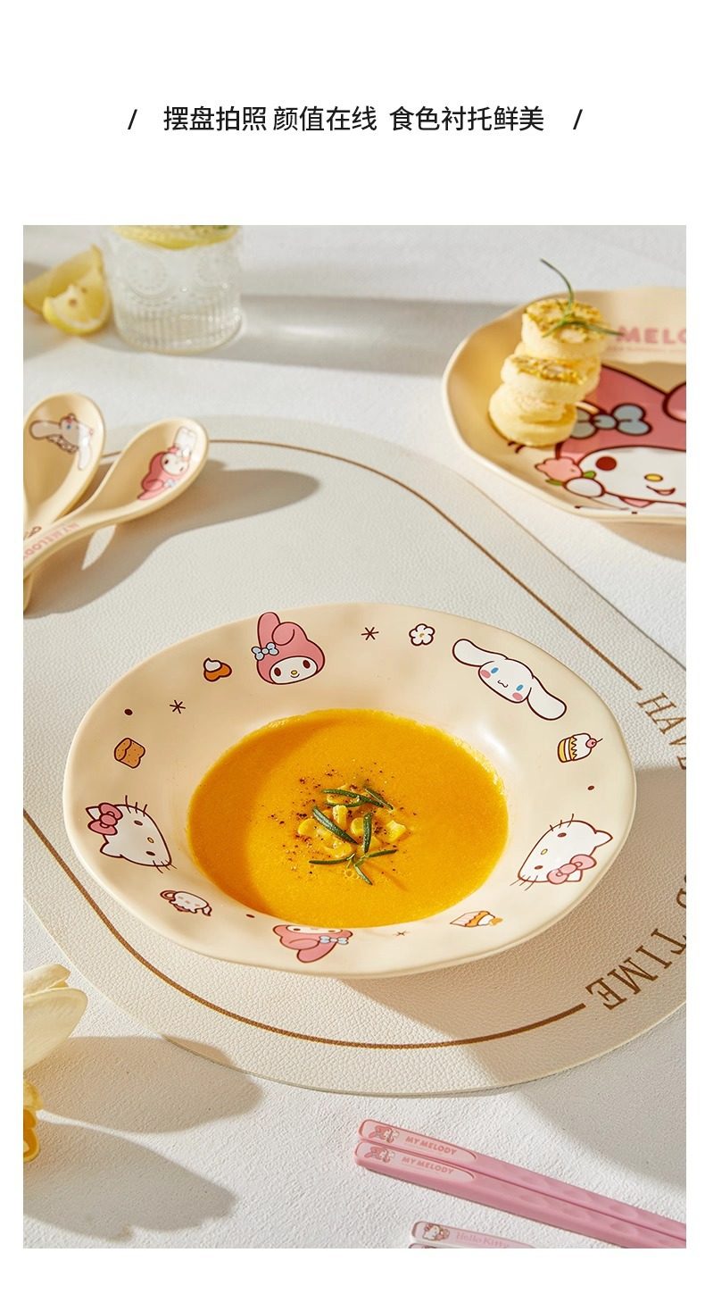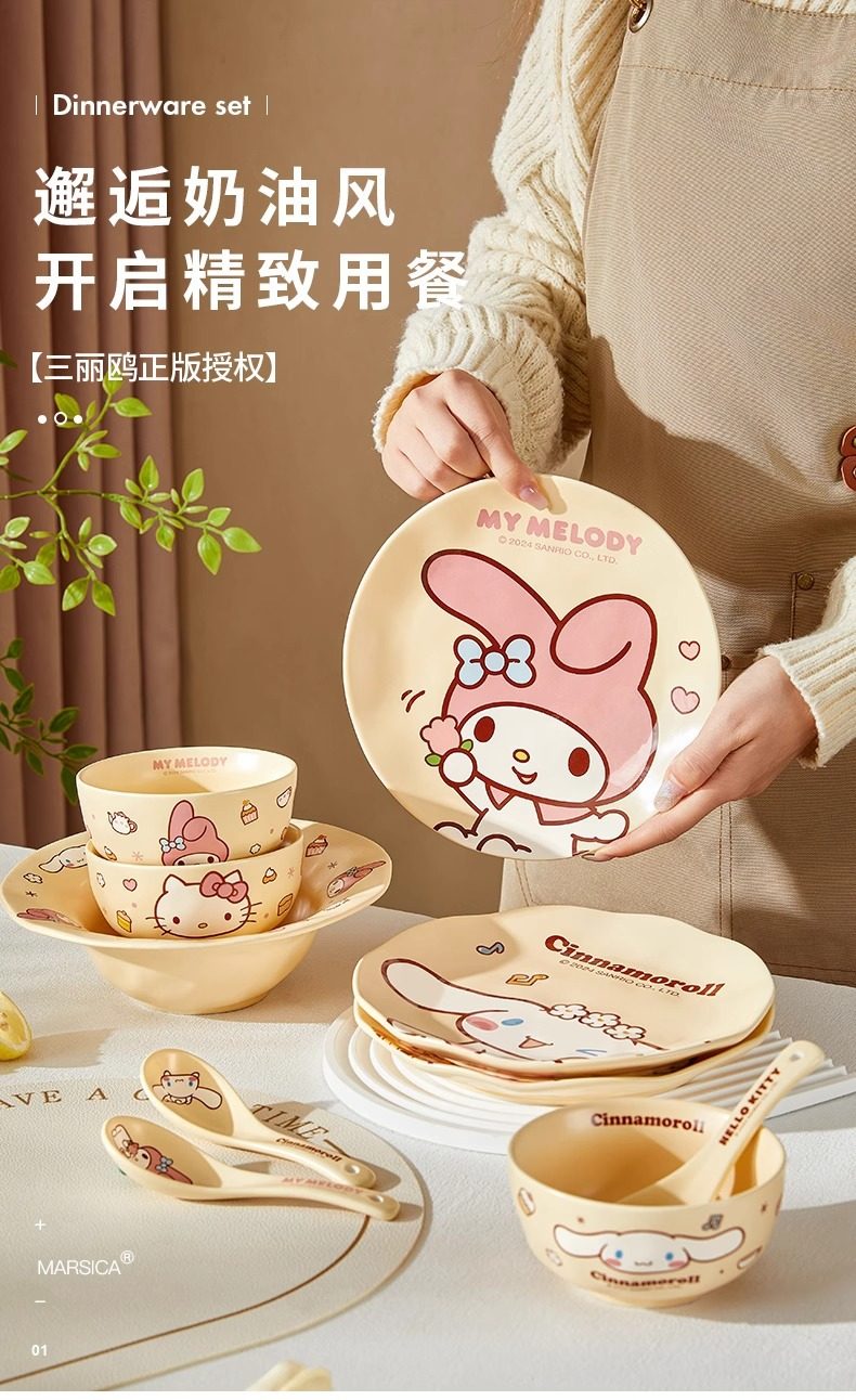 Sanrio Dinner Plate Melody Bowl and Dish Set Ceramic High-Value Household Cute Cream Style Tableware Bestie Gift