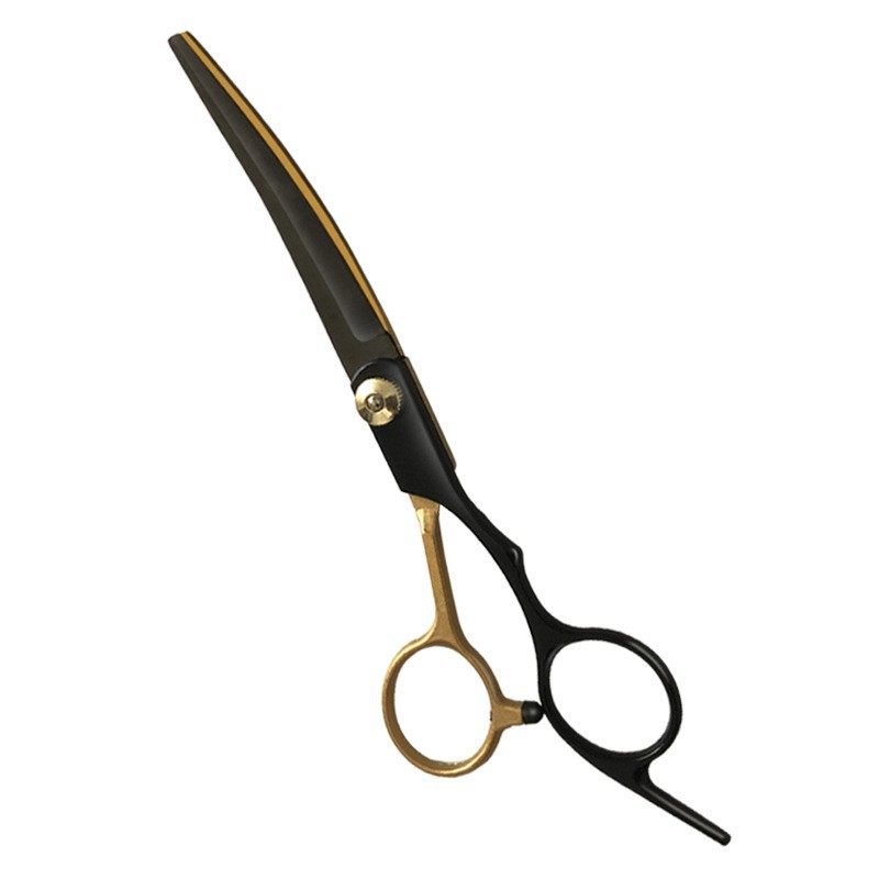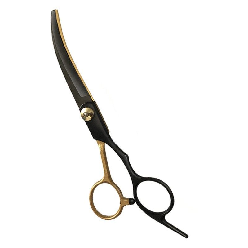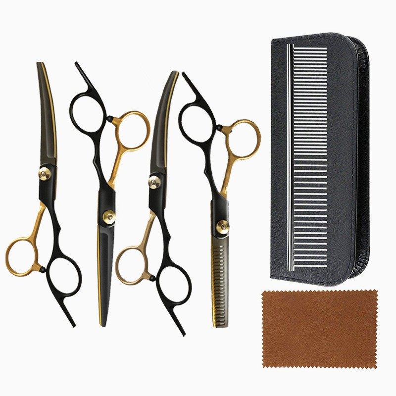 Pet Grooming Scissors Set for Cats and Dogs, Specialized Hair Trimming Tools, Black and Gold Curved Scissors for Pet Hair Cutting