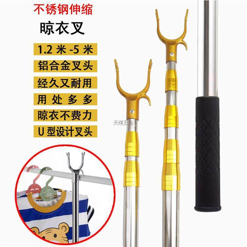 Telescopic Clothes Drying Rod New Style Fork Support Stainless Steel Clothes Rod Extendable 5m 2.3m 4m