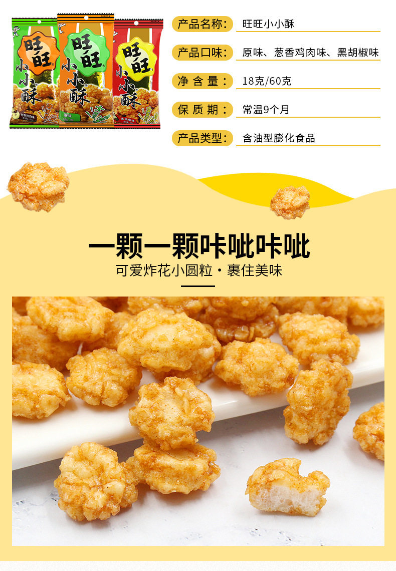 | Packaging specifications | Original flavor 18gx10 bags,Green onion flavor 18gx10 bags,Black pepper flavor 18gx10 bags,ă18gă10 bags of mixed flavors,Original flavor 18gx20 bags,Green onion flavor 18gx20 bags,Black pepper flavor 18gx20 bags,ă18gă20 bags of mixed flavors,Original flavor 18gx30 bags,Green onion flavor 18gx30 bags,Black pepper flavor 18gx30 bags,ă18gă30 bags of mixed flavors,Green onion flavor 60gx4 bags |
