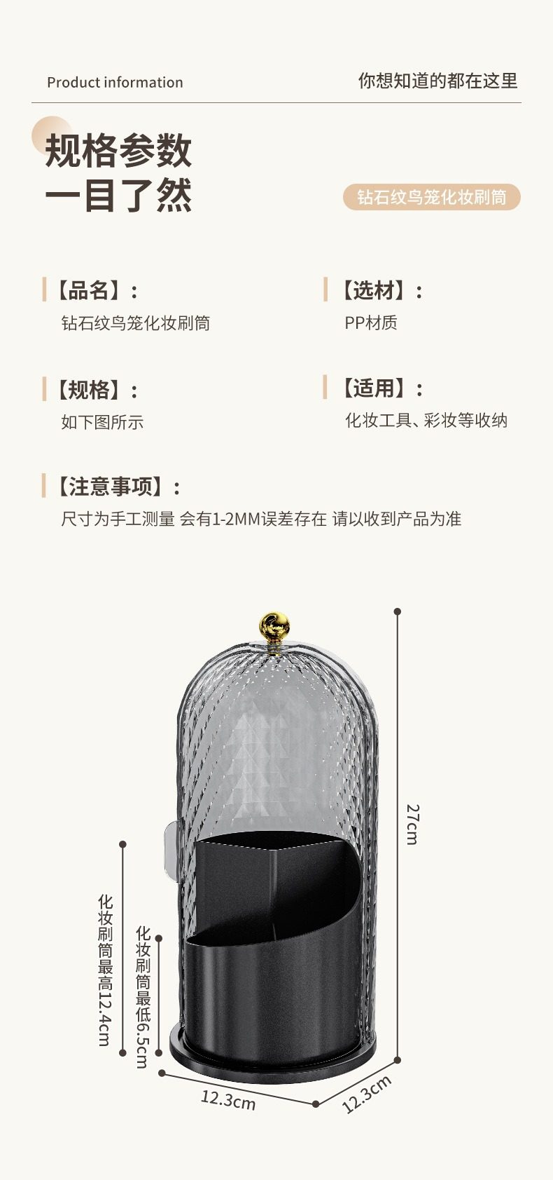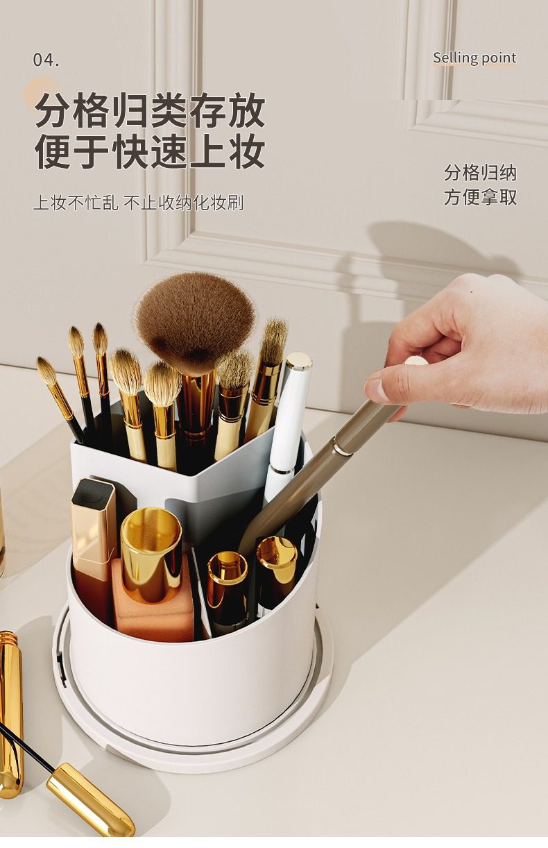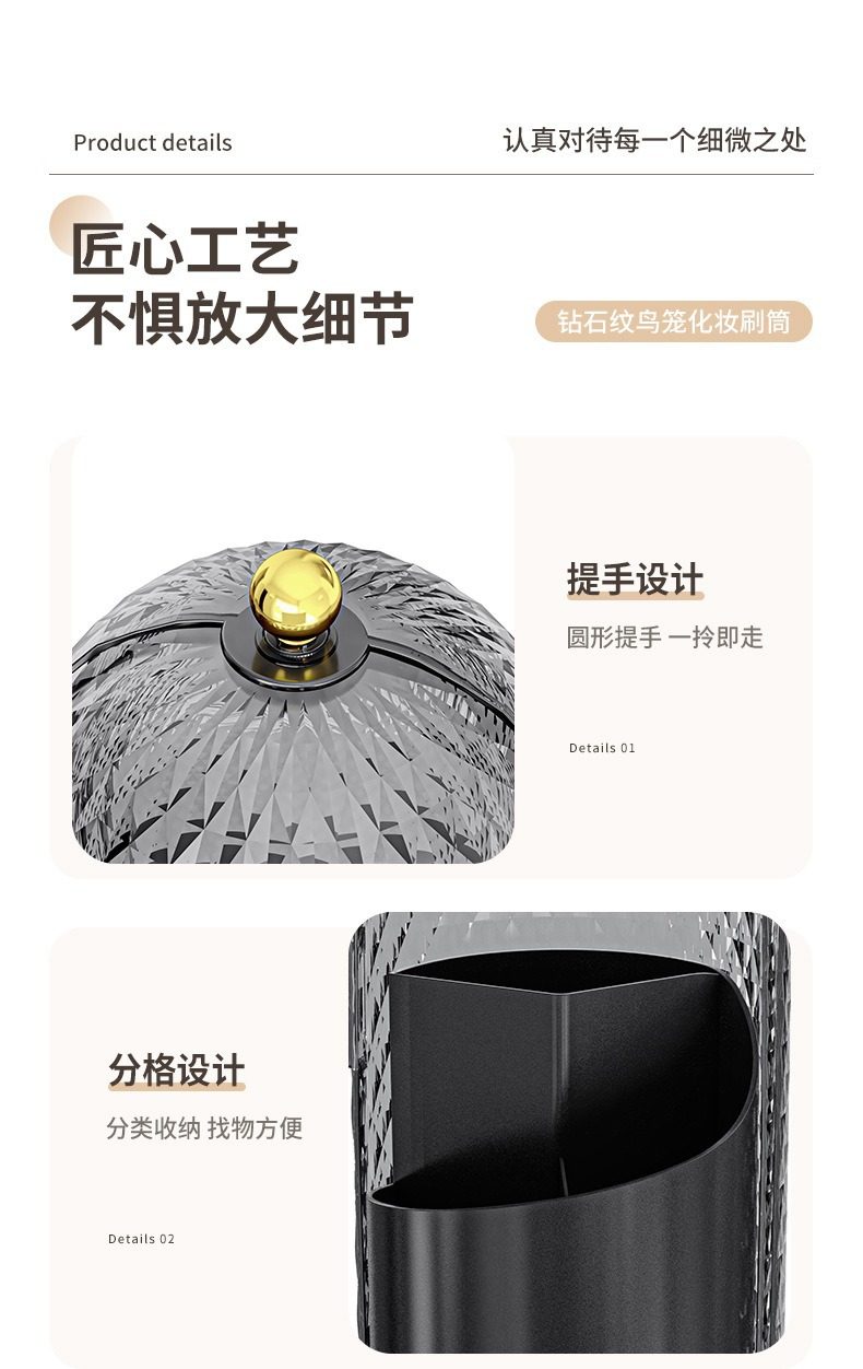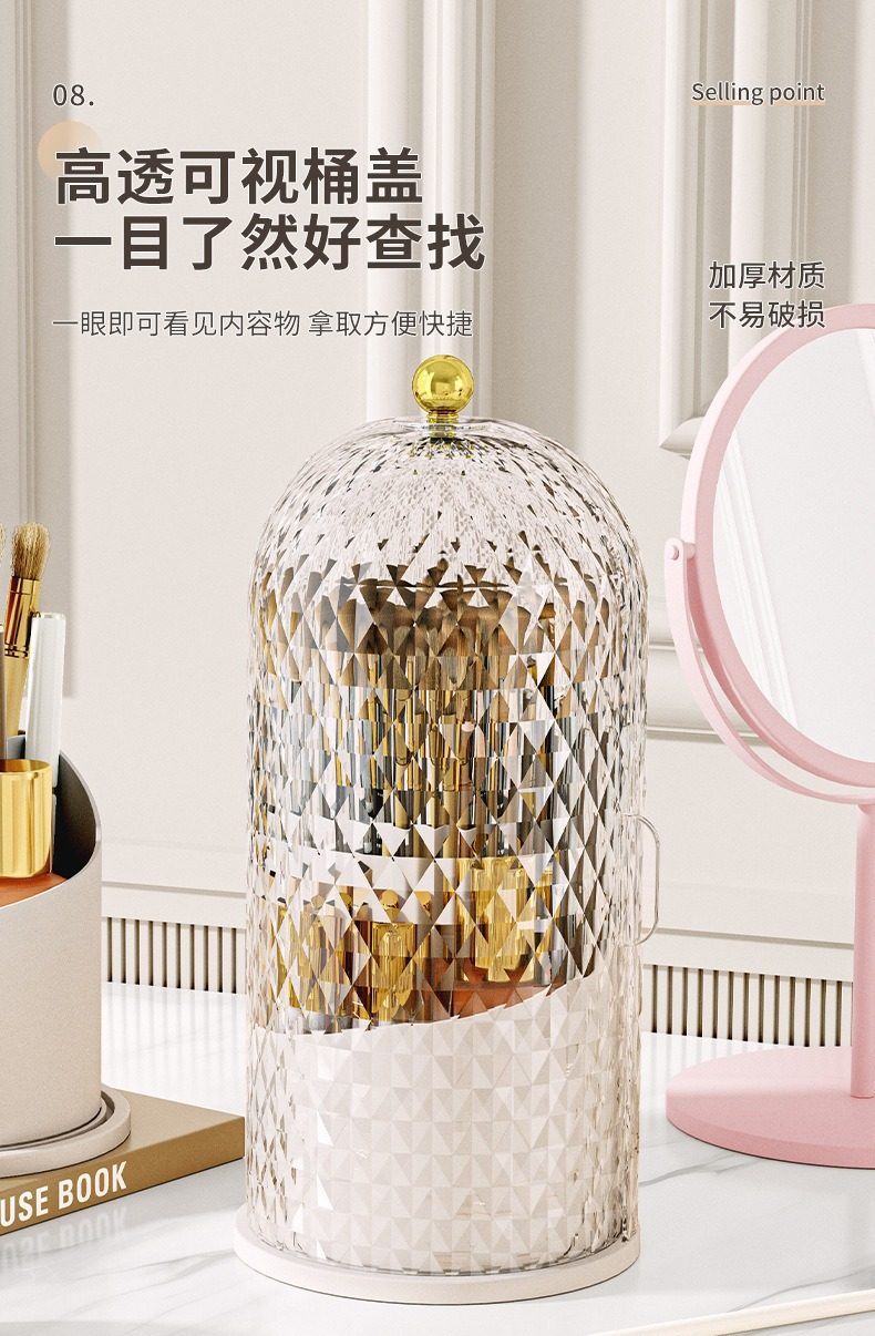 Light Luxury Diamond Pattern Desktop Compartment Storage Tube Transparent Dust-Proof Makeup Box with Lid Rotatable Cosmetics Storage Box