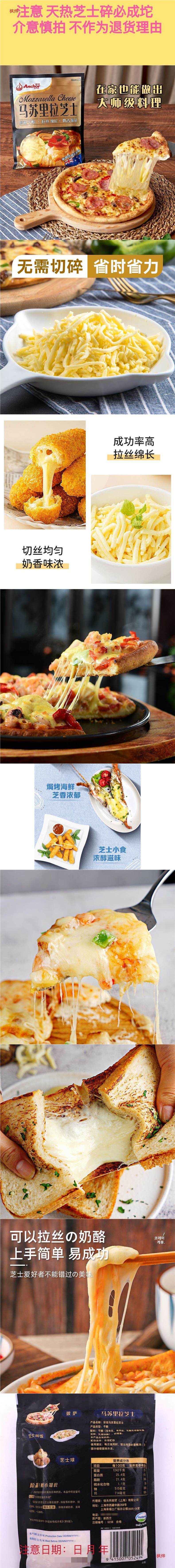 | Packaging specifications | Shredded cheese 400g*1 pack,Shredded cheese 208g*1 pack,Shredded cheese 208g original*2 packs + free pizza cutter,Shredded cheese 208g original * 2 packs free 2 packs of tomato sauce 90g,Shredded cheese 400g*2 packs + pizza cutter |