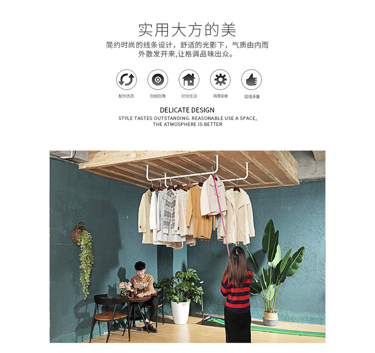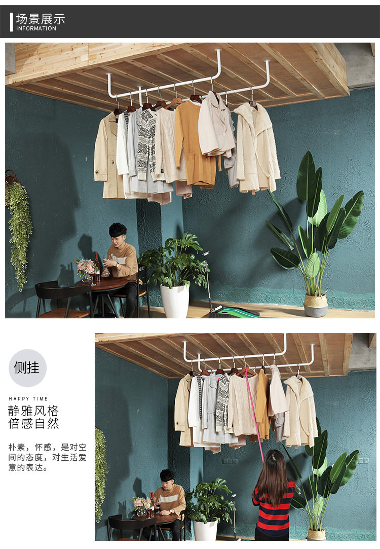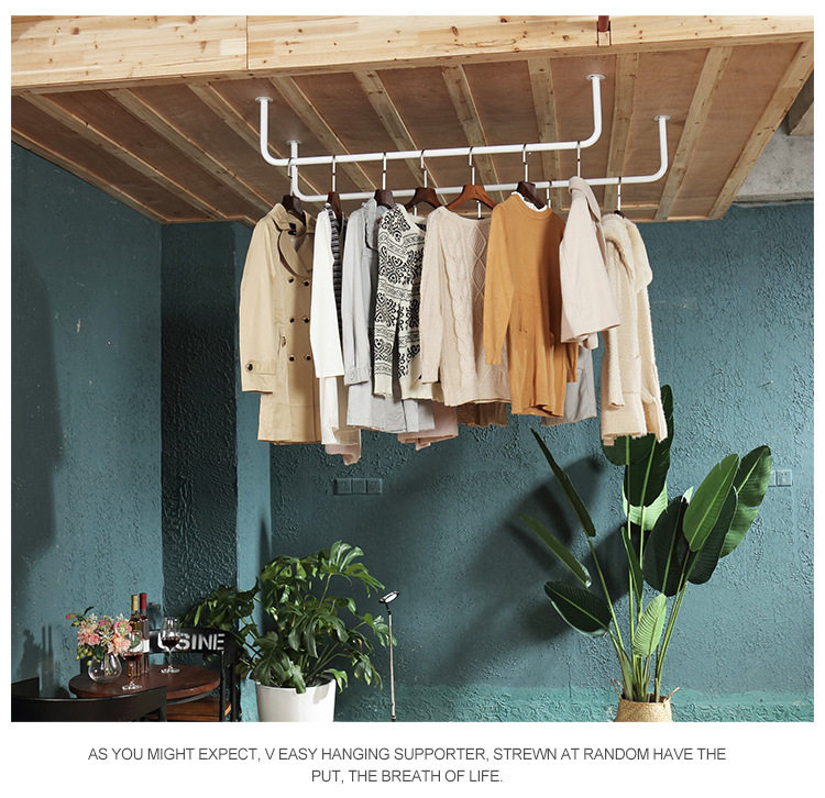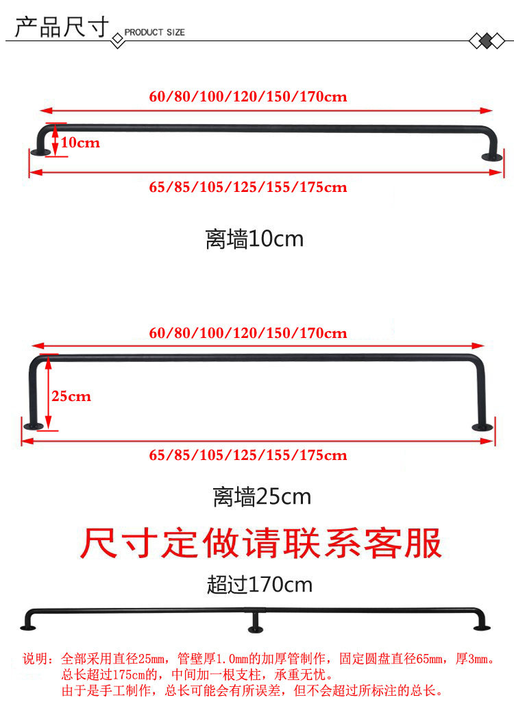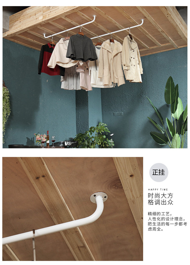 Clothes Drying Rod Balcony Top-Mounted Thickeneded Single Rod Wall-Mounted Clothes Drying Rod Indoor Clothes Hanger Clothes Rod Fixed Clothes Hanging Rod