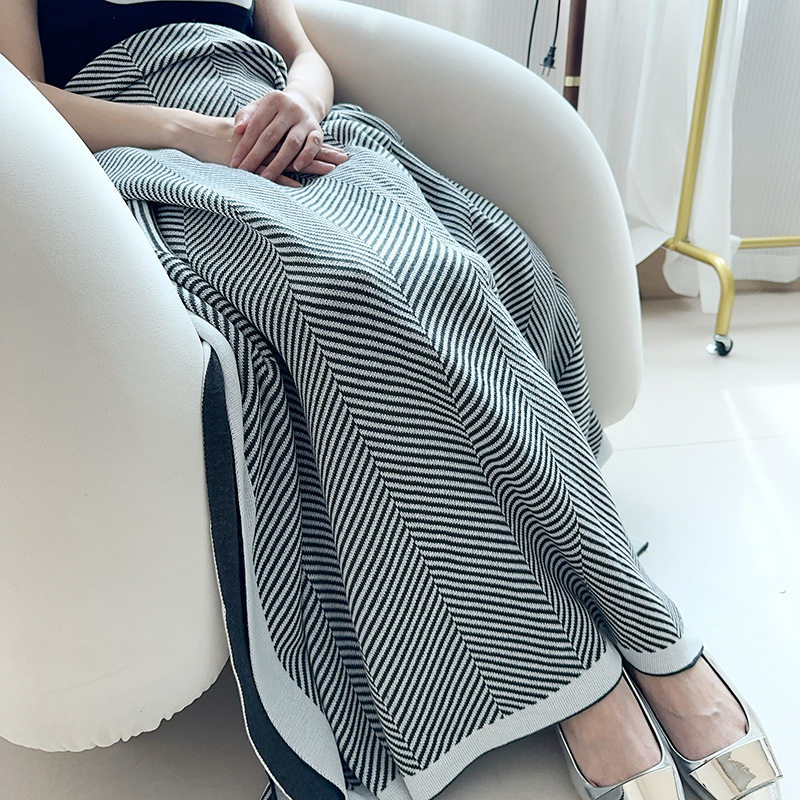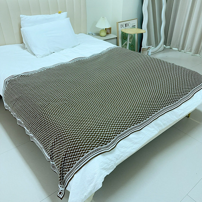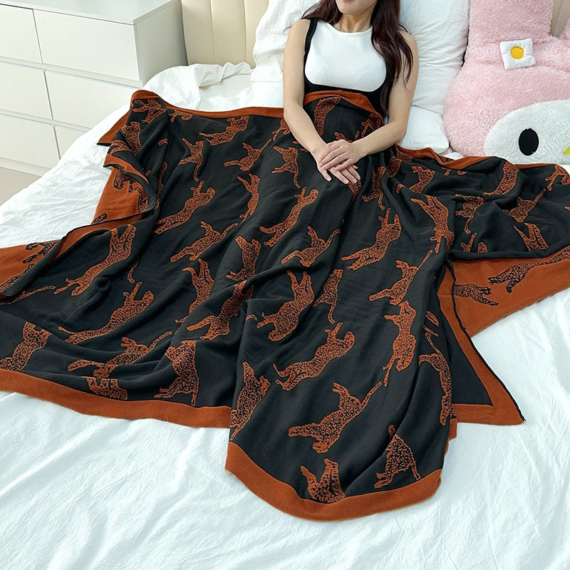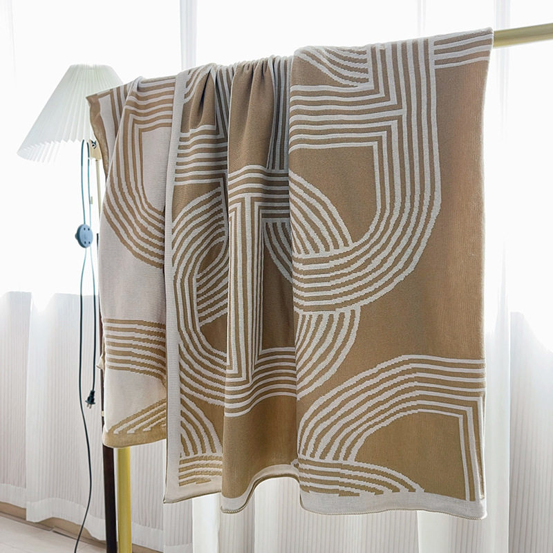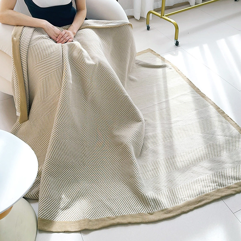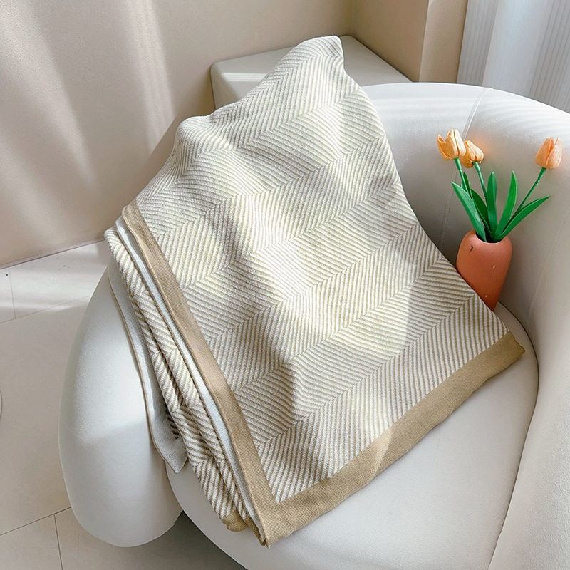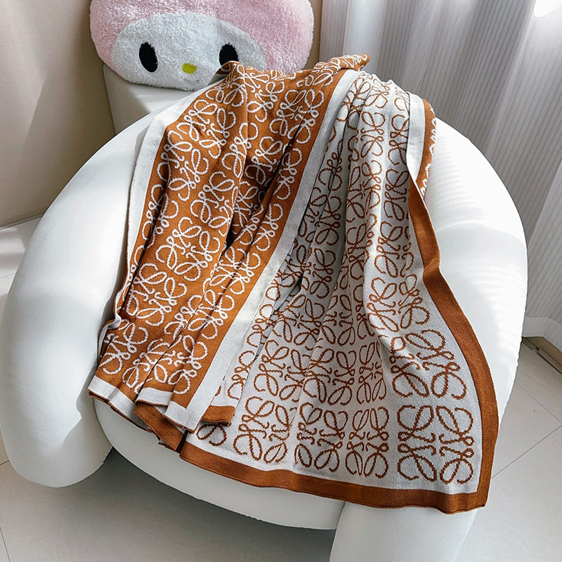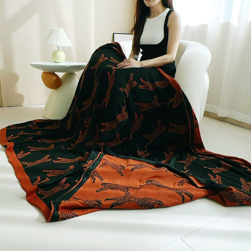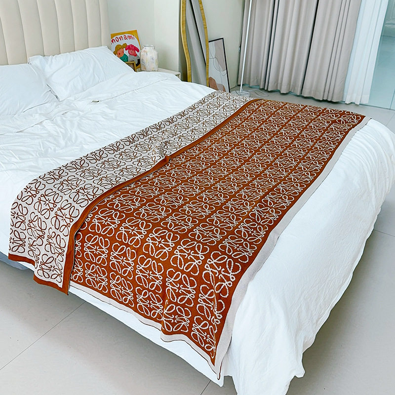 American-Style Knitted Blanket, Spring and Autumn Orange Throw Blanket, Fine Woven Blanket, Decorative Model Room, Homestay Bed End Towel Blanket, Factory Ready Stock