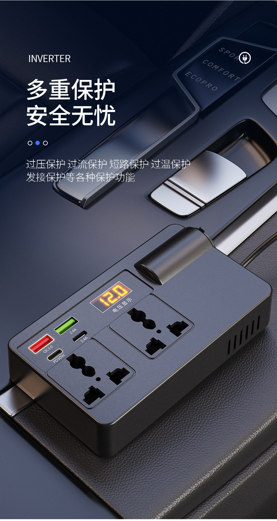 Car Truck 12V24V to 220V Multifunctional Car Inverter Charger Fast Charging Plug Power Converter