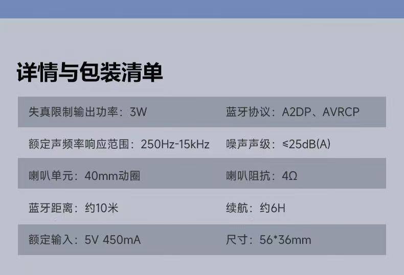 | Built-in battery capacity | 300mah-500mah (inclusive) |