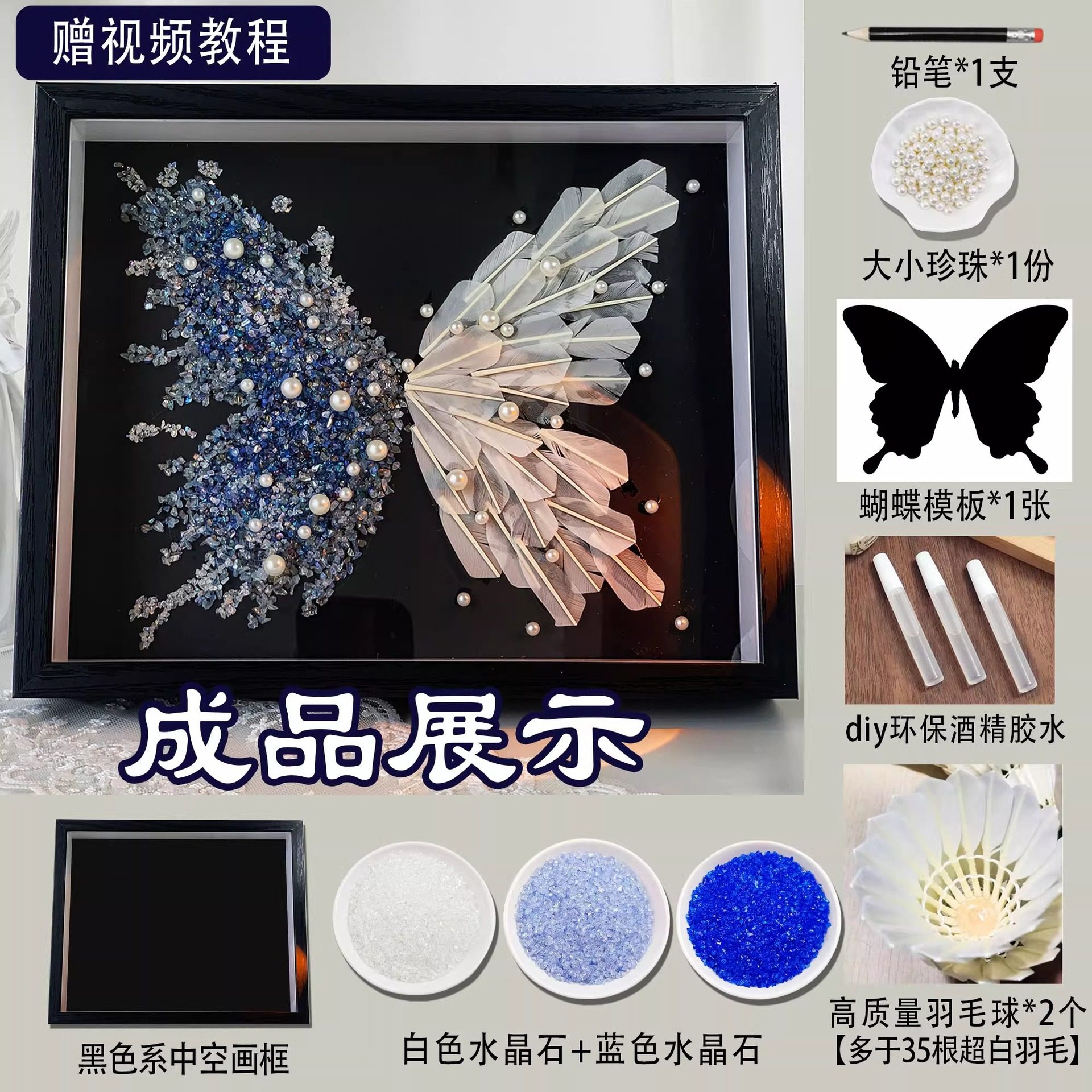 Ice Blue Crystal Feather Butterfly Photo Frame DIY Handmade Material Package Desktop Table Photo Frame Chinese Valentine's Day Gift