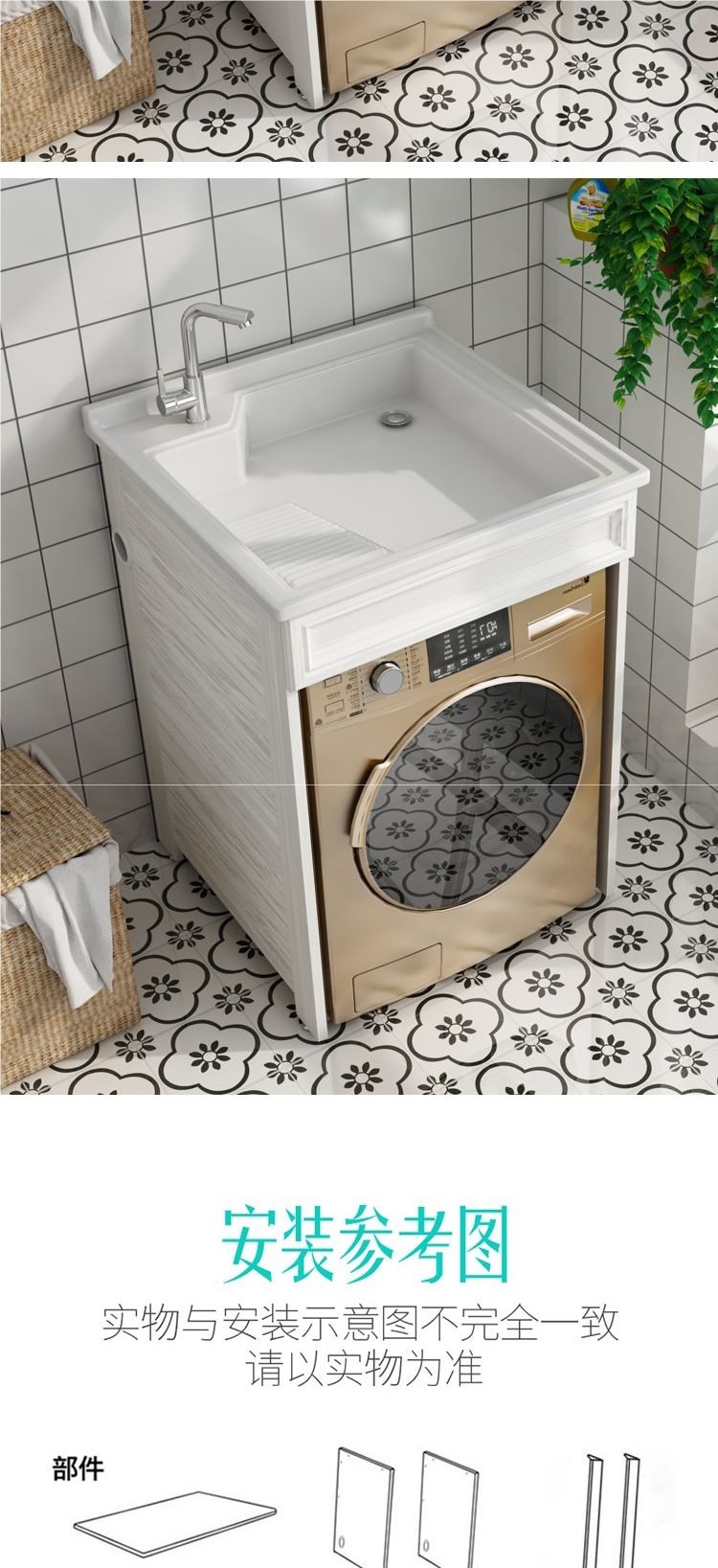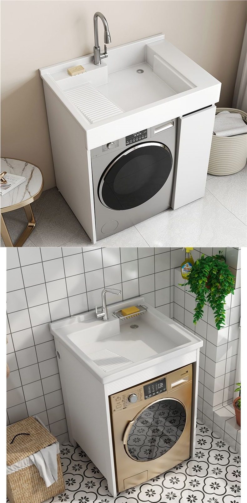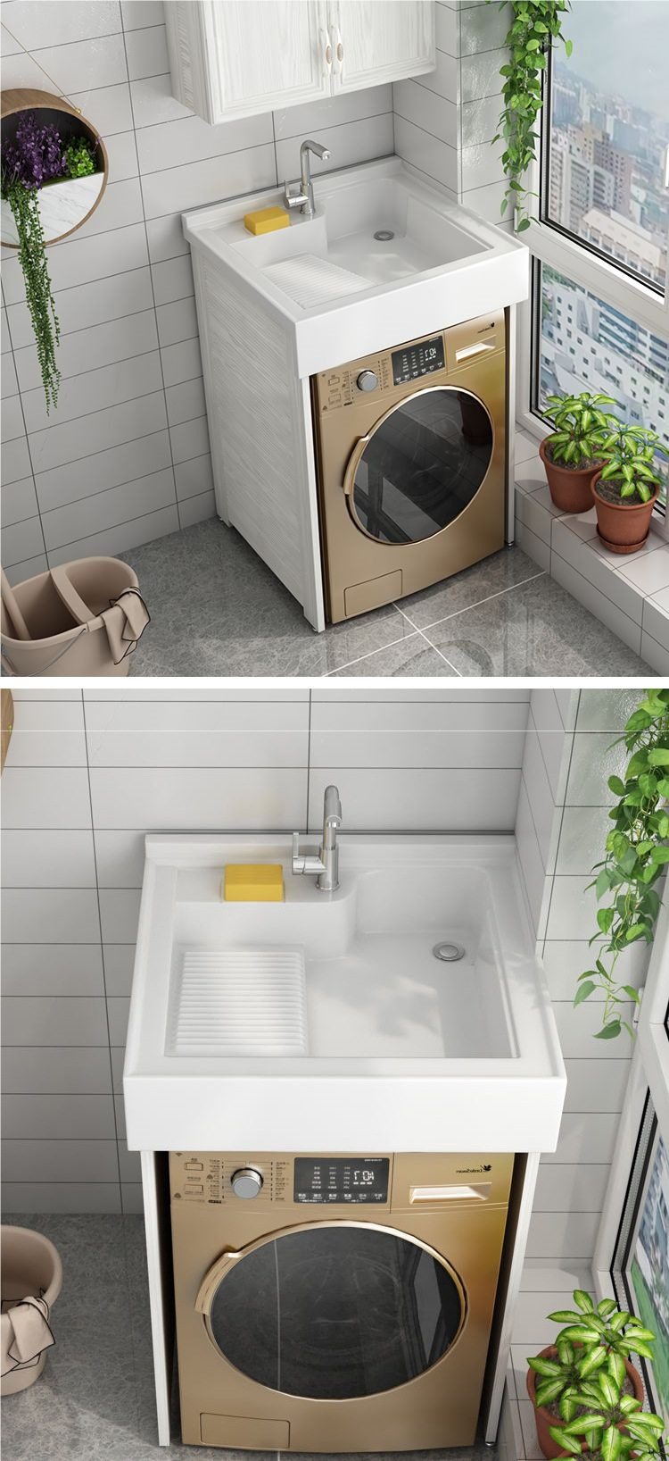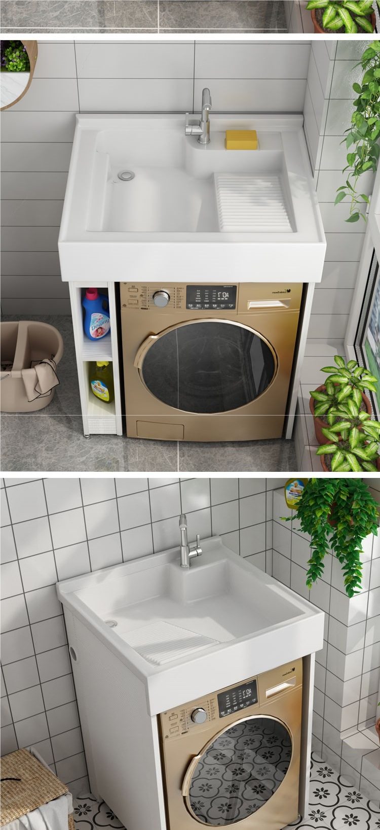 Small Apartment Balcony Laundry Cabinet Integrated Machine with Countertop Basin Drum Washing Machine Cabinet with Washboard Bathroom Bathroom Cabinet