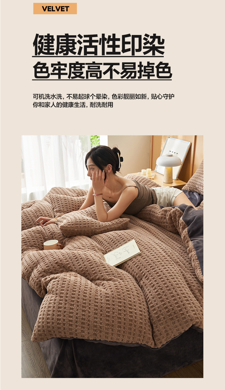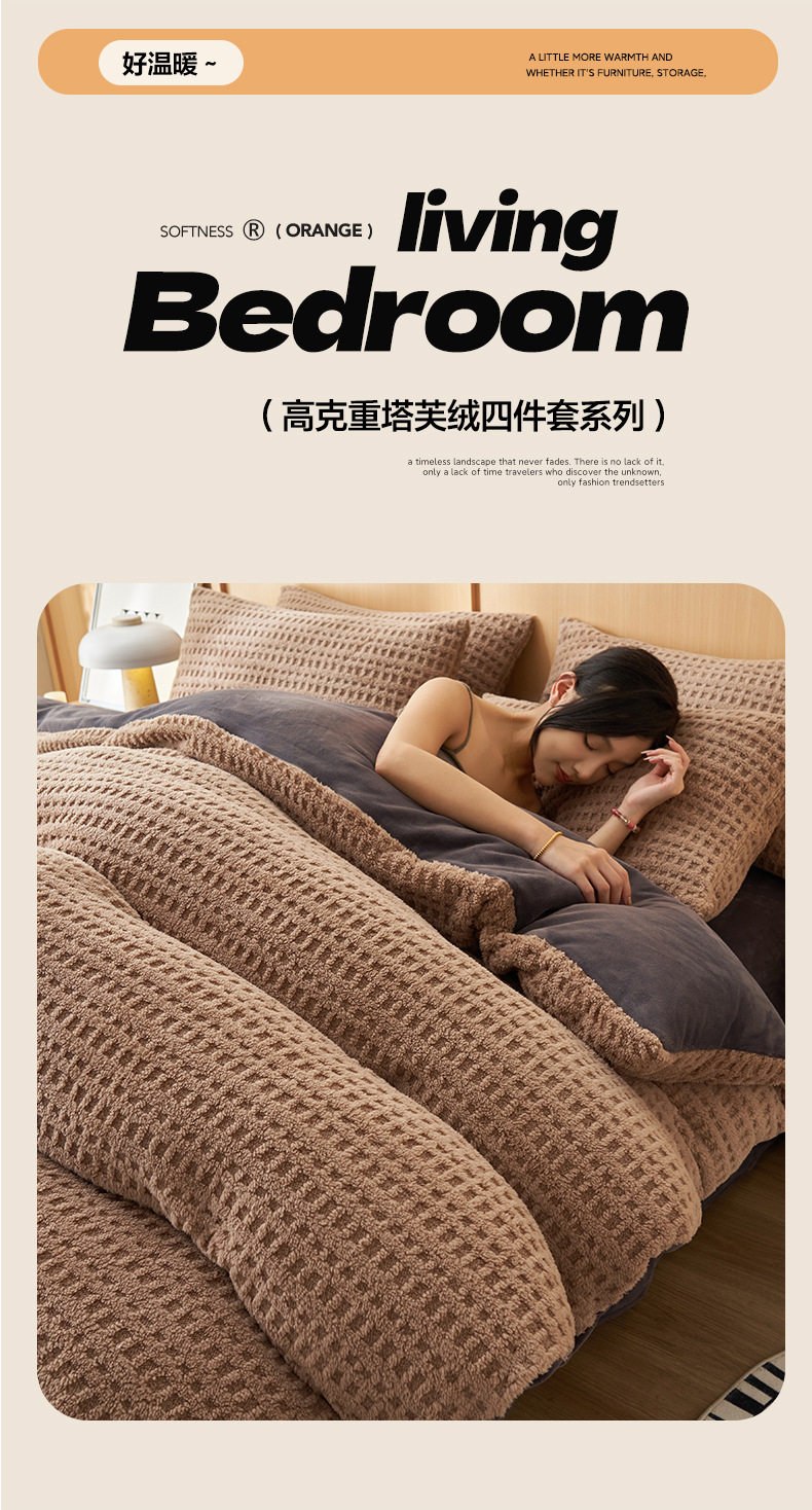 New Customer Special: Four-Piece Milk Velvet Bed Sheet and Duvet Cover Set, Thickened and Warm Coral Velvet Three-Piece Bed Set, Flannel