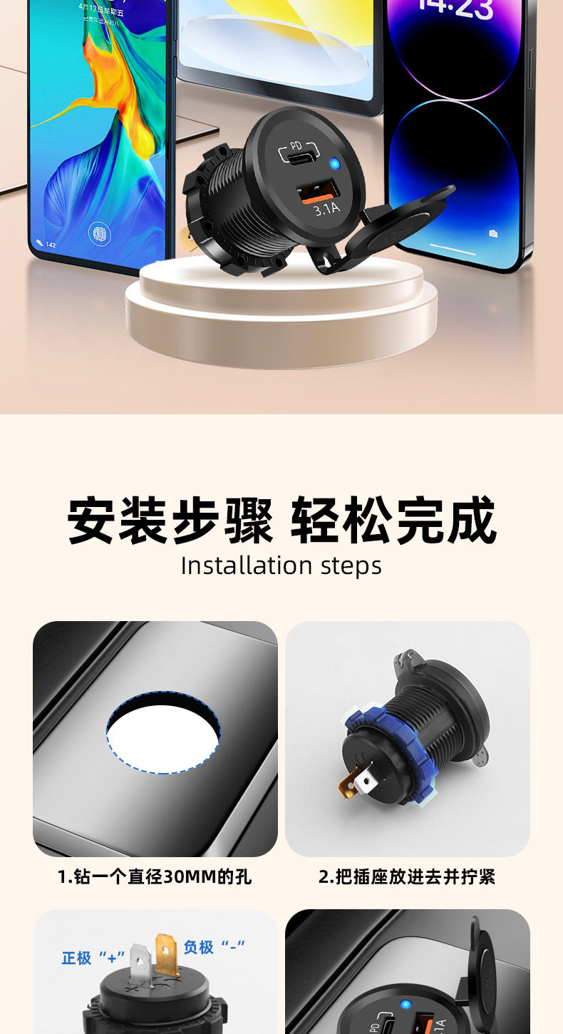 | Color | Pd+usb car charger with indicator light,Dual usb car charger with indicator light |
