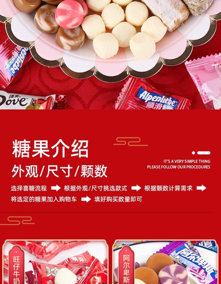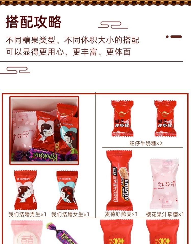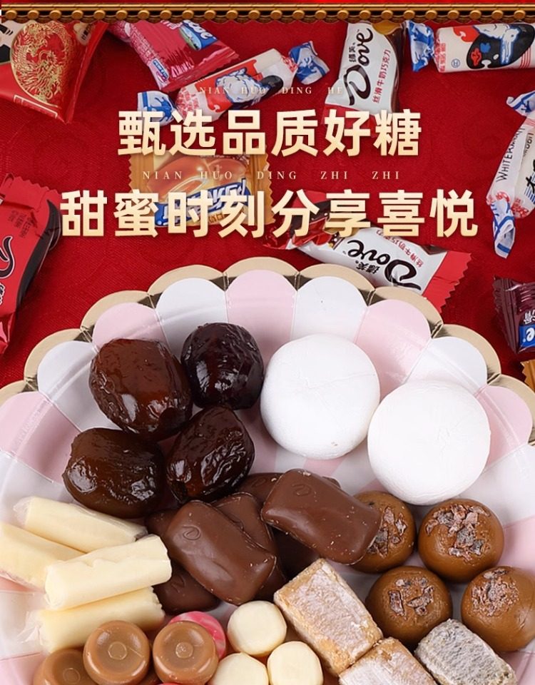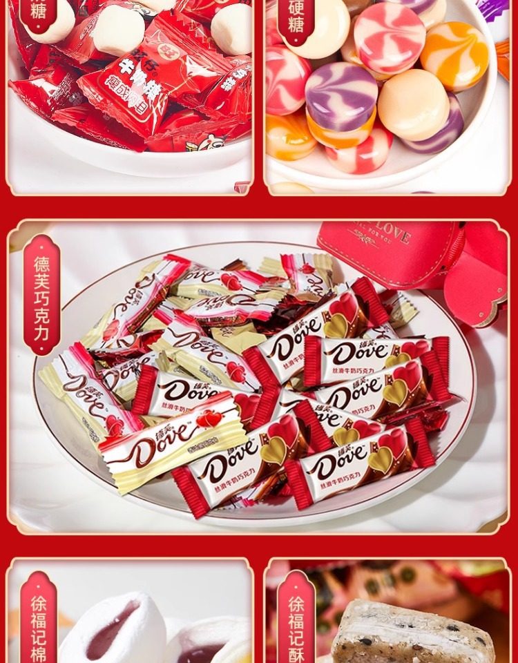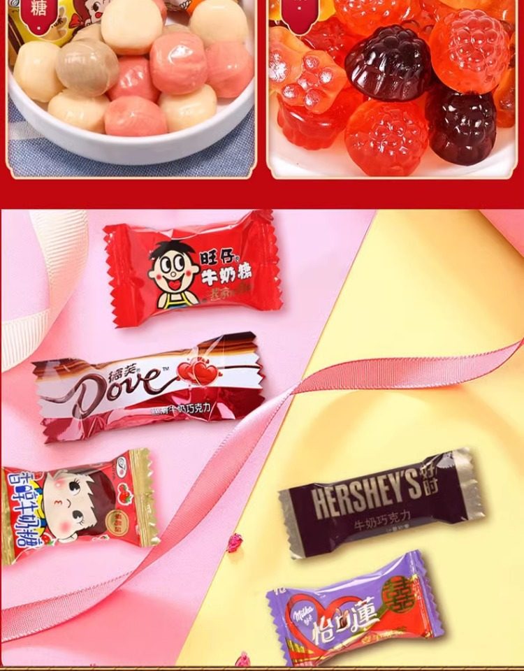 | Packaging specifications | Please see the large picture for size - multi-brand mixed candy 500g (package a - about 100 pieces),Please see the large picture for size - multi-brand mixed candies 500g (package b - about 80 pieces),Please see the large picture for size - multi-brand mixed candy 500g (set c - about 80 pieces),Please see the large picture for size - alpine hard candy mixed pack 500g (about 130 pieces),Please see the large picture for size - wangzai milk candy 500g (about 150 pieces),Please see the large picture for size - dove chocolate 500g (about 100 pieces),Please see the large picture for size - russian kdv purple sugar 500g (about 70 pieces),Please see the large picture for size - white rabbit milk candy 500g (about 85 pieces),Please see the large picture for size - zhenghong double happiness festive dates 500g (about 35 pieces),Please see the large picture for size - zaosheng guizi dense dates 500g (about 35 pieces),Please see the big picture for size - kiss baby festive dates 500g (about 35 pieces),Please see the big picture for the size - wedding gift festive dates 500g (about 35 pieces),Please see the large picture for size - zaosheng guizi sweet dates 500g (about 36 pieces),Please see the big picture for the size - lucky day festive dates 500g (about 32 pieces),Please see the big picture for the size - big bag - daxi's auspicious date candied dates 500g (about 20 bags),Please see the large picture for size - 500g of jujube and walnut (about 53 pieces),Please see the big picture for the size - happy milk dates 500g (about 31 pieces),Please see the large picture for size - fujiya milk candy mixed flavor 500g (about 100 pieces),Please see the large picture for size - yoha milk candy mixed flavor 500g (about 100 pieces),Please see the big picture for size - oh oh milk candy 500g (about 95 pieces),Please see the large picture for size - sakura double happiness marshmallow 500g (about 60 pieces),Please see the large picture for size - hsu fu chi marshmallow 500g (about 60 pieces),Please see the big picture for the size - tangliyouchang marshmallow 500g (about 60 packs),Please see the large picture for size - snow cookies marshmallows 500g (about 80 packs),Please see the big picture for the size - golden crown joy marshmallow 500g (about 70 pieces),Please see the large picture for size - snowy marshmallow 500g (about 48 packs),Please see the large picture for size - golden delicious peanut nougat 500g (about 50 pieces),Please see the big picture for size - little brother malisin 500g (about 110 pieces),Please see the large picture for size - golden crown triangular bag malisin 500g (about 42 bags),Please see the large picture for size - hsu fu chi crispy candies 500g (about 38 pieces),Please see the big picture for the size - happy family peanut crispy 500g (about 42 pieces),Please see the large picture for size - mai de hao chocolate flavored oats 468g (about 40 pieces),Please see the large picture for size - longke snowflake crispy 500g (about 42 packs),Please see the large picture for size - golden crown cranberry snow crisp 500g (about 42 packs),Please see the large picture for size - golden crown double happiness snow crisp 500g (about 47 pieces),Please see the big picture for size - xue ke zi double happiness cranberry snowflake crispy 500g (about 50 pieces),Please see the large picture for size - mai de hao snowflake crispy cranberry flavor 500g (about 45 pieces),Please see the large picture for size - golden crown wedding gift cranberry snow crisp 500g (about 40 pieces),Please see the large picture for size - white peach flavored hard candy 500g (about 115 pieces),Please see the big picture for the size - longke xishi milk crisp mixed flavor 500g (about 60 pieces),Please see the large picture for size - hongyuan tangerine peel candy 500g (about 170 pieces),Please see the large picture for size - golden crown brown sugar plum 468g (about 70 pieces),Please see the large picture for size - yake thick filling hard candy 500g (about 110 pieces),Please see the big picture for size - golden crown let's get married hard candy 500g (about 105 pieces),Please see the large picture for size - fruit hard candy mixed flavor 500g (about 110 pieces),Please see the big picture for the size - golden crown full of joy hard candy 500g (about 68 pieces),Please see the large picture for size - disney double flavor fruit hard candy 500g (about 65 pieces),Please see the large picture for size - orion fruit gummy candy 500g (about 24 packs),Please see the large picture for size - hsu fu chi juice gummy candy 500g (about 35 packs),Please see the large picture for size - hsu fu chi heart shaped gummy candy 500g (about 62 pieces),Please see the large picture for size - happy cranberry gummies 500g (about 65 pieces),Please see the large picture for size - ococo cranberry gummies 500g (about 67 pieces),Please see the large picture for size - yake festive love gummies 500g (about 30 packs),Please see the large picture for size - strawberry bear white peach flavor jelly 500g (about 26 pieces),Please see the large picture for size - strawberry bear fruit flavor gummies 500g (about 32 packs),Please see the large picture for size - strawberry bear cranberry gummies 500g (about 58 pieces),Please see the large picture for size - golden delicious orange gummy candy 500g (about 30 pieces),Please see the big picture for size - peach you happy gummy candy 500g (about 60 pieces),Please see the large picture for size - yake corn roasted gummy candy 500g (about 42 pieces),Please see the large picture for size - yake mango gummy candy 500g (about 48 pieces),Please see the large picture for size - longke wedding gift nougat 500g (about 46 pieces),Please see the large picture for size - golden crown amanda nougat 500g (about 45 pieces),Please see the large picture for size - golden crown double happiness nougat 500g (about 50 pieces),Please see the big picture for the size - xue ke zi xi small round cake 500g 