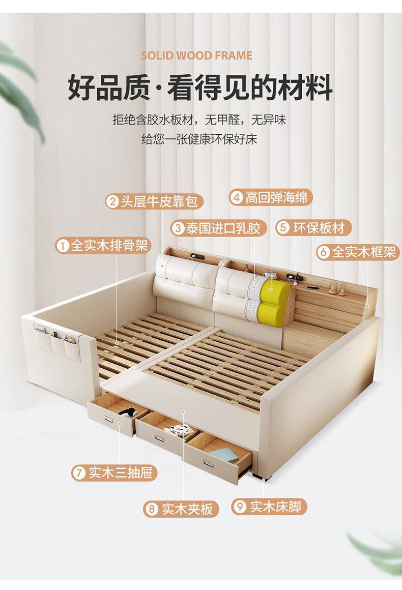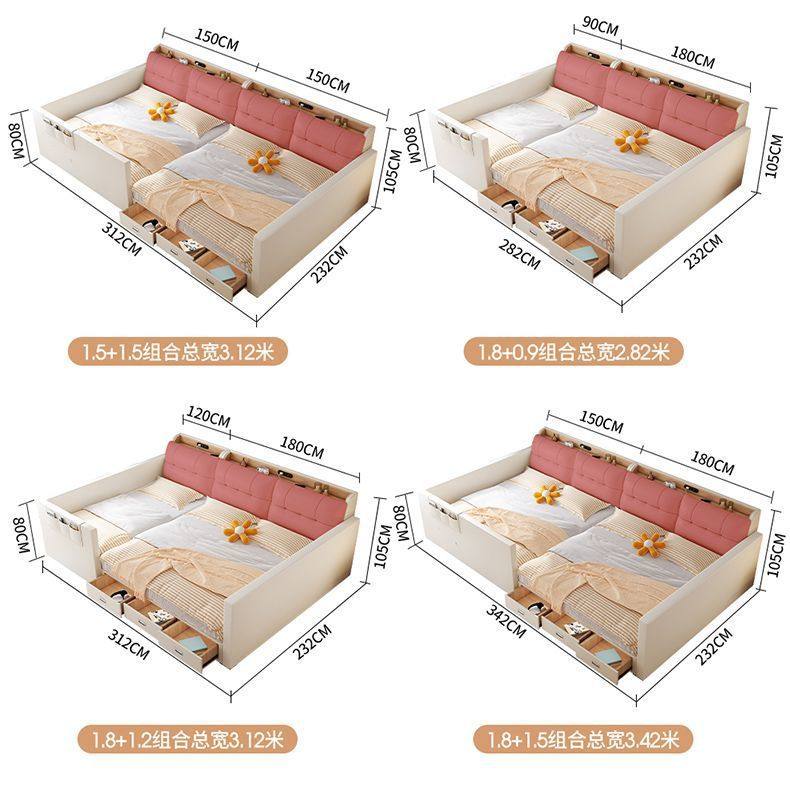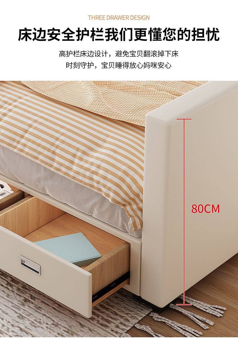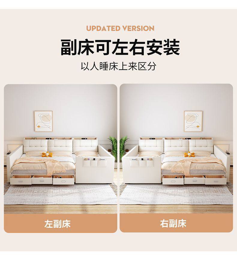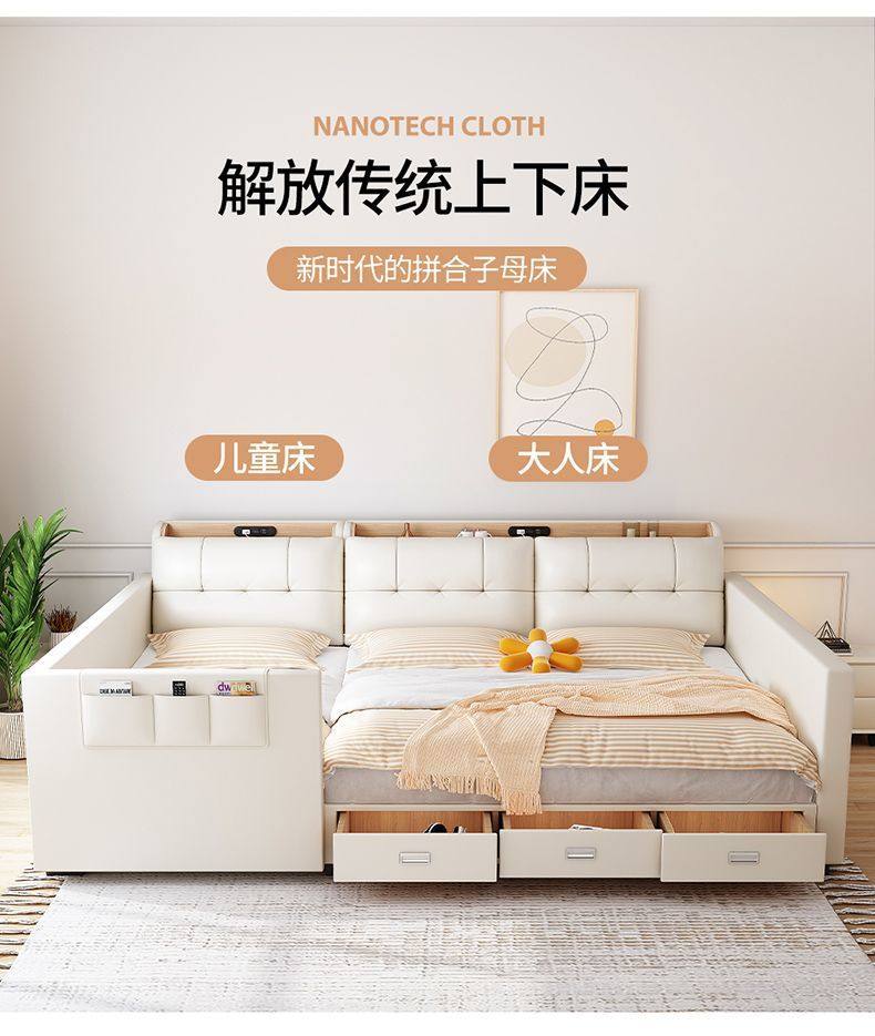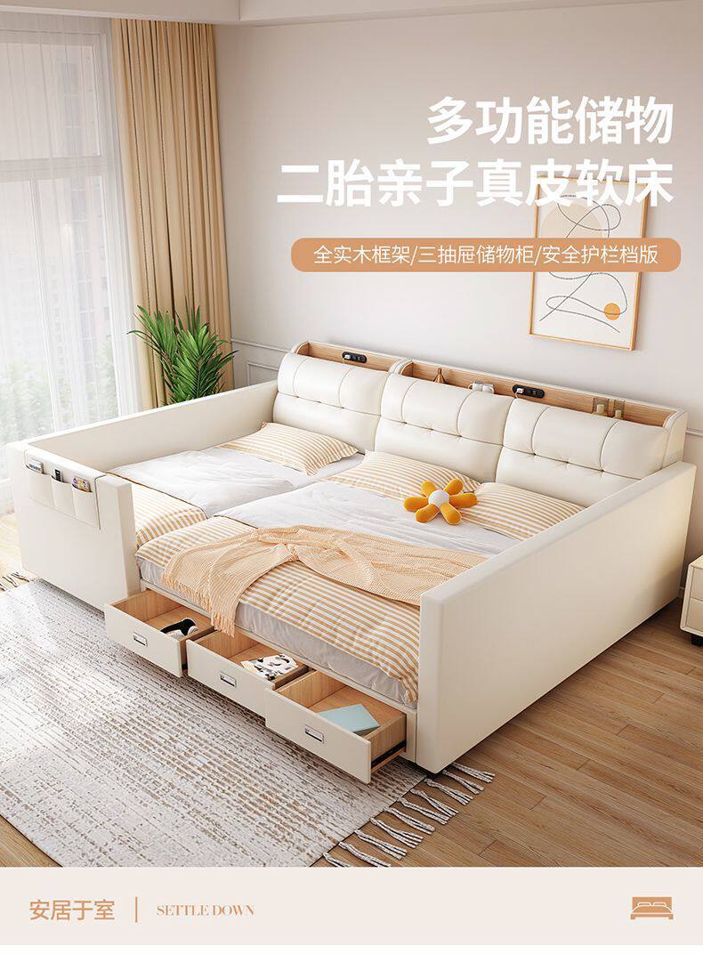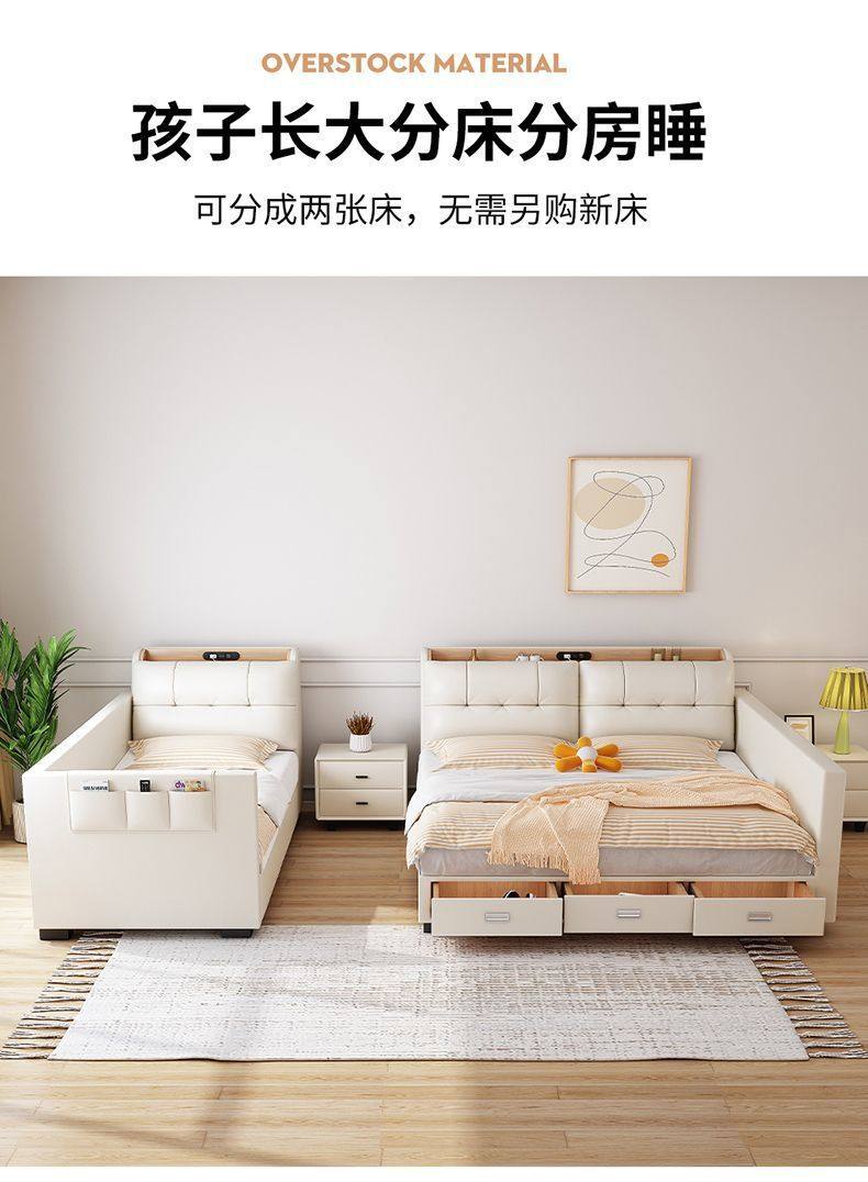 Parent-Child Bed, Second-Child Family, Family of Three or Four, Extra-Large Splicing Bed, Multi-Functional Leather Bed with Drawer, Air Pressure Storage