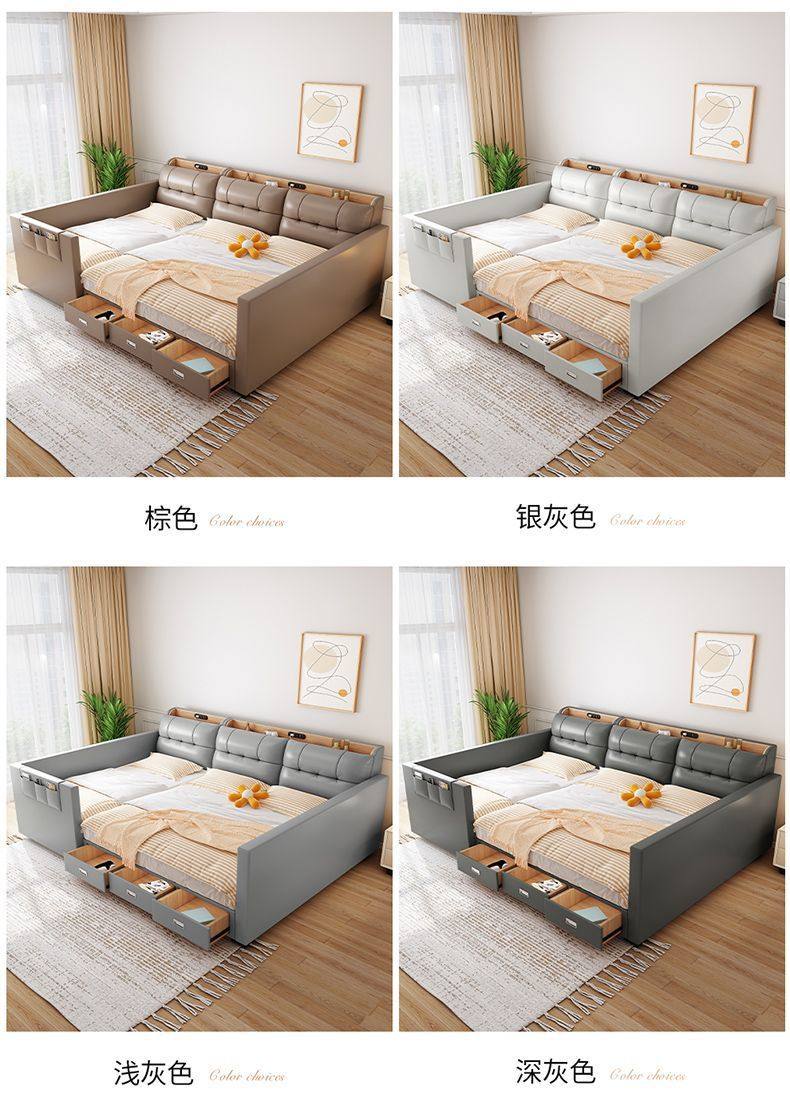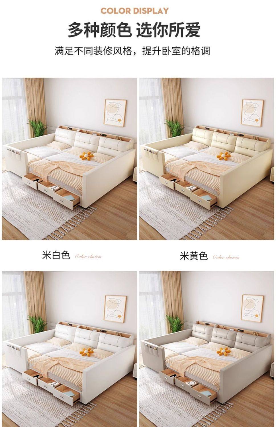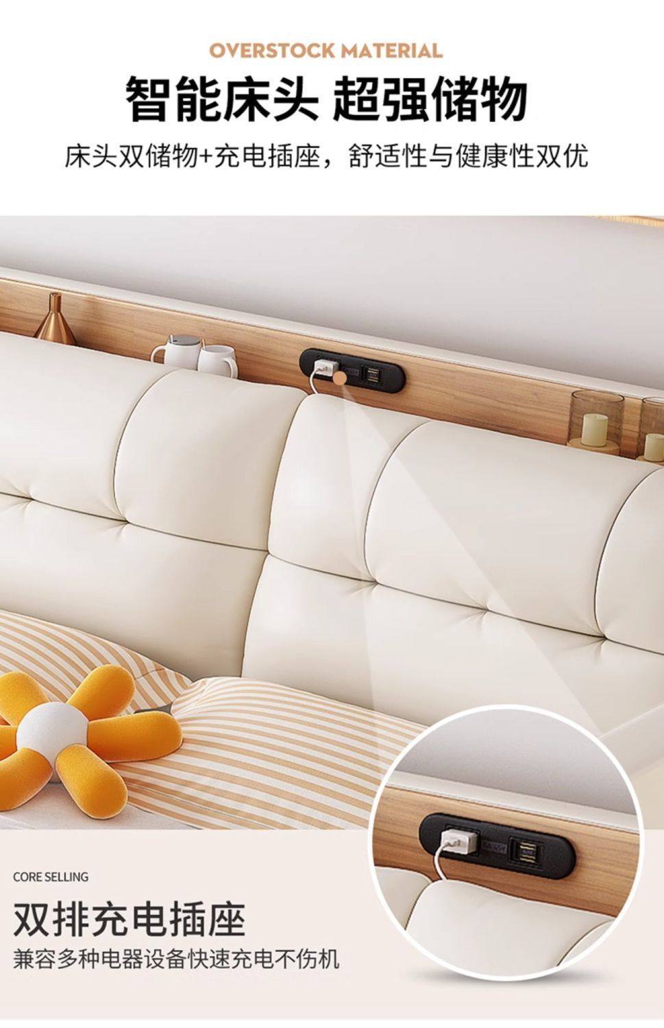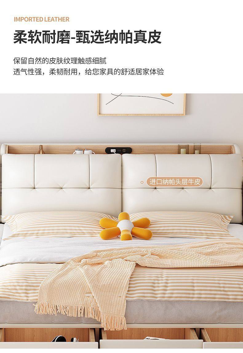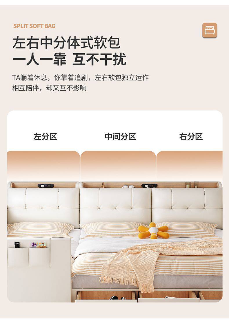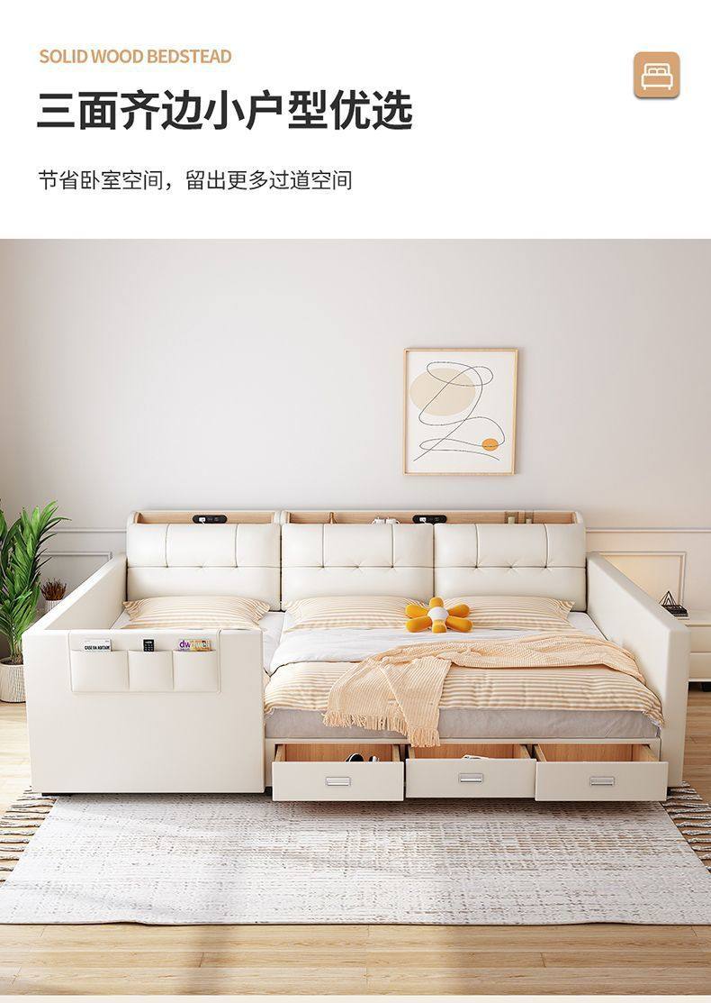 Parent-Child Bed, Second-Child Family, Family of Three or Four, Extra-Large Splicing Bed, Multi-Functional Leather Bed with Drawer, Air Pressure Storage