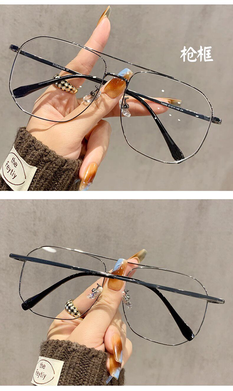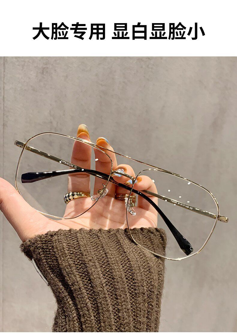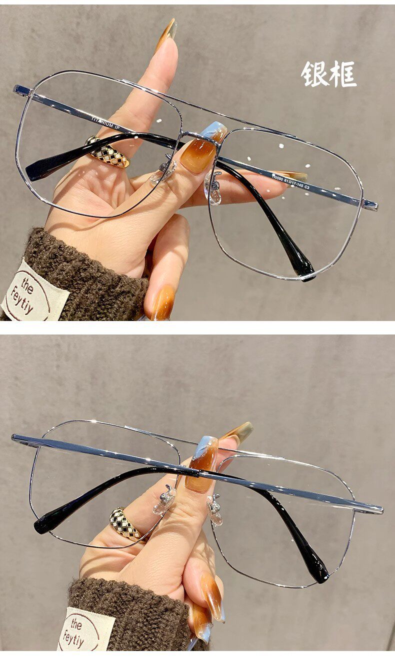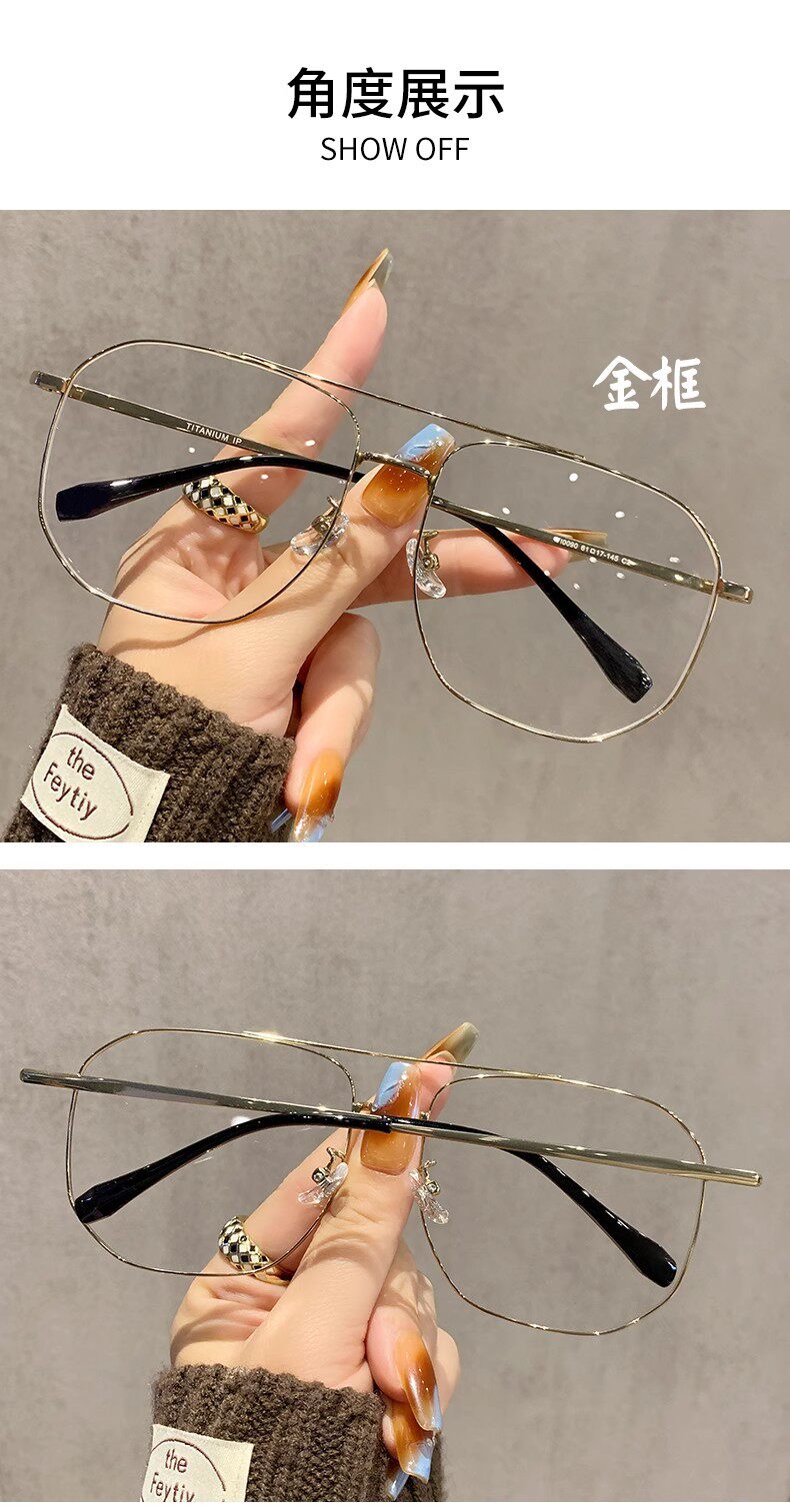 Ultra-Light and High-End Large-Frame Glasses for Men and Women Without Makeup, Double-Beam Polygonal Elegant Eyeglass Frames for Myopia, Adjustable Prescription