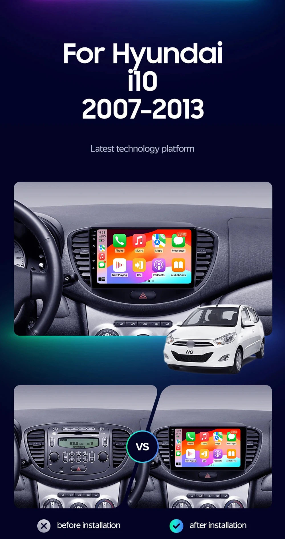 Android 14 Carplay Car Qualcomm Car Radio for Hyundai I10 2007 2008 2009