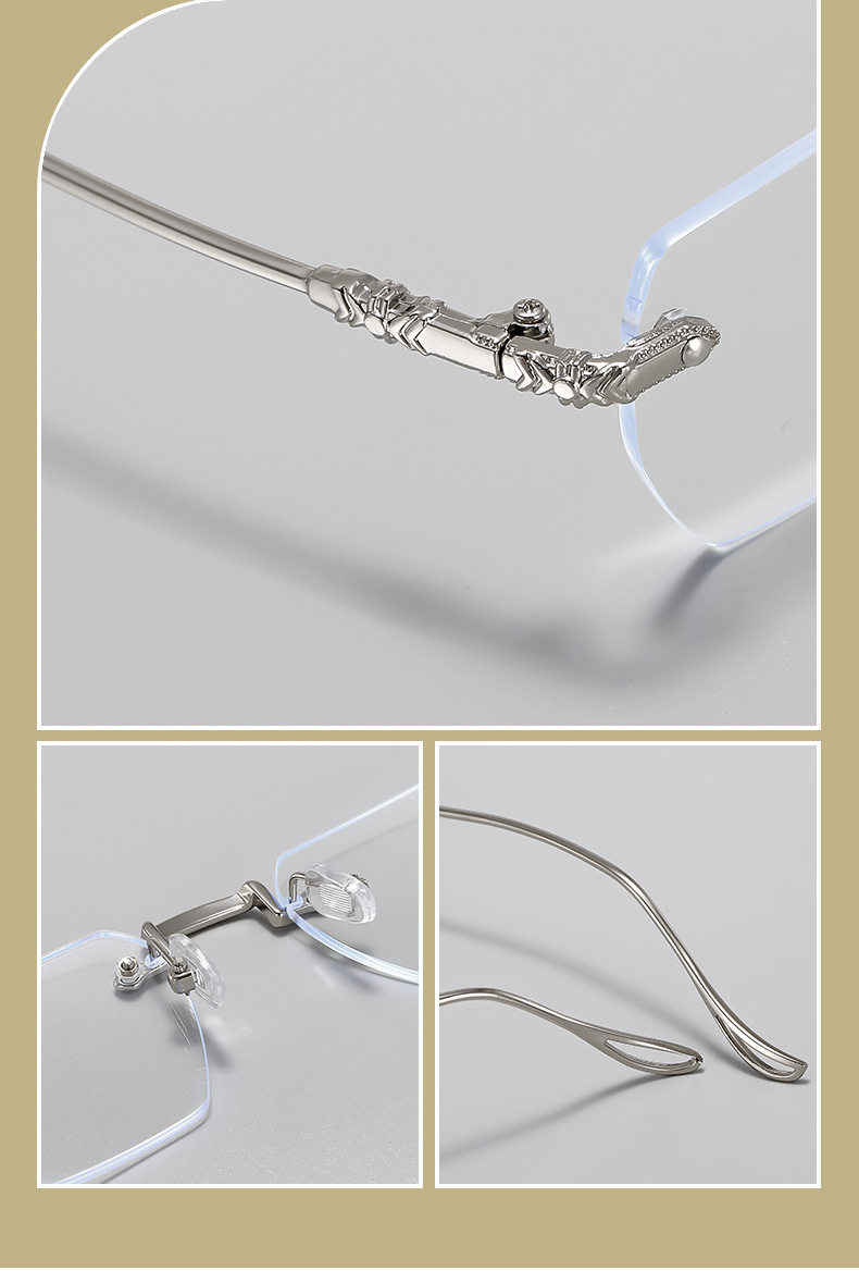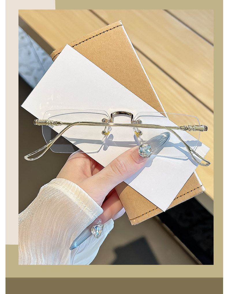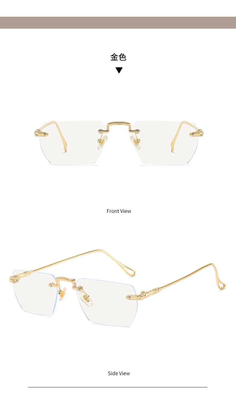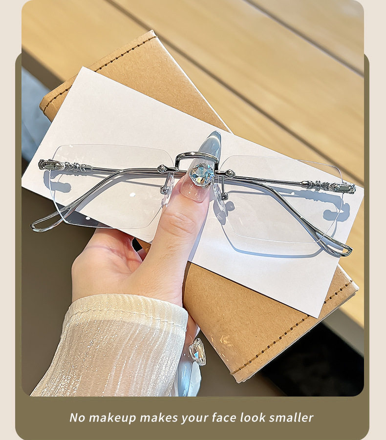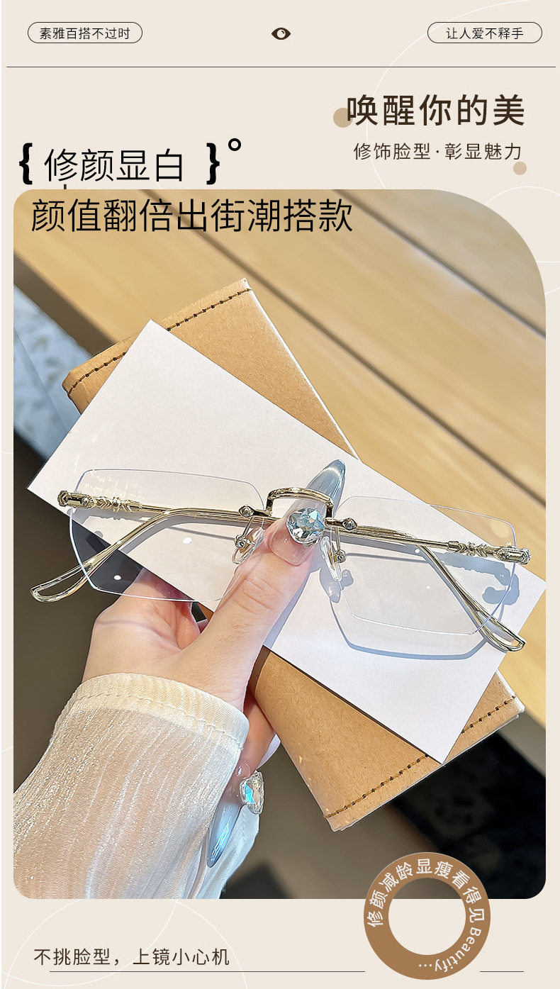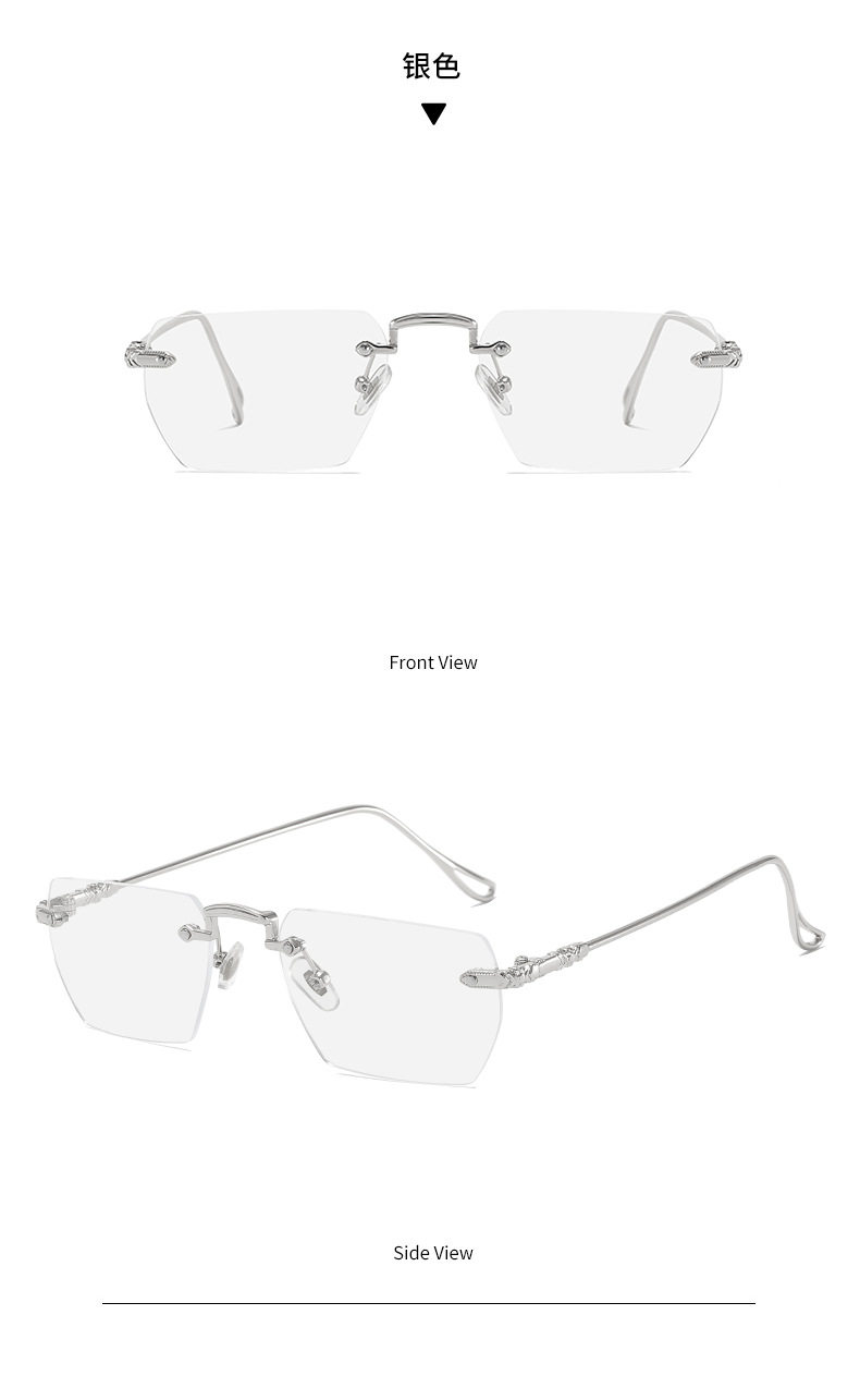 Silver Rimless Square Anti-Blue Light Flat Mirror Sexy Y2K Elegant Glasses Frame Can Be Matched with Myopia Men's and Women's Glasses Frames