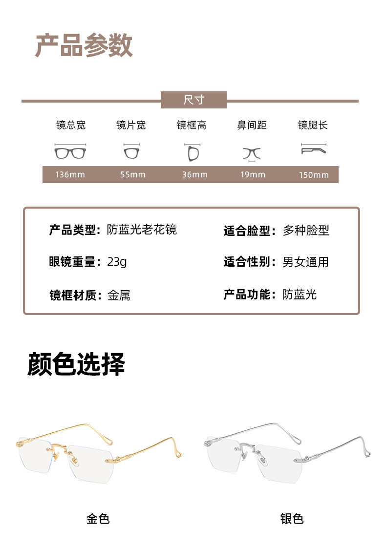 | Frame color | Gold anti-blue light,Silver anti-blue light,Glasses case (glasses not included) |