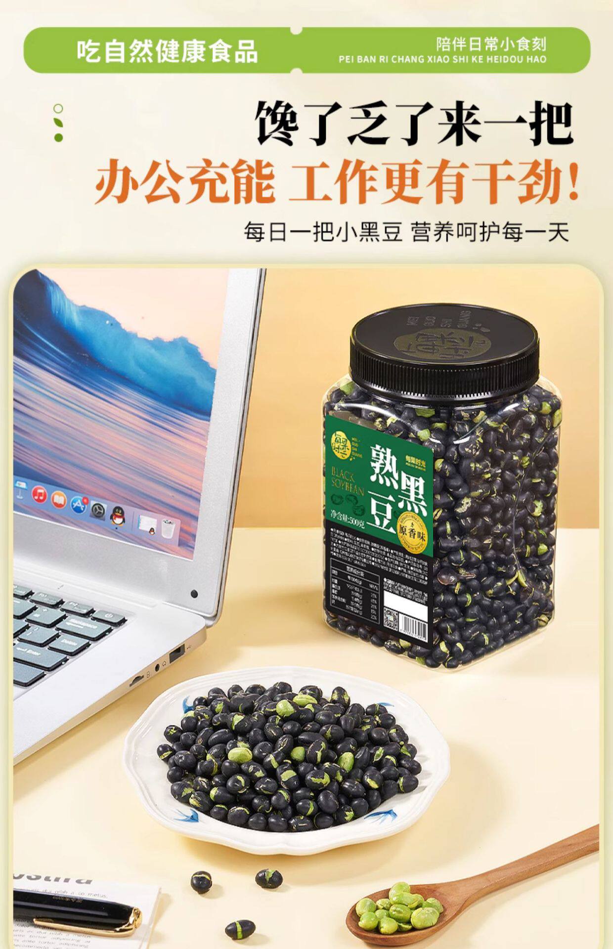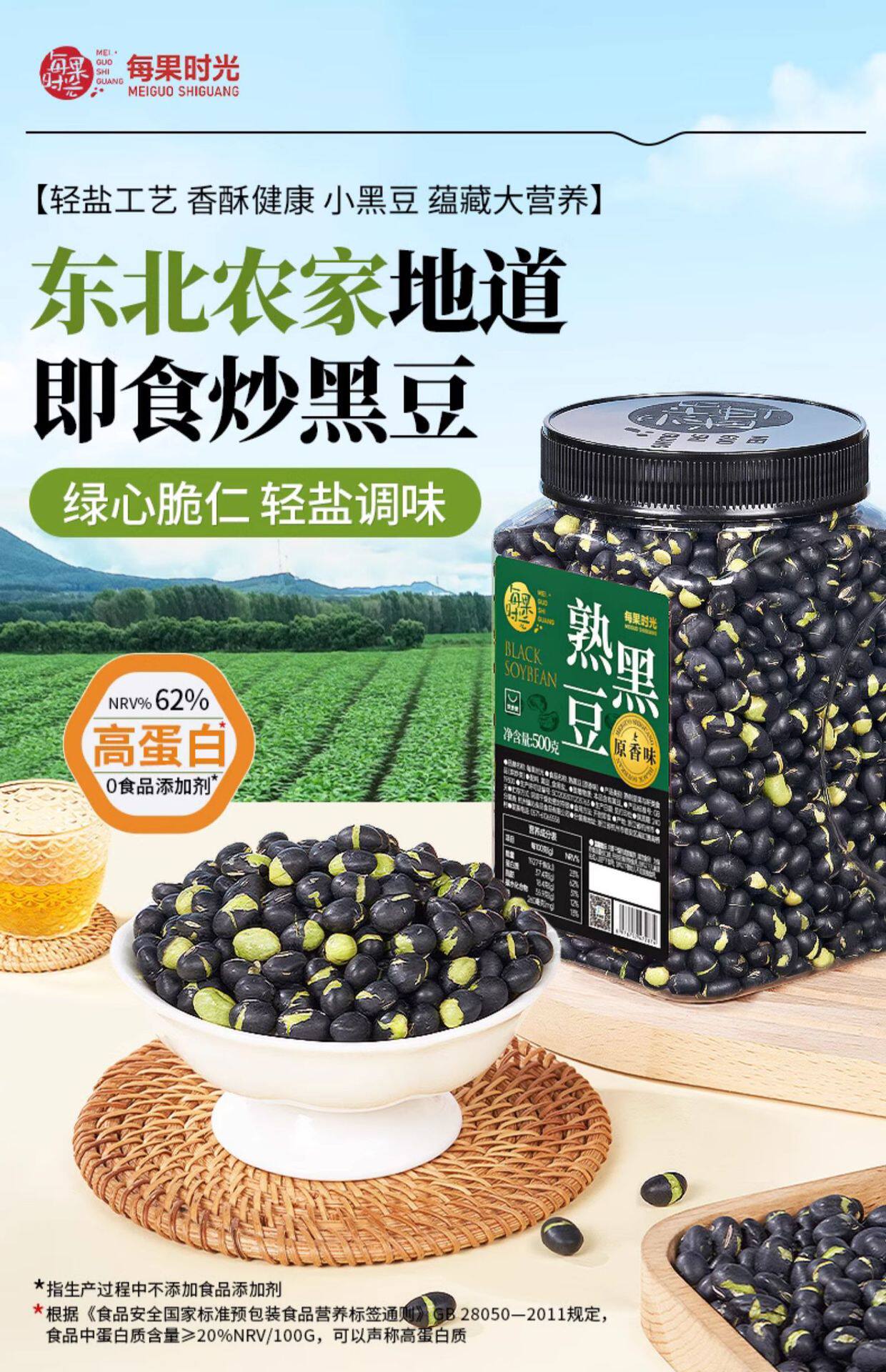 Every Fruit Time Salted Roasted Black Beans 500g Ready-To-Eat Crispy Original Flavor Non-Soy Roasted Seeds and Nuts Snack for Pregnant Women