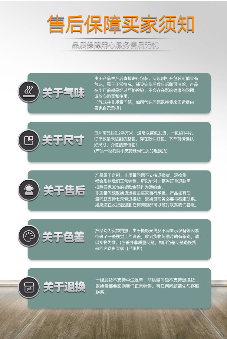| Pattern | Solid color,Puzzle,No pattern,Geometric pattern,Wood grain,Patchwork,Stone pattern,Marble pattern,Imitation stone pattern,Imitation brick pattern,Three-dimensional relief pattern |