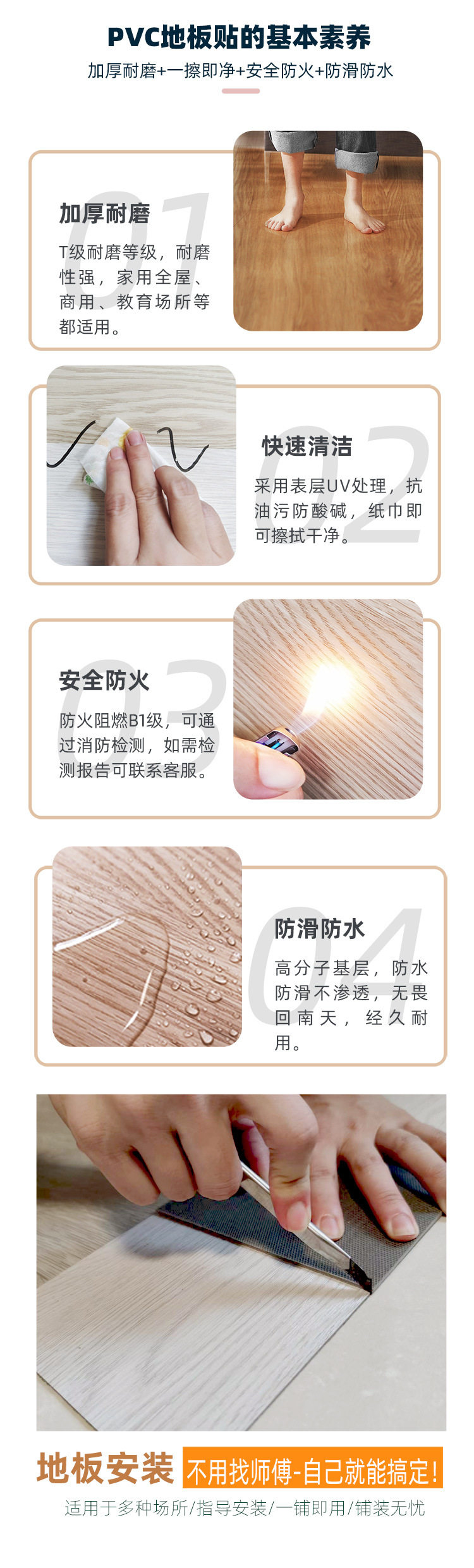 Pvc Floor Stickers Self-Adhesive Factory Wholesale Lvt Thickeneded Wear-Resistant Waterproof Vinyl Floor Leather Export Trade