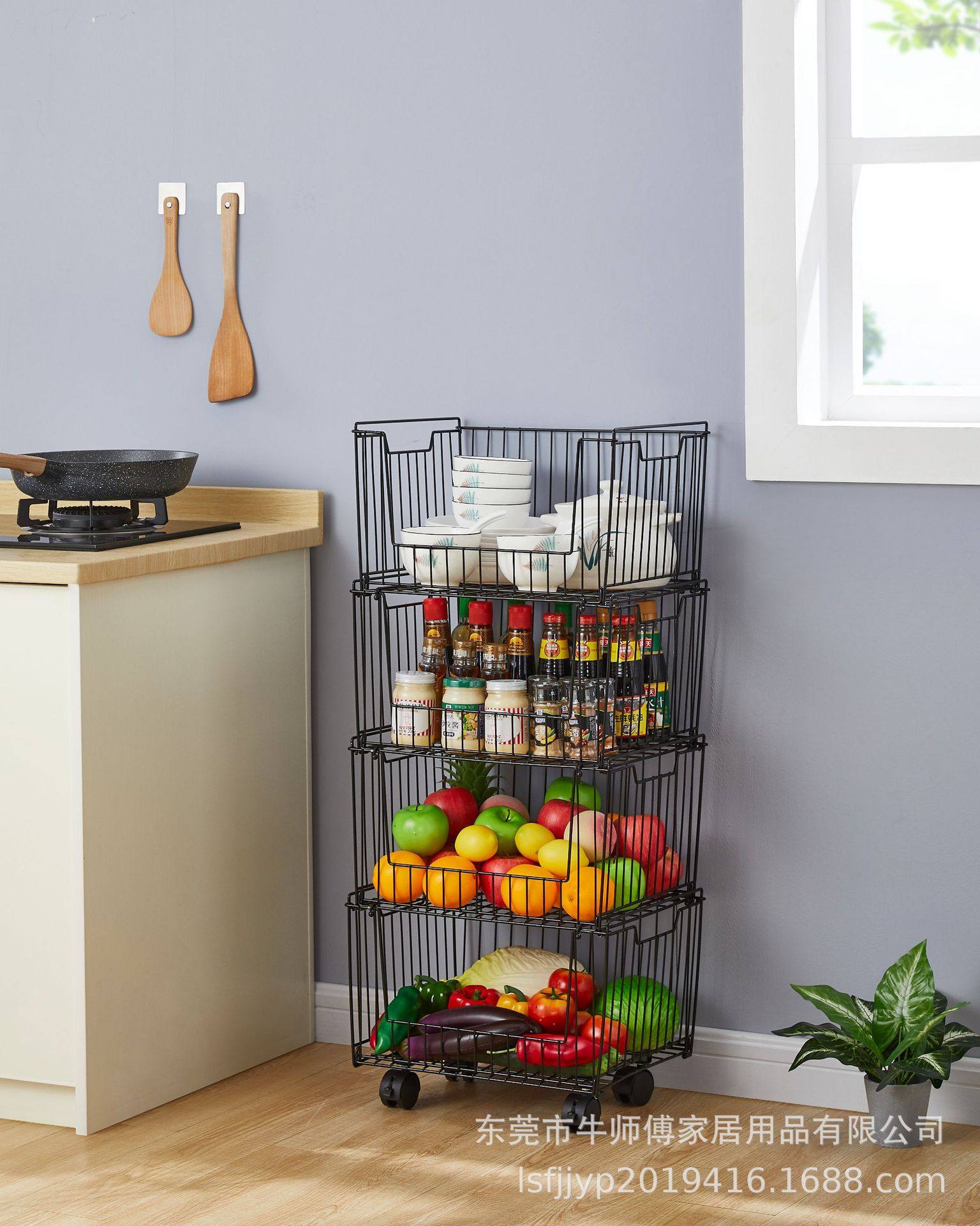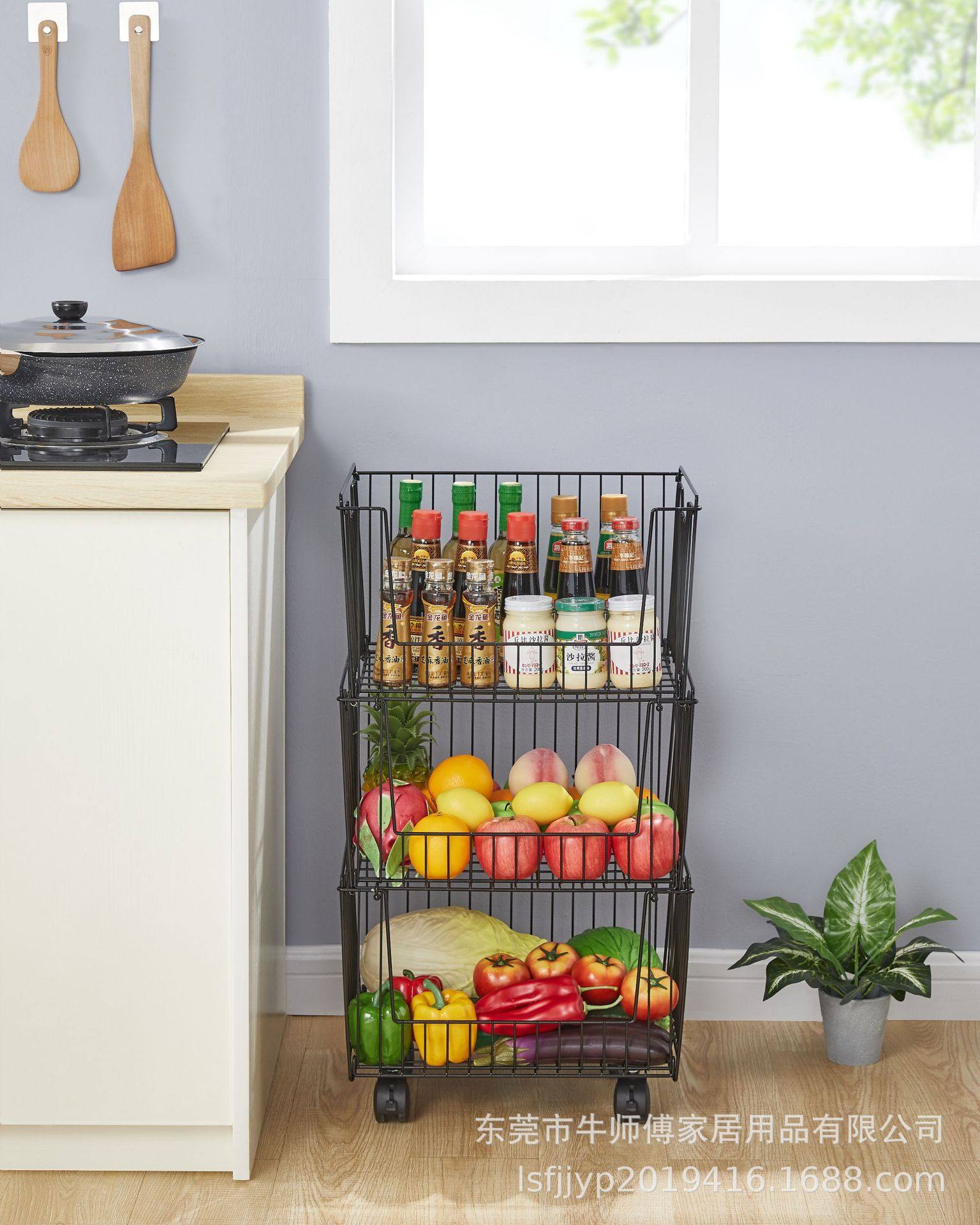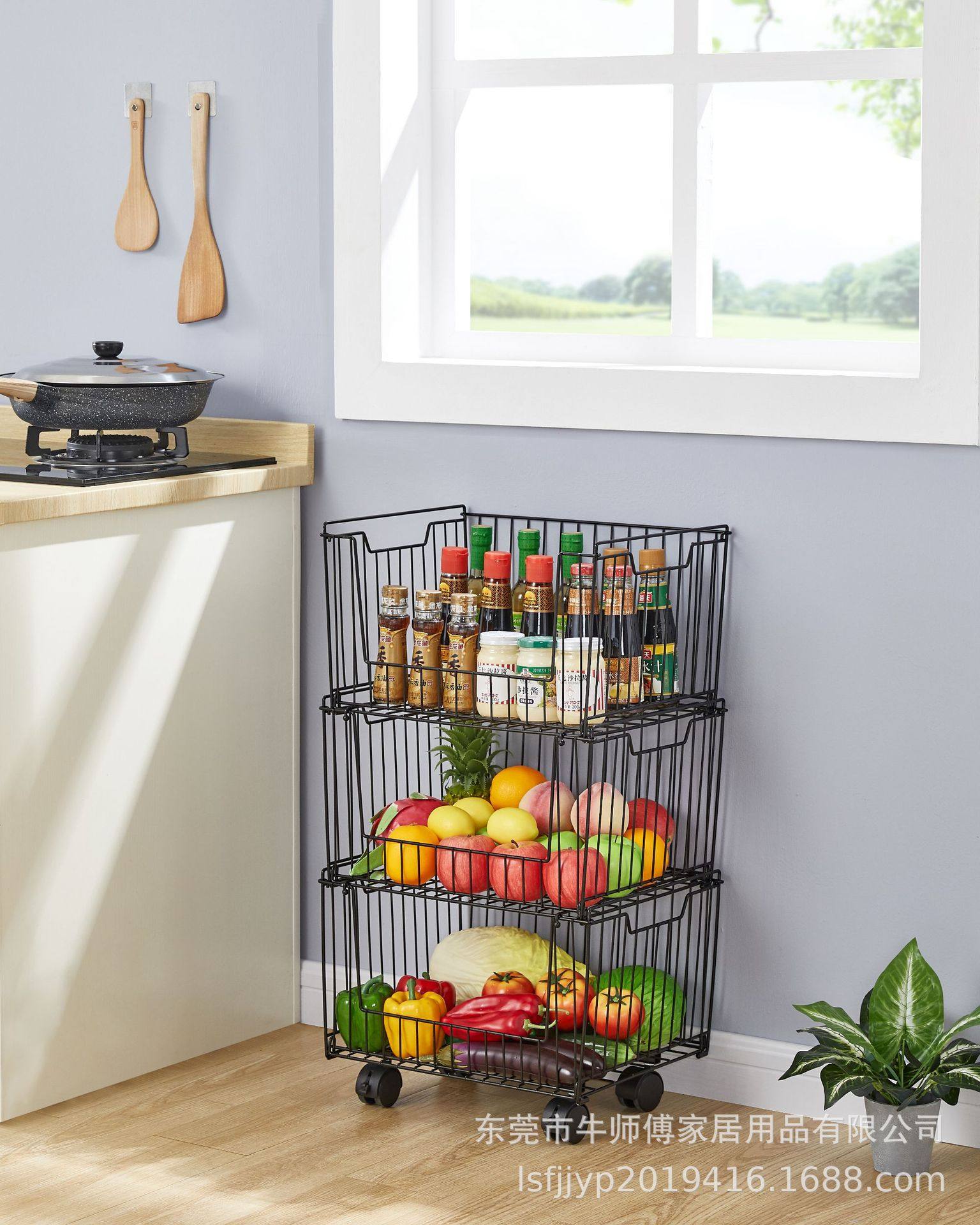 Multifunctional Kitchen Fruit and Vegetable Storage Rack Bedroom Snack Storage Basket Dormitory Storage Rack Iron Storage Basket Universal Wheel