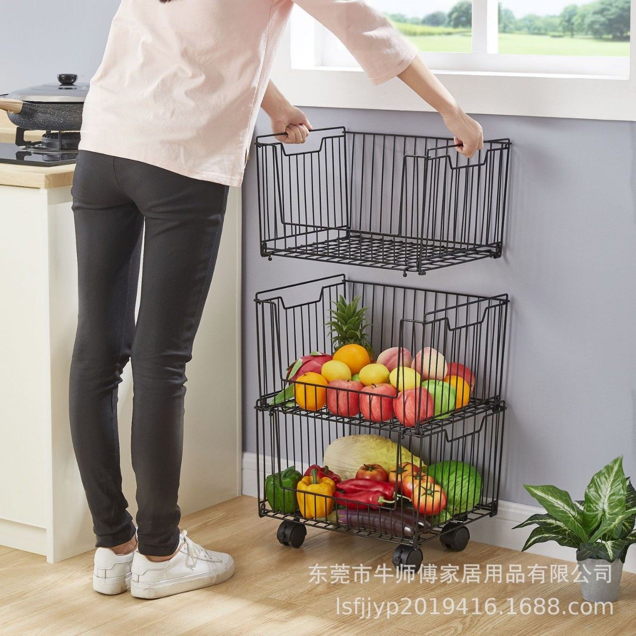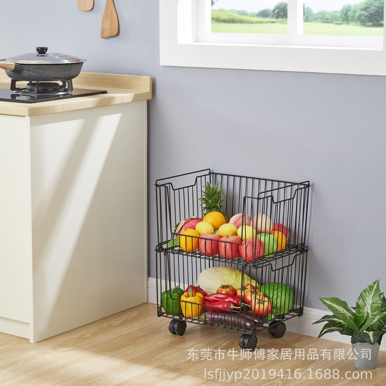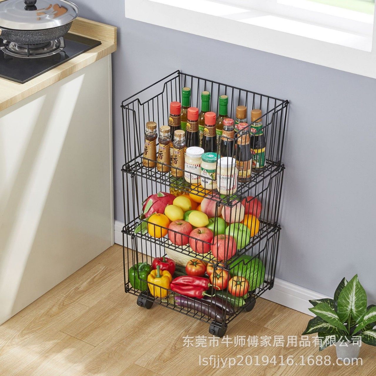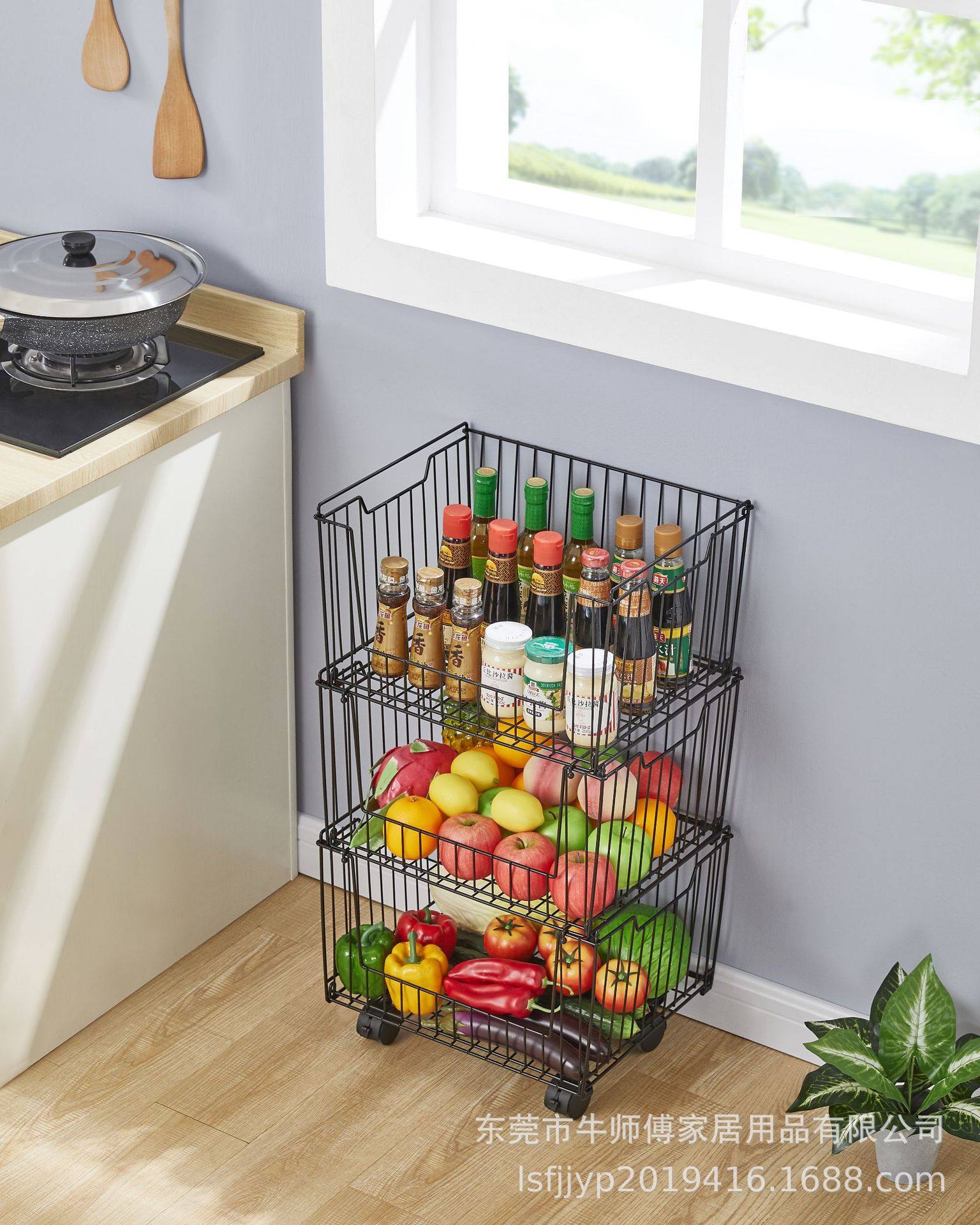 Multifunctional Kitchen Fruit and Vegetable Storage Rack Bedroom Snack Storage Basket Dormitory Storage Rack Iron Storage Basket Universal Wheel