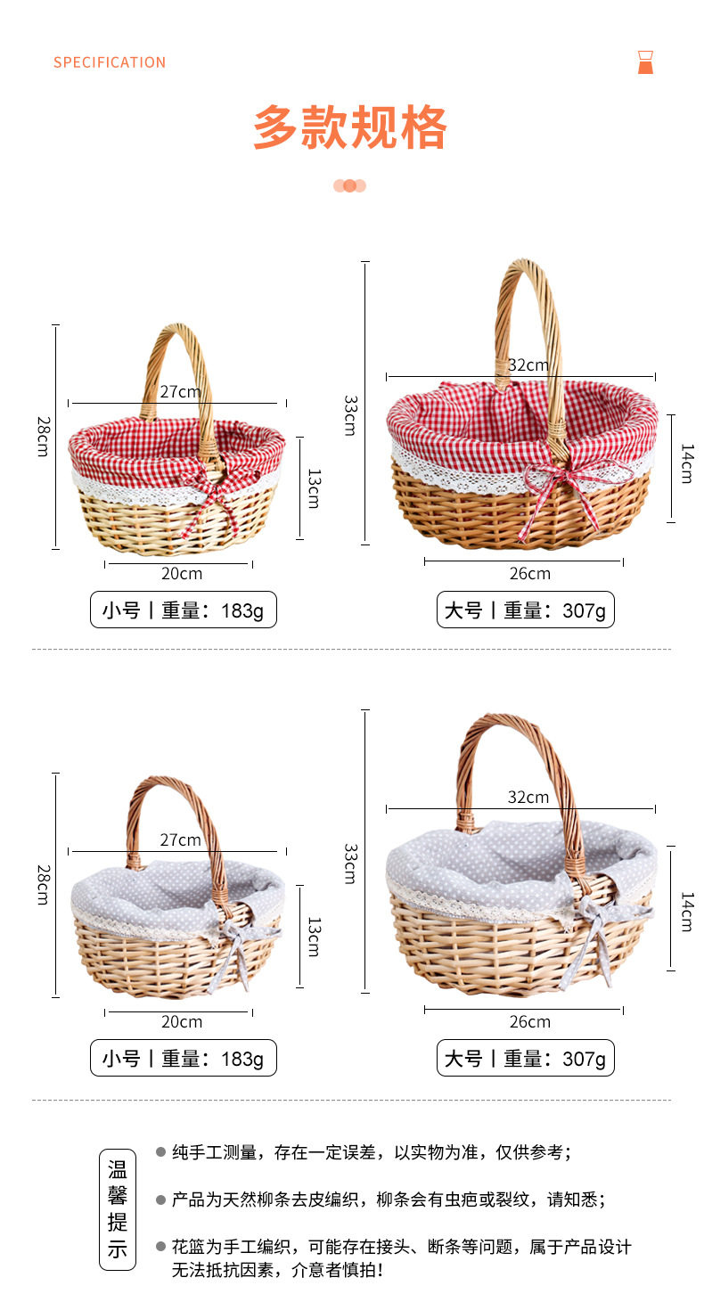 | Color | Gray dotted cloth lined wicker basket-large size,Gray dotted fabric lined wicker basket-small size,Red plaid lined wicker basket-large size,Red plaid lined wicker basket-small size |