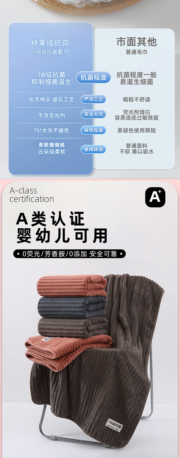 Antibacterial Towel, Class A, Pure Cotton, Household Face and Bath Towel, Adult Individually Packaged Travel Corduroy Towel, Souvenir Gift