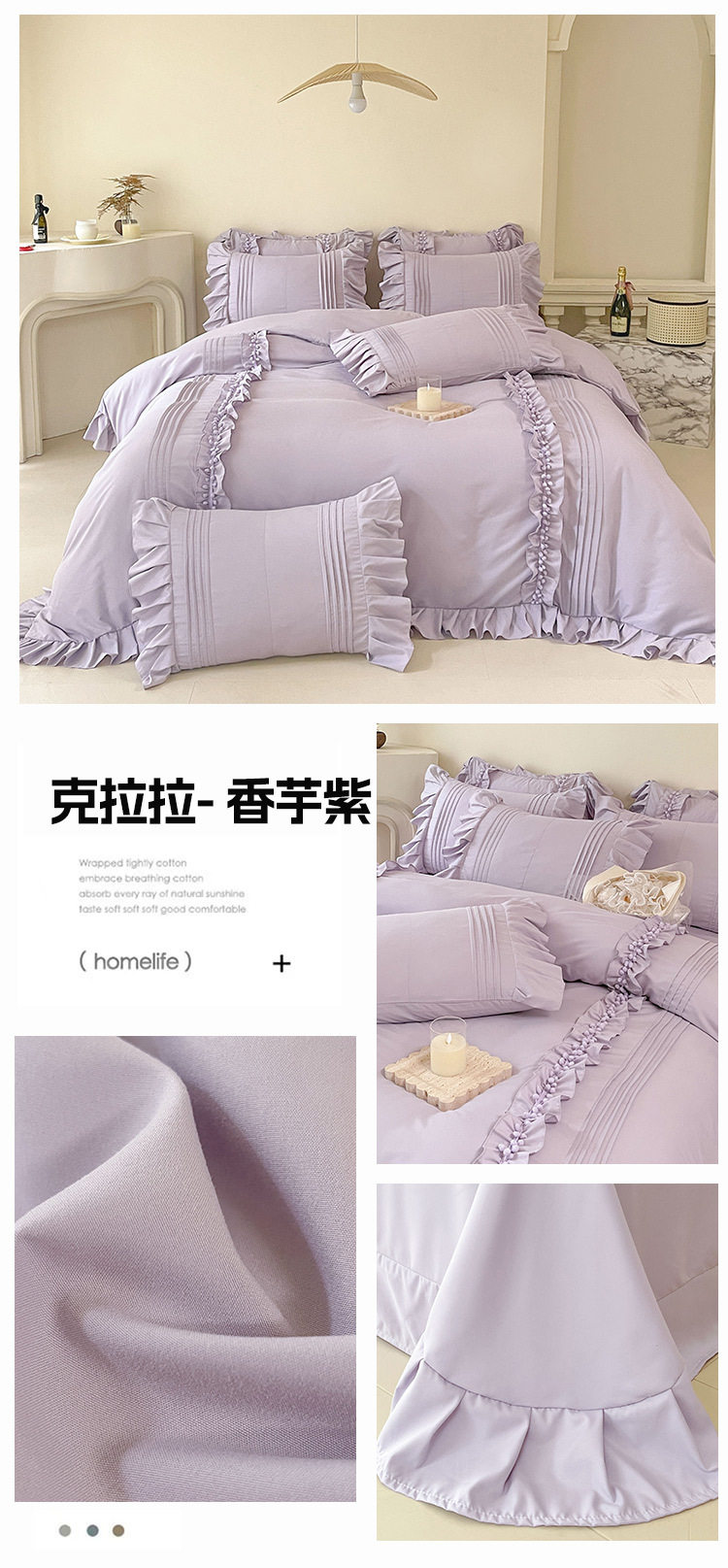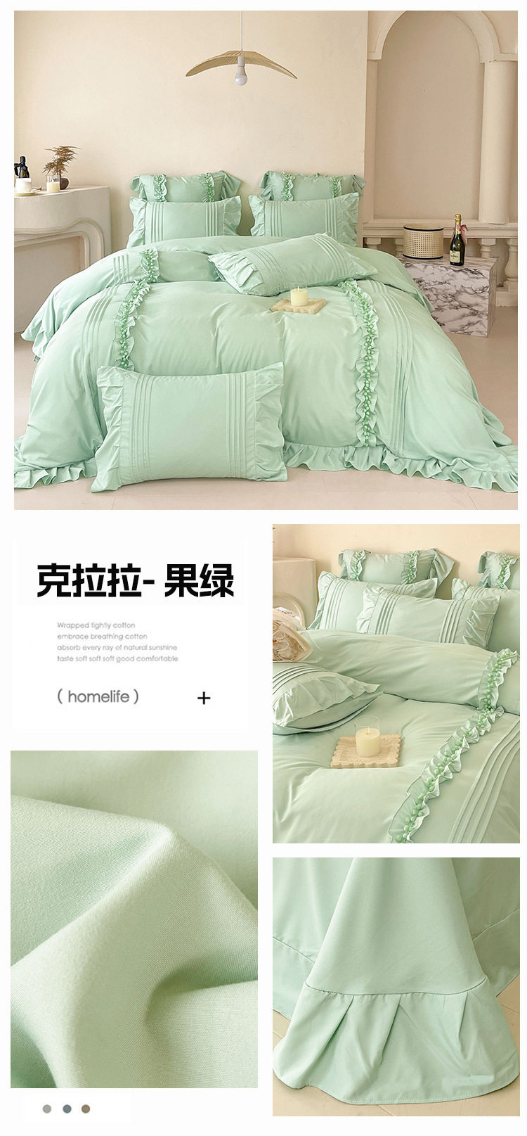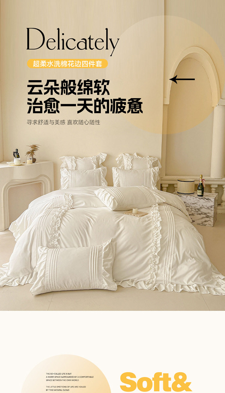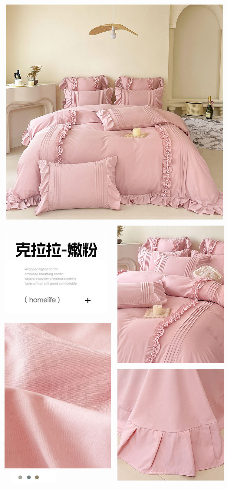 Wholesale Ins Korean Skin-Friendly Soft Pure Color Washed Cotton Four-Piece Princess Style Lotus Leaf Lace 4-Piece Set