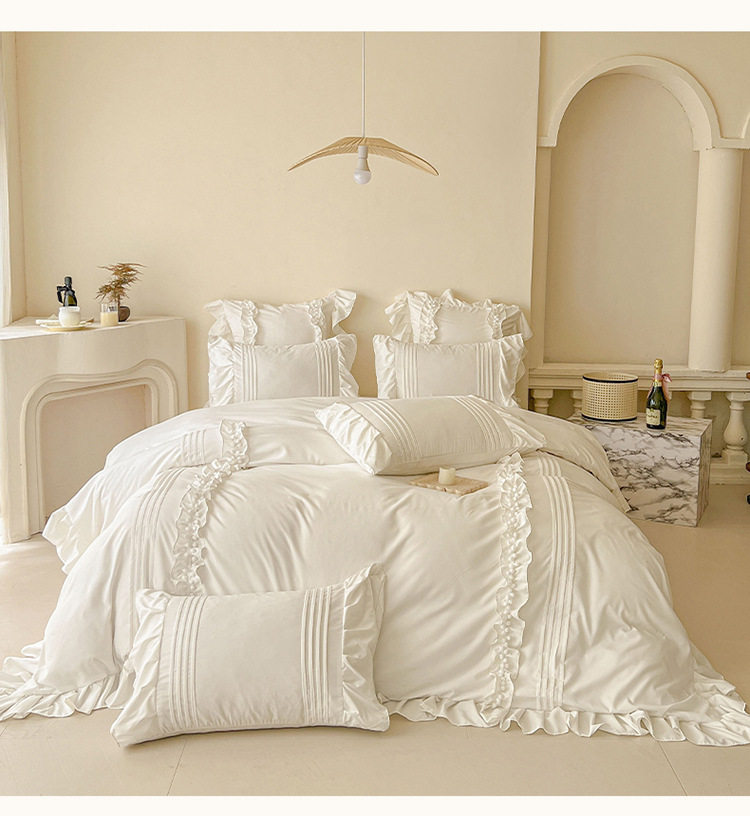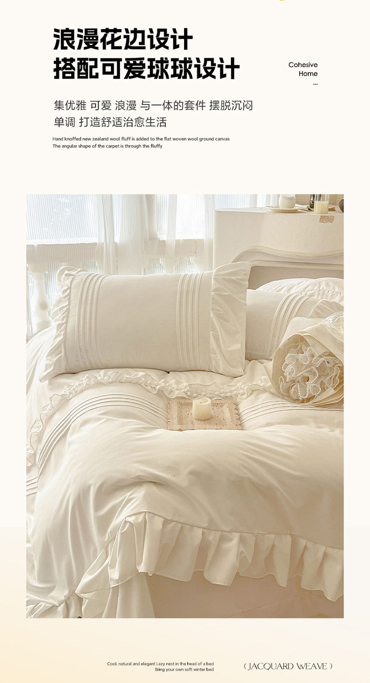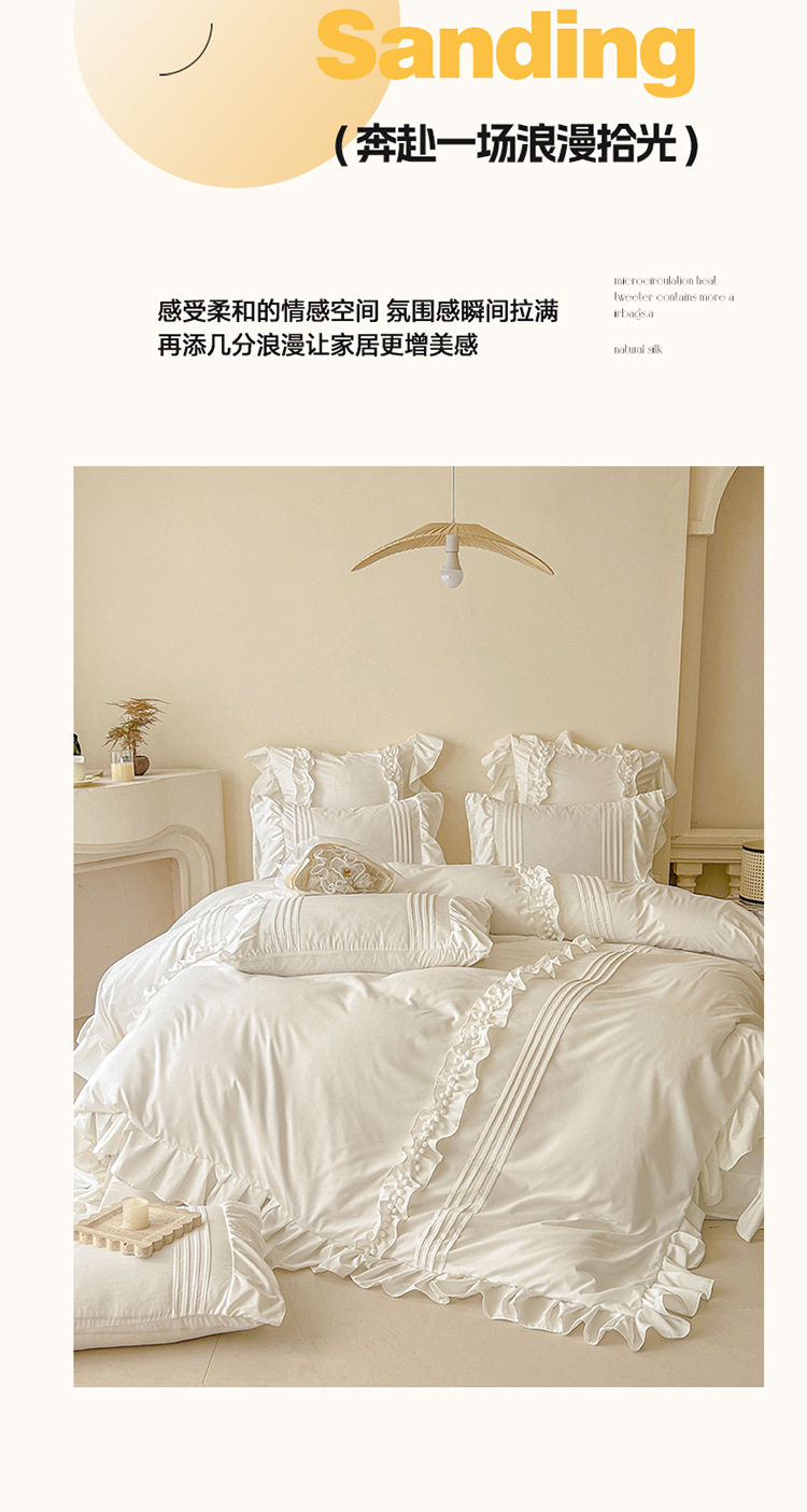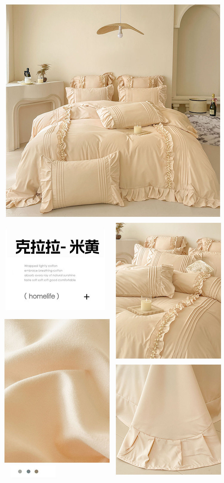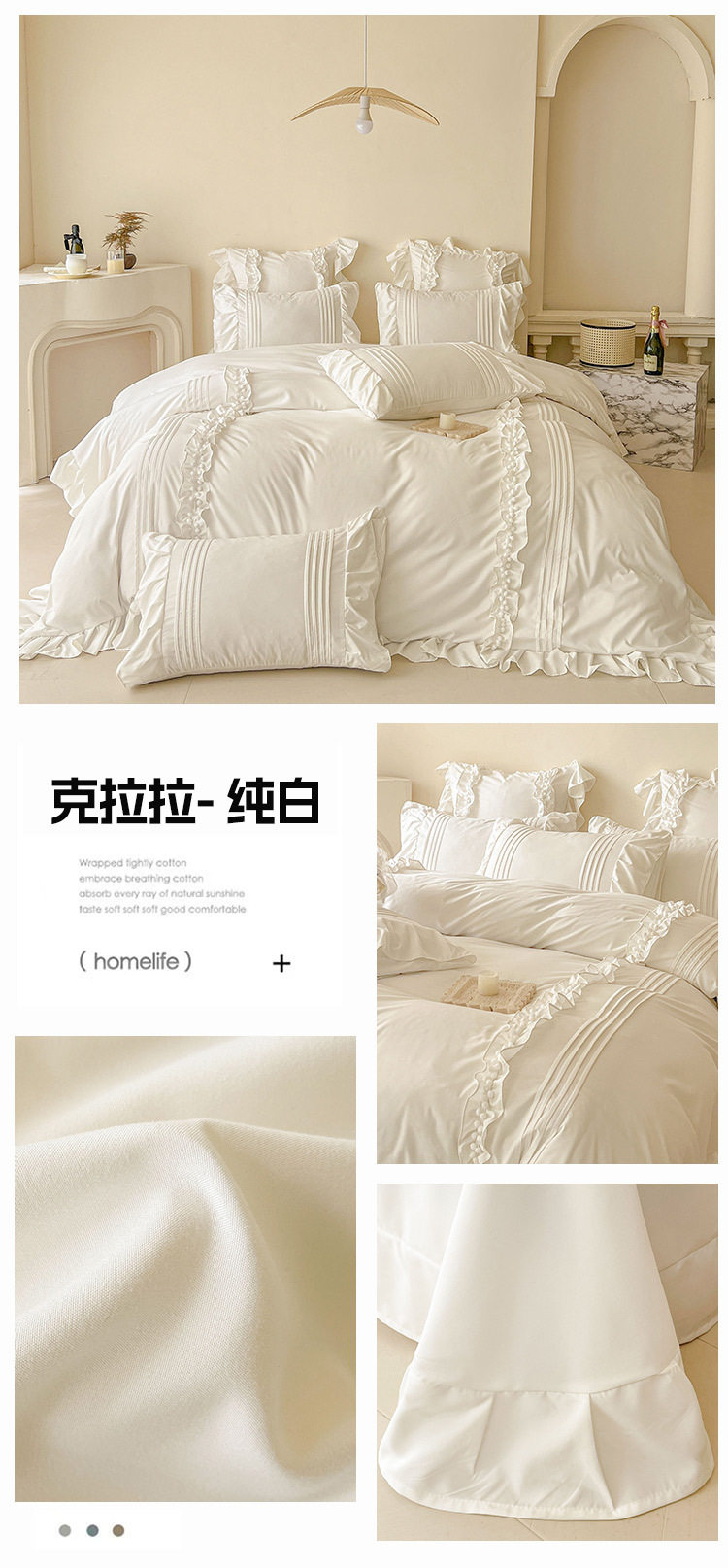 Wholesale Ins Korean Skin-Friendly Soft Pure Color Washed Cotton Four-Piece Princess Style Lotus Leaf Lace 4-Piece Set