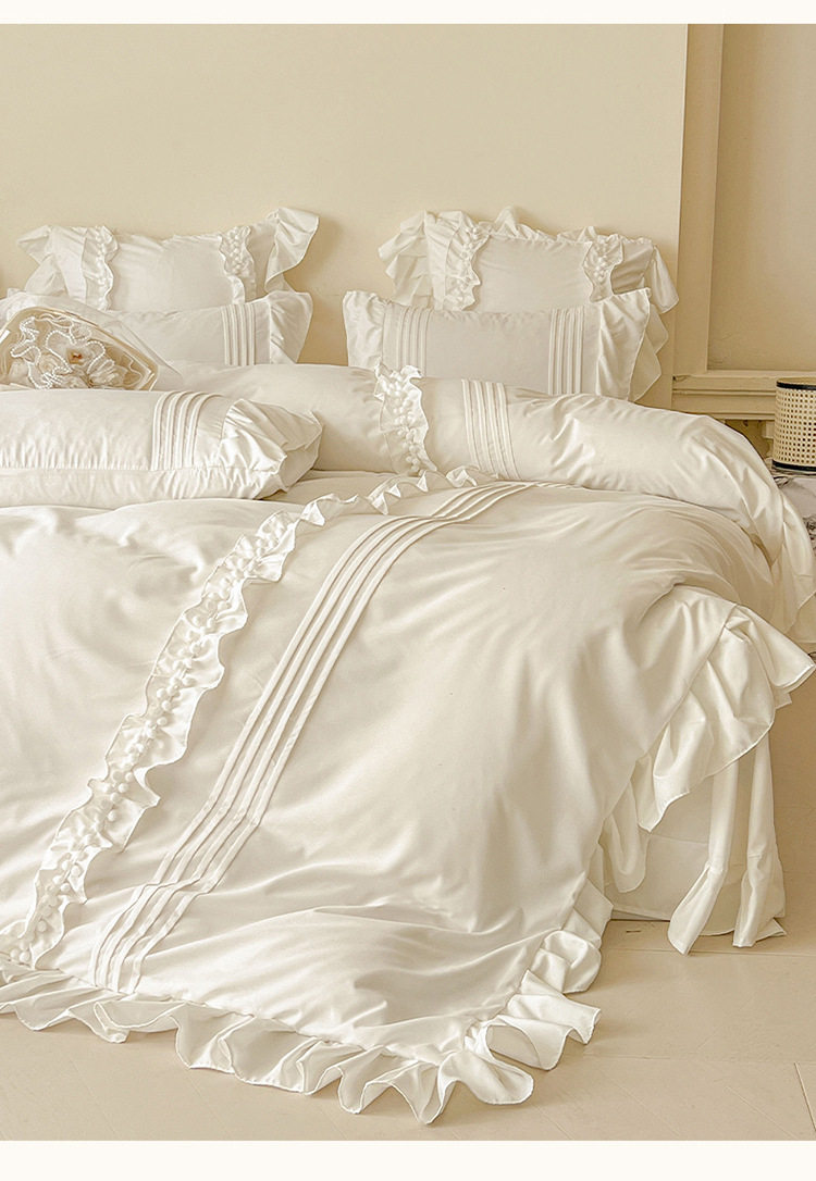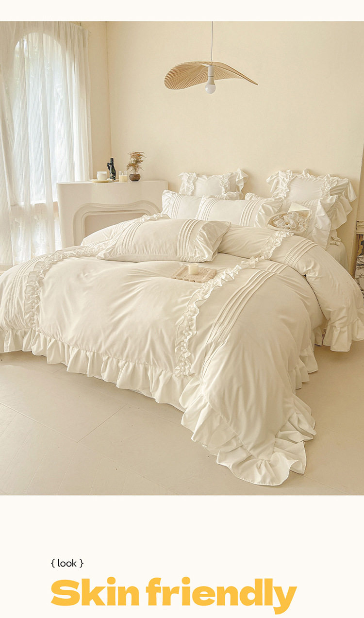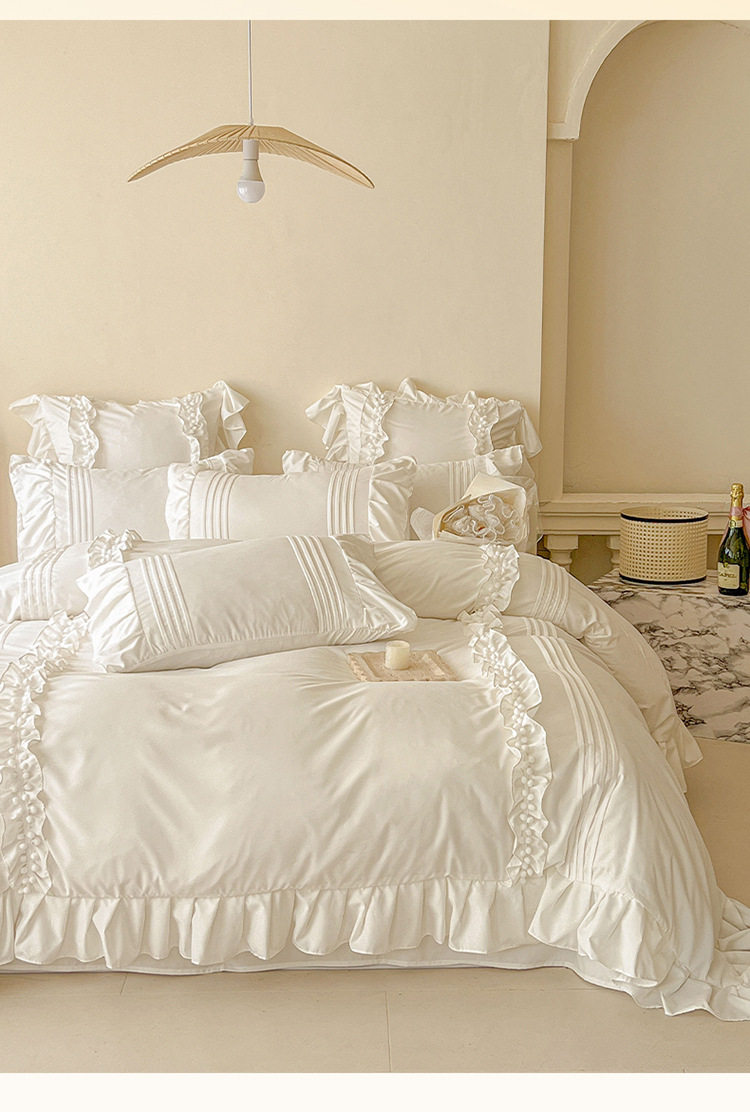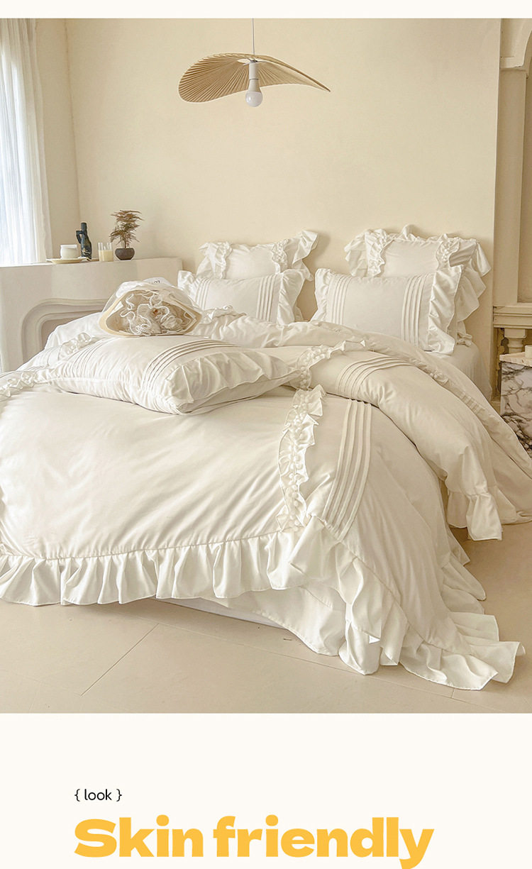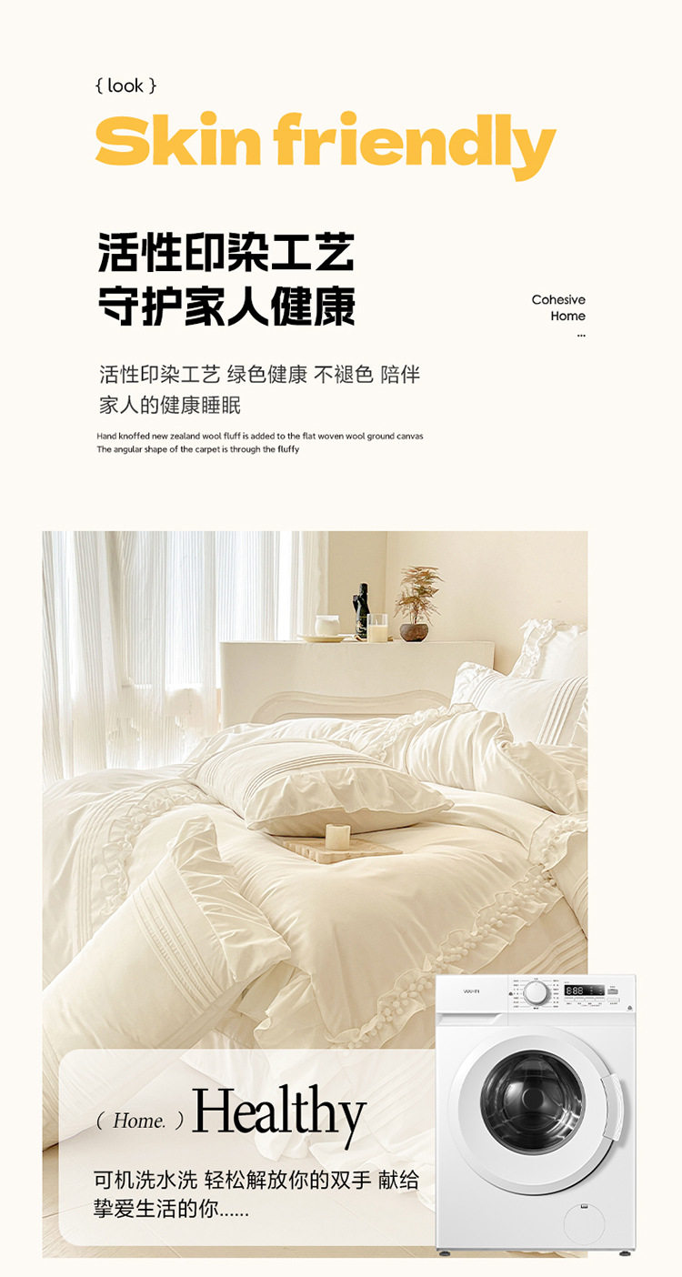 Wholesale Ins Korean Skin-Friendly Soft Pure Color Washed Cotton Four-Piece Princess Style Lotus Leaf Lace 4-Piece Set