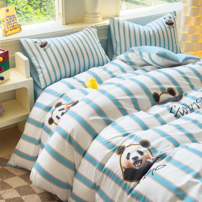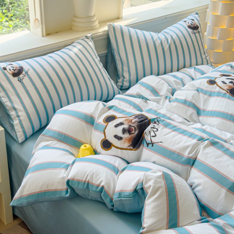 Custom Panda Four-Piece Bedding Set for Fans Group Purchase, Pure Cotton Fubao Three-Piece Duvet Cover, Directly Shipped from Factory with Free Shipping